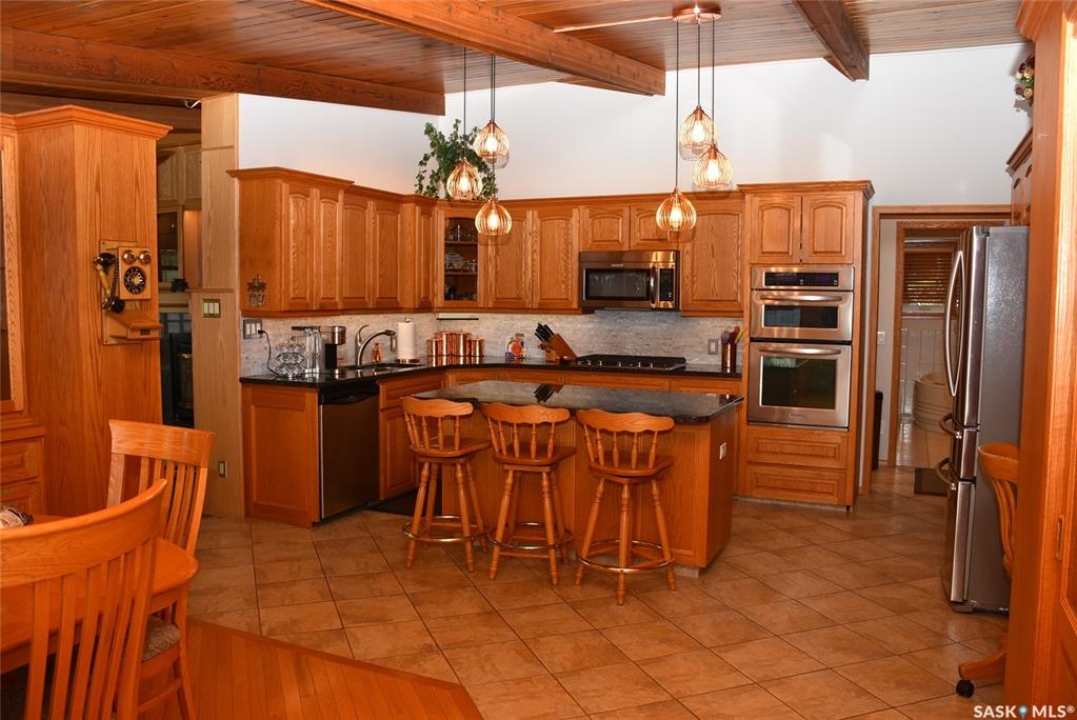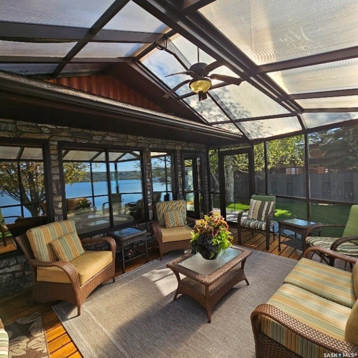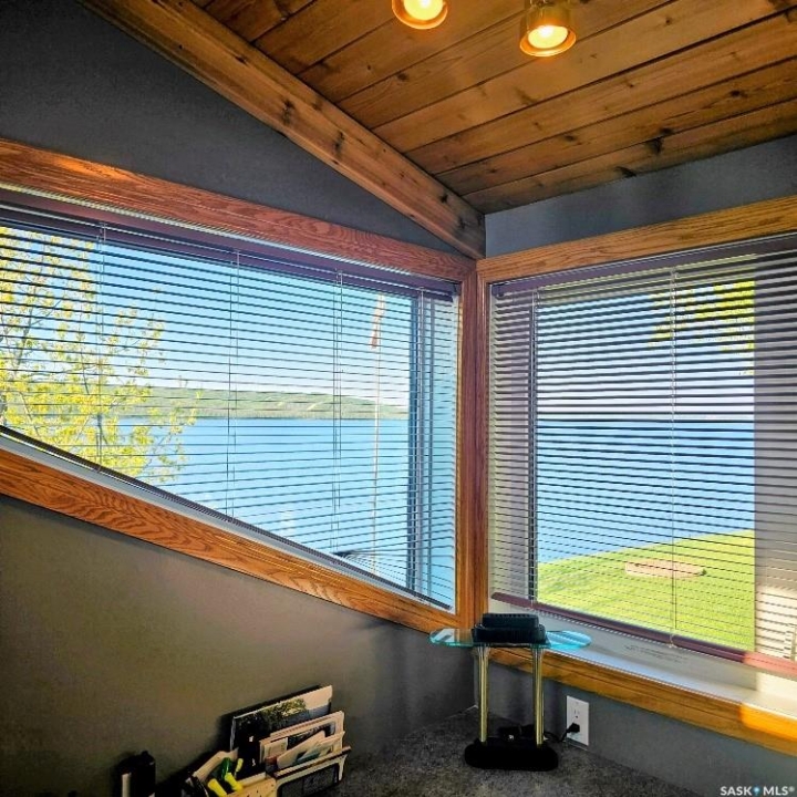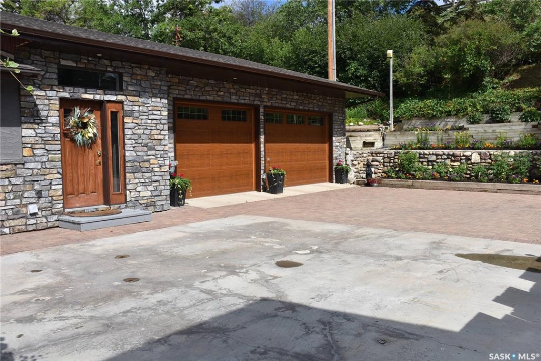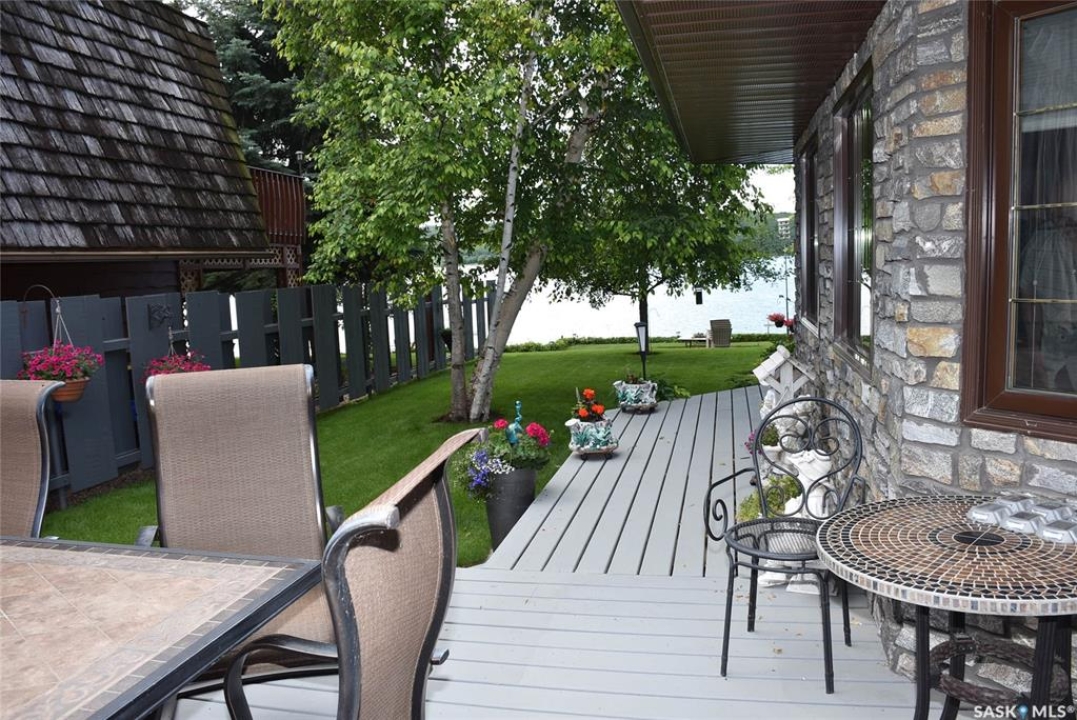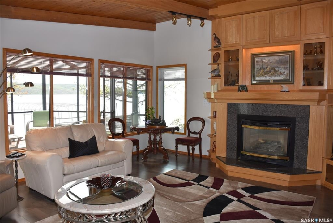 This outstanding lakefront property is located on the East end of Pasqua Lake and has been offered for sale. The property has a level private drive which leads to this stunning lake shore home. When you approach the house, you will notice the real stone and stucco siding and the large parking area. Once inside the kitchen and dining room offers an open concept with vaulted ceiling, beautiful, appointed kitchen with ample storage space. The Dining room is spacious and bright with access to the private deck. The Living room is relaxing with a gas fireplace, vaulted ceiling, hardwood flooring and access to the beautiful screened in sunroom with panoramic views of the lake and is a fantastic spot for your morning coffee or just relaxing with friends. There are four bedrooms on the main with the primary having a large walk-in closet and 3-piece ensuite. The laundry room is conveniently located on the main floor with an amazing amount all new cabinets. The large second floor office has views of the lake and ample space for a workout area or murphy bed for large groups, and the bonus room has a 3-person sauna. The attached heated, 28 x 32 garage is completely finished with PVC interior panels for a clean look, polyaspartic flooring, 10-foot ceiling, 8x10 and 8x12 garage doors, slatwall panels and storage and metal garage storage cabinets. There is a new 18-kilowatt Generac generator ,chemical free iron filter. This property is complete with pier, track, boat dolly, winch with remote, and canopy for the boat dolly. The grounds are immaculate and offer 70 feet of level shoreline with underground sprinklers, flower beds, large lake front grassed area for the kids to play and a beautiful firepit next to the shoreline. There is parking space for 6 vehicles. This is one of the closest properties to the city and is only 1 km to the new convenience store and gas bar. This is one of the premium properties in the valley and must be viewed to appreciate all the upscale amenities.