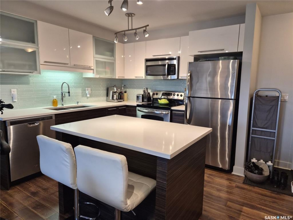 Prime Stonebridge Location with Premium Amenities! Welcome to this stylish 2 bedroom, 1 bathroom condo offering modern comfort and convenience. This bright and well designed unit features and open concept layout with a contemporary kitchen where you will enjoy ample,sleek cabinetry with soft close doors and a sit up island-perfect for casual dining or entertaining. Enjoy the ease of in-suite laundry and a south facing,private balcony- ideal for morning coffee or a spot to unwind on a summer evening. This unit also includes two parking spots along with elevator access that lends to hassle-free living! Residents have access to the exceptional clubhouse that boasts:billiards room/recreation room,exercise room and a year round indoor pool! Located close to transit,shopping and everyday essentials-this condo is perfect for professionals,students,retirees or anyone seeking the ease of low maintenance and affordable living in a vibrant community! This building does allow pets with restrictions!