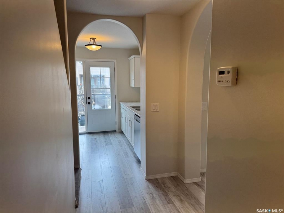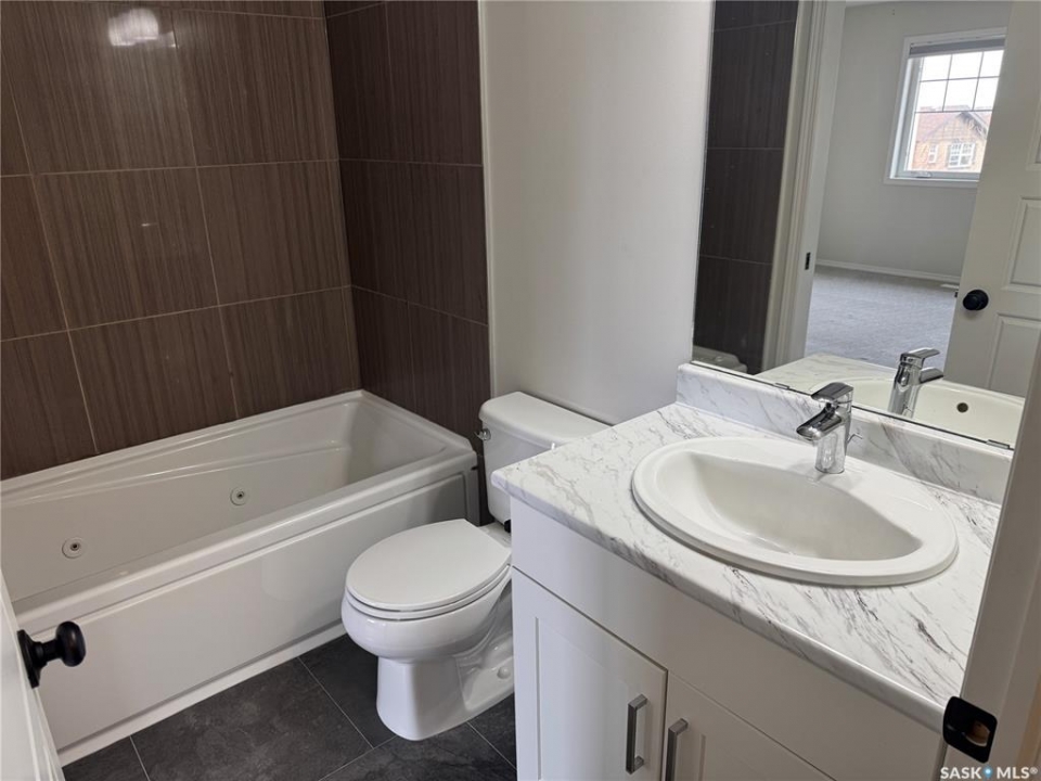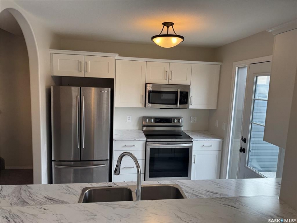 Welcome to effortless living in the sought-after gated community of Little Tuscany in Stonebridge! This stylish, move-in ready townhouse style condo offers a smart, multi-level layout designed for comfort and convenience. The ground floor welcomes you with direct access from the attached single garage, along with a spacious laundry area that provides plenty of extra storage. Upstairs, the main living space is bright, open, and perfect for entertaining. The kitchen shines with crisp white cabinetry, stainless steel appliances, a functional eat-up bar, and easy access to your private balcony—ideal for morning coffee or evening unwinding. The dining area and family room are flooded with natural light and offer plenty of space to host family and friends, while a convenient powder room completes the level. The top floor is your private retreat, featuring two bedrooms including a generous primary with a walk-in closet and direct access to the full bathroom, complete with a relaxing jetted tub. Additional highlights include central air conditioning and central vacuum for added comfort and ease. Set within a well-maintained, gated community offering a clubhouse, fitness room, and sports court, and just minutes from schools, shopping, and all Stonebridge amenities with quick access to Circle Drive—this is low-maintenance living at its best. Don't miss your opportunity—book your showing today!