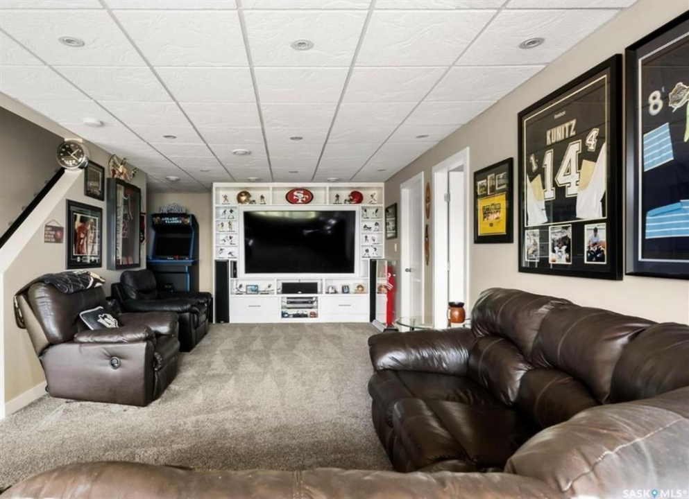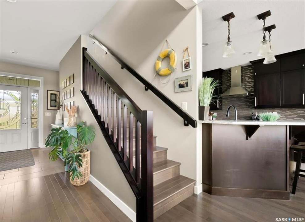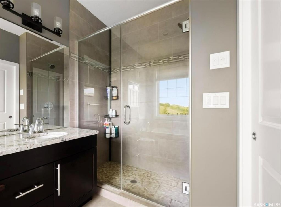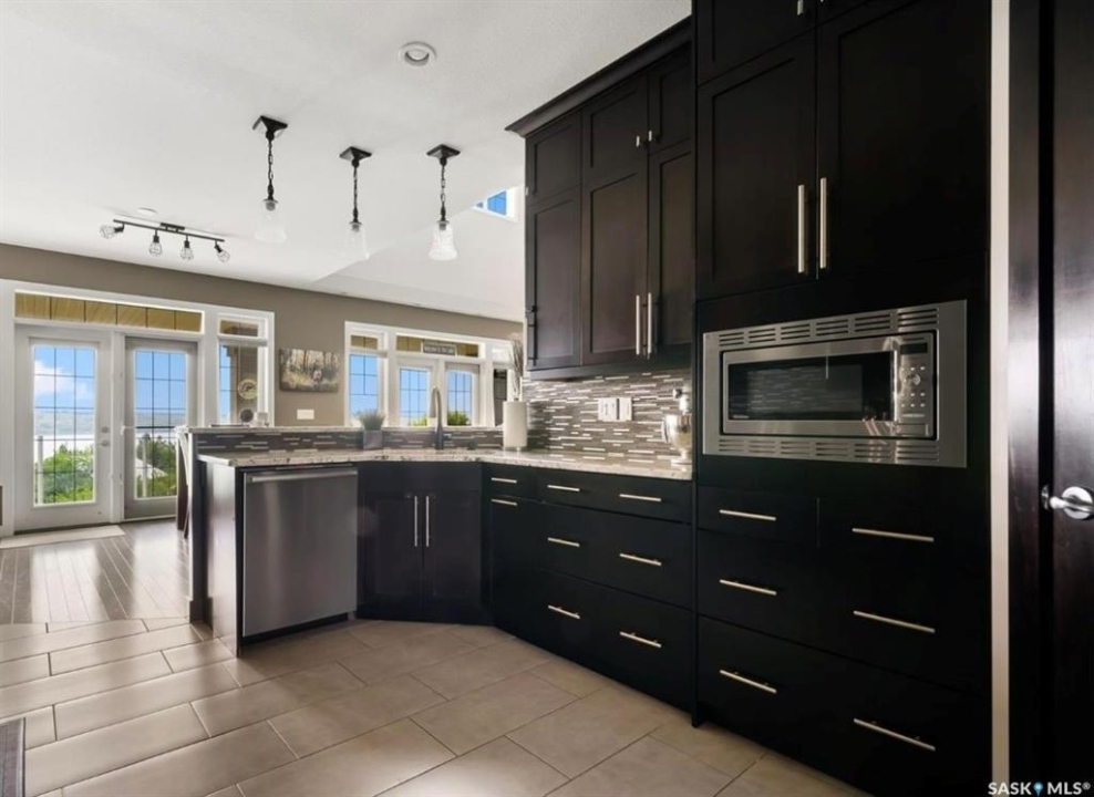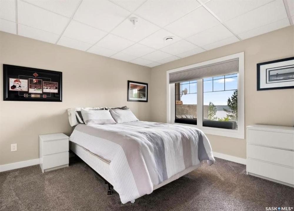 If stunning lake views and serene Saskatchewan skies are your vibe, you just stumbled onto a little slice of paradise you'll never want to leave. Situated on 1.26 acres in the friendly lake community of Shore Acres just 40 minutes outside of Regina, this amazing walkout bungalow is ready for new owners to make memories. Built by Varsity homes, the unique "california king" floor plan offers an open concept with 2 bedrooms on the main floor and a deck with access from both spanning nearly the entire length of the house. Trust me when I say - you've probably got the best view of anyone, from anywhere in this house. A cozy living area with gas fireplace accented with stack stone flows effortlessly into the dining area featuring access to the deck, and an eat-up island. Carrying on into the kitchen, enjoy an abundance of cabinetry, granite countertops, and stainless steel appliances. The primary room features built in shelving, a walk in closet, a 4pc ensuite with tile shower and soaker tub (another incredible view from here) and access to a screened in private deck. The other wing of the home features the second bedroom, main 4pc bathroom, and direct entry access to the 24x24 heated garage with epoxy flooring & mezzanine storage. Natural light dances throughout this home, and is especially bright in the upstairs loft. Flooded with windows, this space overlooks the main living room below, and is the perfect space for an office, art studio, or home schooling room. The basement is every man's dream - a wet bar with beer/wine fridge, room for a pool table, an expansive rec room with an entertainment unit fit for a king. Add on a 4pc bathroom, 2 additional super spacious bedrooms, and access to the yard, and this walkout basement simply feels like an extension of the main floor. There is a second driveway leading to the 24 x 34 heated shop, featuring 10 ft. doors front & back and a floor drain. This is truly a property you have to see and experience for yourself!