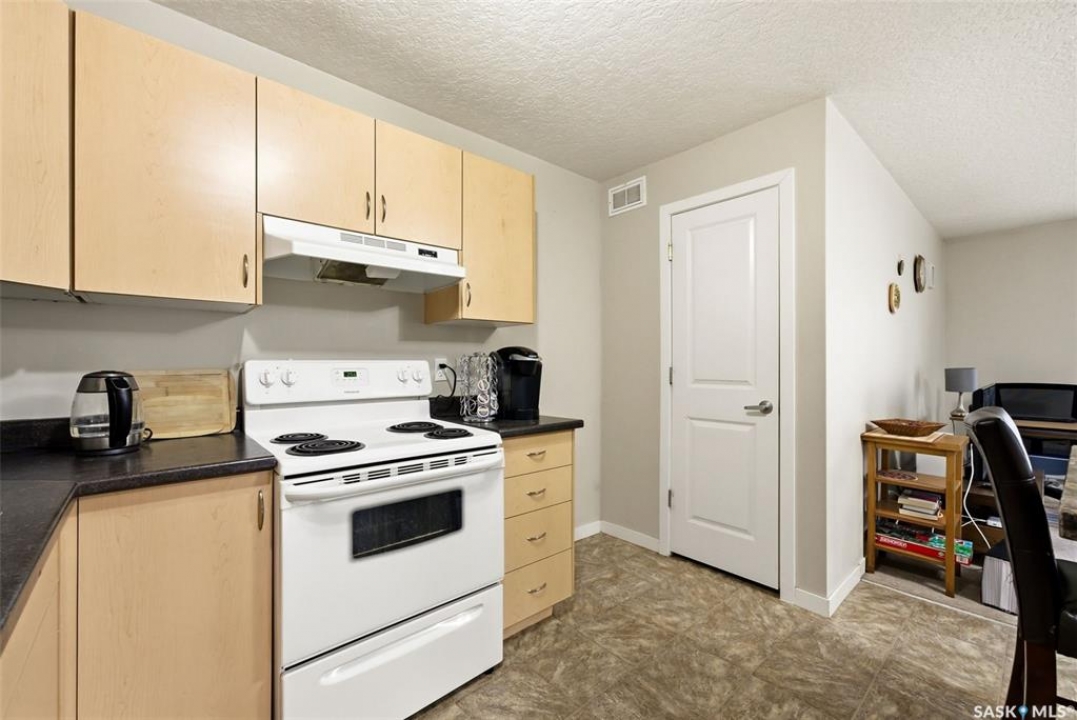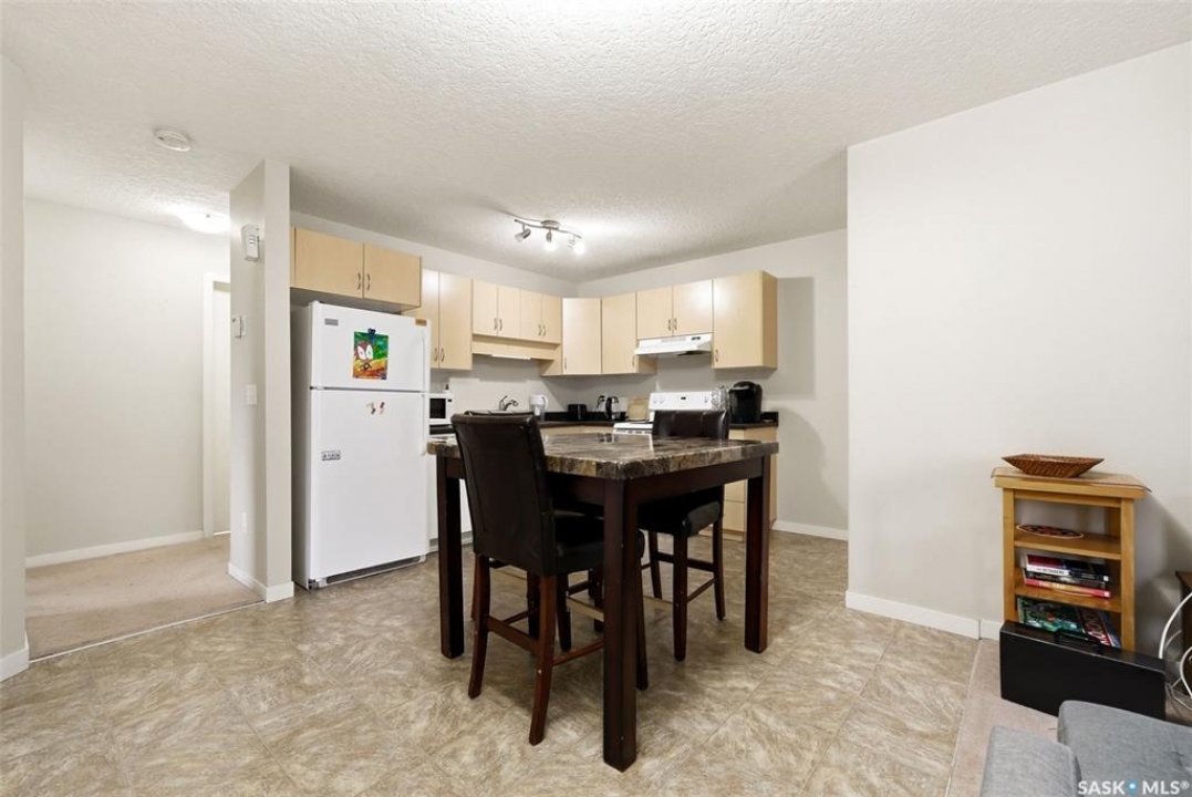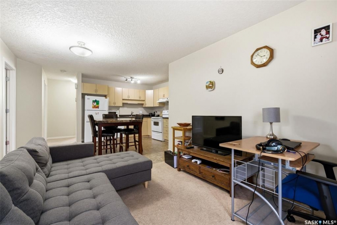 Welcome to this stylish and well maintained 753 sq ft main level condo located in the heart of Harbour Landing. Offering a bright open concept layout, the living, dining, and kitchen spaces are filled with natural light and feature neutral decor, with the kitchen providing ample cabinetry, counter space. Down the hall you'll find two good sized bedrooms, a full 4 piece bathroom, and convenient in-suite laundry. Complete with a full white appliance package, included parking stall, ample storage, and low condo fees, this unit is ideally situated just steps from shopping, restaurants, schools, and transit, with easy access to Lewvan Drive, Ring Road, and the Bypass, making it a fantastic opportunity for affordable home ownership and low maintenance living.
