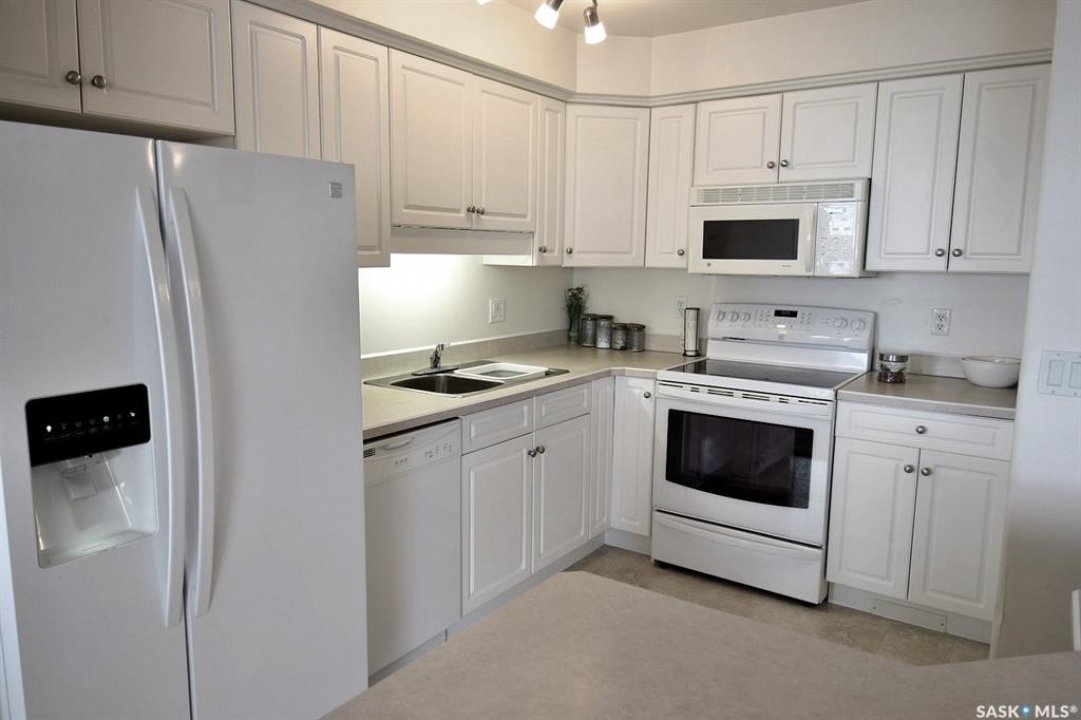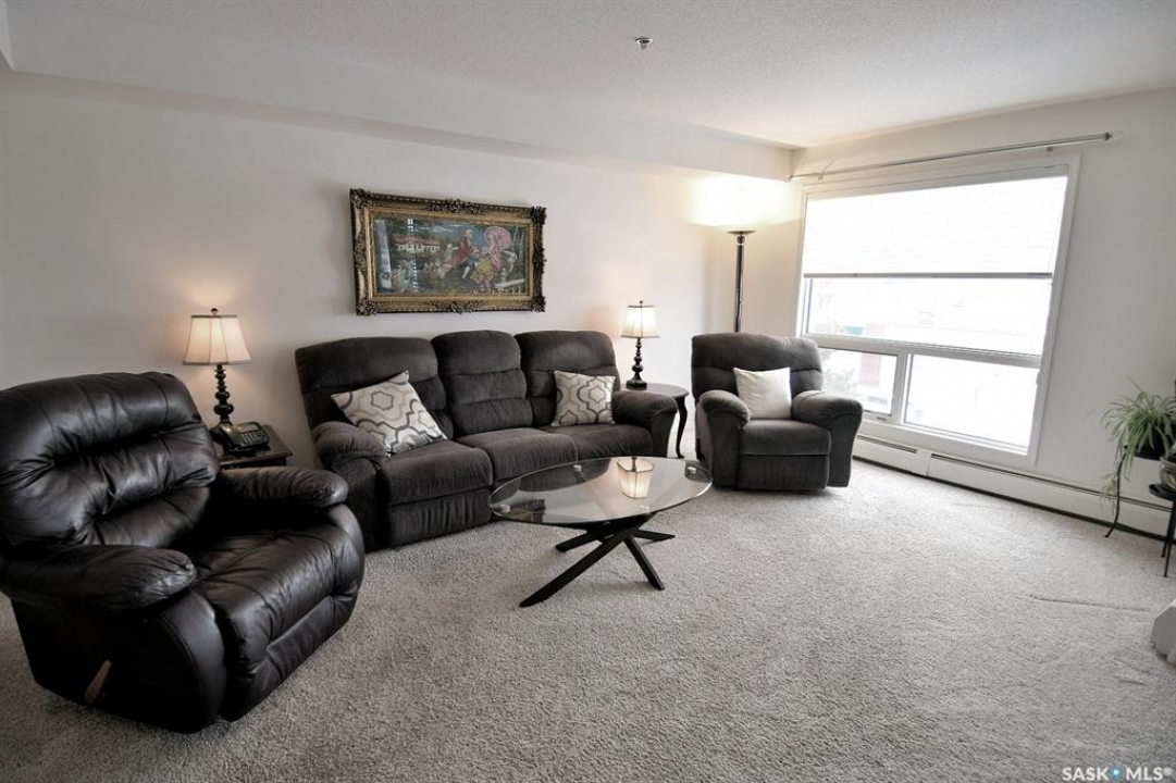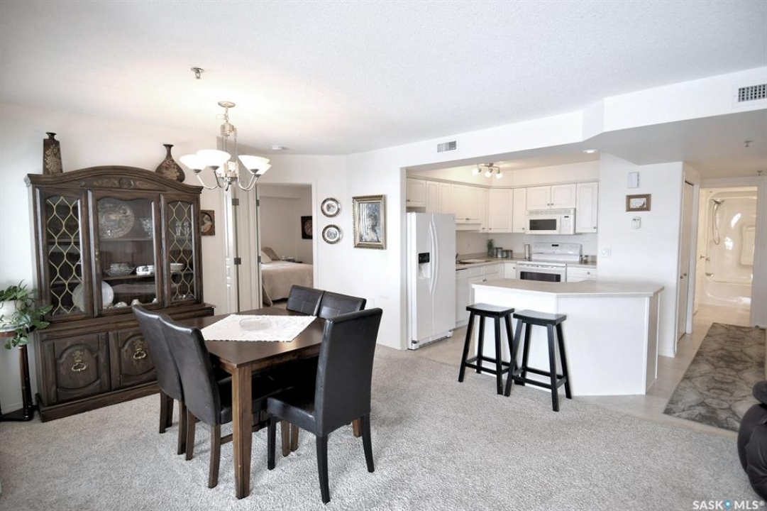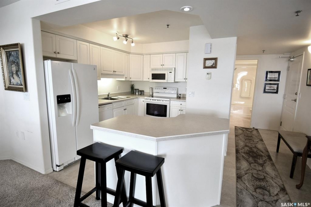 This is a fantastic opportunity for independent living in a well-maintained 2-bedroom, 2-bathroom condo. This bright, south & west-facing corner unit offers an ideal location adjacent to the highly desirable Market Mall, with convenient access to shopping, restaurants, groceries, and a medical center. Nearby parks, walking paths, and tennis courts add to the appeal of this vibrant community. Located in The Fremai, this inviting suite features a functional layout, including a 3-piece ensuite off the primary bedroom with a spacious 5-foot shower & molded seat. The bright white kitchen is thoughtfully designed with ample counter space, an island for additional cabinetry & possible breakfast nook, and includes a fridge, stove, B/I dishwasher and over-the-range microwave. Enjoy year-round comfort hot water heat & central air conditioning, while the in-suite laundry and storage room provides extra space, including room for a freezer. The washer & dryer has been recently replaced. Residents of the building benefit from excellent amenities, including a social room with shuffleboard and pool table, an exercise room, and elevator access. This unit also includes heated underground parking and additional storage locker located in front. The parking is only a few spaces from the elevator. Don't miss your chance to own this well-located and comfortable home—book your private viewing today!