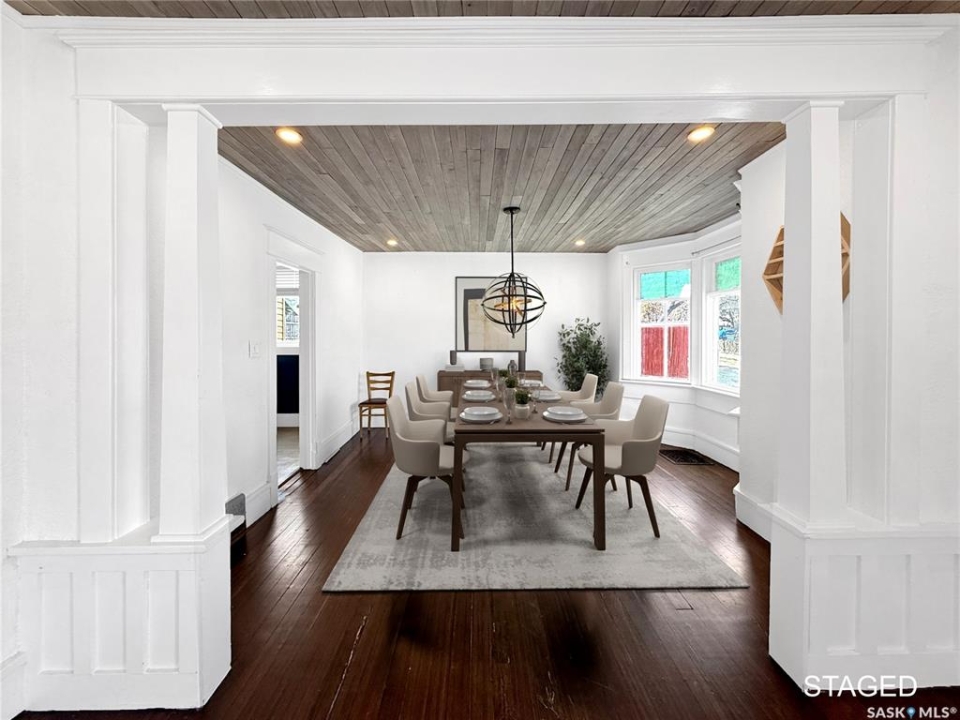 376 5th Avenue NW is the perfect blend of timeless character and thoughtful modern updates—an inviting 1 � storey home in Swift Current's desirable North West neighbourhood. Offering 1,274 sq ft, this charming property features 4 bedrooms up and 2 bathrooms, with renovations that enhance the home's warmth, style, and everyday function. Fall in love with the original details that make a character home so special: refurbished hardwood floors, stained glass accents, high main-floor ceilings, and large bright windows that flood the space with natural light. The main level is anchored by a beautiful white modern kitchen with epoxy countertops, built-in cooktop, undermount farmhouse sink, gold gooseneck faucet, updated appliances, trendy backsplash, luxury vinyl tile, and a barnwood door for an “urban farmhouse” feel. The kitchen flows into a spacious dining area open to the living room—ideal for hosting or relaxing at home. You'll also appreciate the convenience of a generous main-floor laundry room and an updated 3-piece bathroom featuring a tiled shower. Upstairs you'll find four bedrooms and an oversized 3-piece bathroom complete with a soaker tub and vanity area. Step out onto the refinished second-storey balcony and enjoy peaceful views—your own little retreat. Outside, the freshly landscaped, fully fenced backyard is ready for summer with a large deck, green space, shed, and a large rear parking pad, plus a covered front verandah to complete the curb appeal. Additional updates include extra insulation, drywall, wainscoting, energy-efficient furnace, hot water heater, shingles, vinyl siding, and an updated retaining wall. Appliances are included and quick possession is available—move in and enjoy!