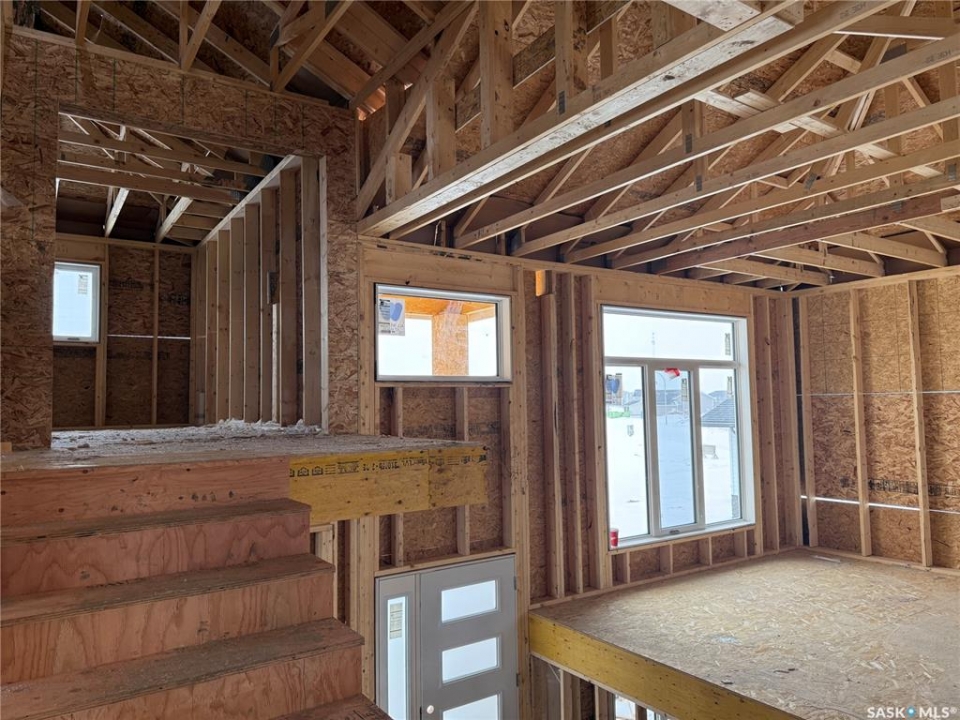 Just Framed. This brand new modified bi-level by Taj Homes is going to be a stunner. Ideally located in The Legends Neighbourhood of Warman, this location has it all - close to parks, amenities and quick access to saskatoon. The list of upgrades is long and include a spacious insulated double garage, oversized triple pane ALL WEATHER windows, Taiga Curate LVP throughout the home and $1500 lighting credit so you can design your new home. Quartz countertops, Tall 10ft ceilings throughout the main floor with 9ft basement, ceiling height cabinetry, and a double car concrete driveway are just some of the notable items. The main floor features 2 bedrooms, a full 4 piece bathroom, a dedicated bright laundry room and an open concept kitchen/dining/living space with numerous large windows. Upstairs you'll be greeted by large double doors as you enter the primary bedroom complete with a walk-in closet, spacious 5 pc ensuite bathroom and with that south facing sunlight. You'll continue to be impressed by the large, bright basement family room which is open to development (contact for basement pricing). Some notable features include a on demand water heater, energy efficient furnace, All Weather Triple Pane windows, full set of stainless steel appliances, black trims and fixtures and Progressive New Home Warranty. Currently under construction, this home comes with a guaranteed possession date so you can plan your move with confidence—no delays, no surprises. Possible May-June possession. Come today and customize your new home by selecting from a range of color palettes and finishes to match your personal style. NOTE FRONT ELEVATION PICTURE IS AI GENERATED, FINAL COLOUR MAY VARY.
