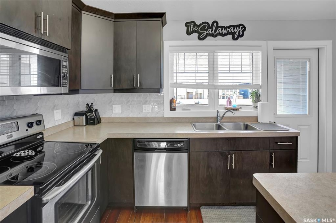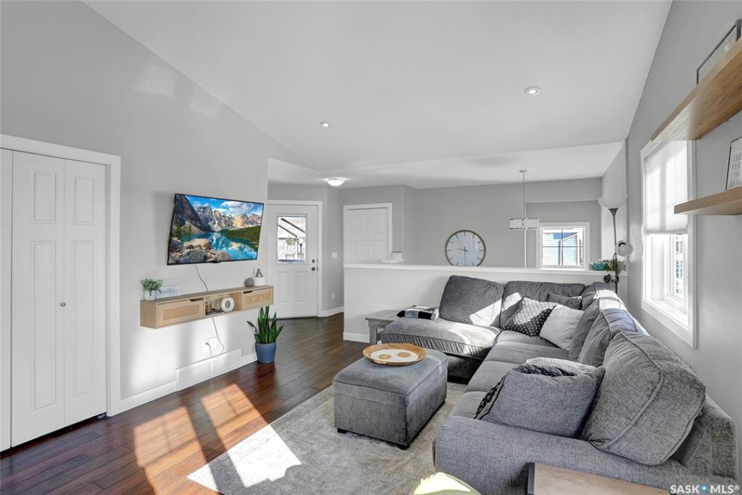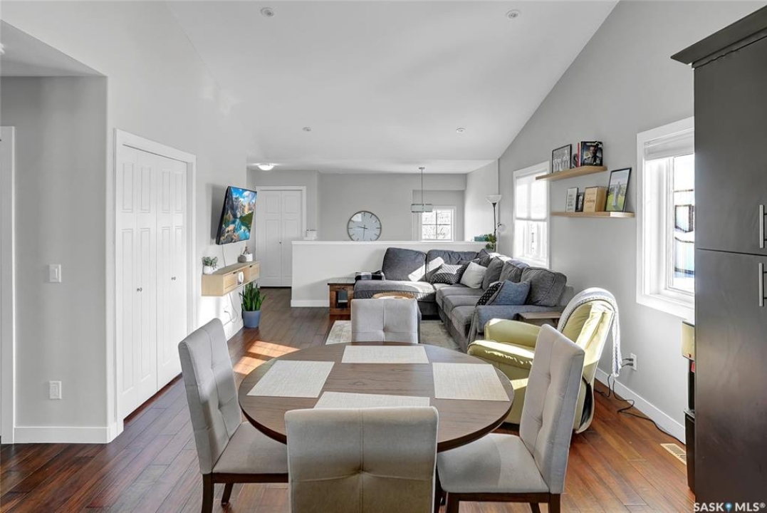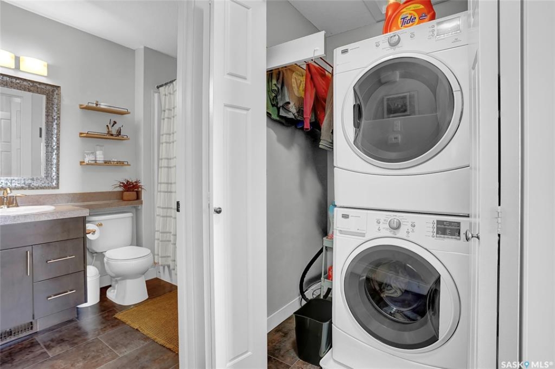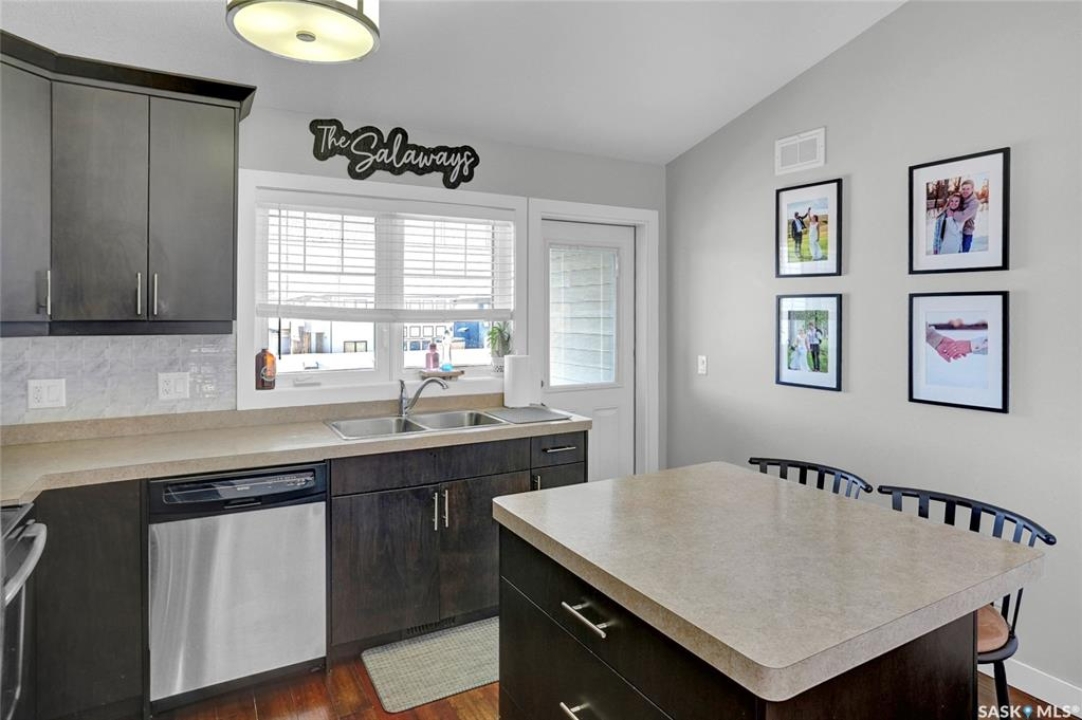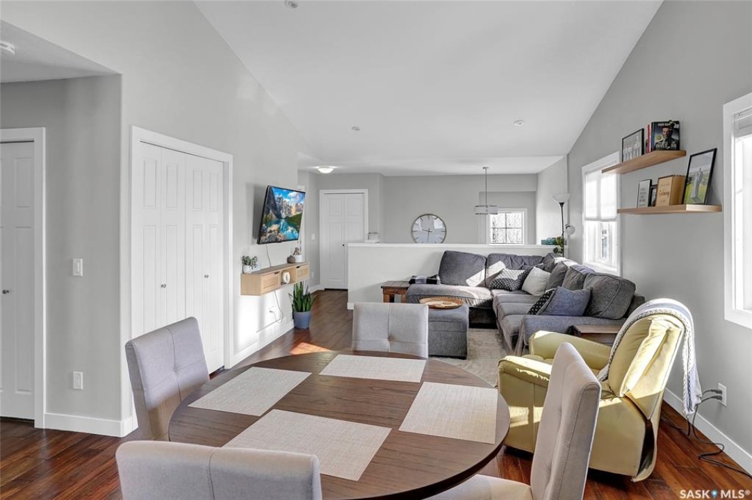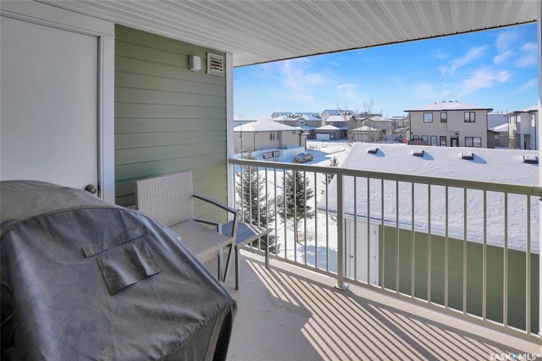 Modern Living in the Greens on Gardiner. Experience the perfect blend of style and convenience in this stunning corner unit, two-bedroom, two-bathroom condominium. Perfectly situated in the Greens on Gardiner, you are just a short distance from all the local amenities including Elementary schools. this vibrant community has to offer. This home provides a sophisticated, low-maintenance lifestyle within the Green Stone complex. The main level welcomes you with an airy, open-concept floor plan featuring soaring vaulted ceilings, plenty of natural light compared to other units due to being a corner unit with plenty of windows and much more. The functional kitchen is equipped with elegant dark cabinetry offering plenty of storage space, a central island with seating, and a full suite of stainless steel appliances. The primary bedroom serves as a comfortable retreat with plush carpet flooring and the added convenience of its own private ensuite bathroom. A second bedroom and additional bathroom complete the well-designed layout. This home is packed with modern upgrades designed for your comfort and effortless living. Stay cool all summer with central air conditioning, and enjoy the convenience of a detached garage that is partially insulated, plus an additional surface parking stall as well as plenty of street parking. You can also relax on one of two of your private balconies or take advantage of the community playground. Best of all, your maintenance-free lifestyle is supported by condo fees that cover external building maintenance, snow removal, lawn care, and garbage. As an added storage bonus there is a private access to a storage area for seasonal storage not to clog up your great garage space. See half size door out front by parking space.