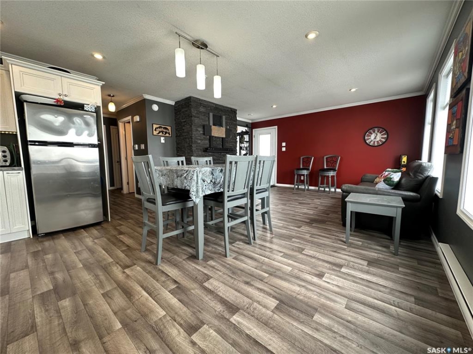 Discover your dream lakefront lifestyle with this stunning 2015-built home at Burgis Beach on Good Spirit Lake! Designed for year-round enjoyment, this move-in-ready retreat boasts a spacious wraparound deck with sleek aluminum railings and a protective windscreen, leading to a generous concrete patio and inviting fire pit—perfect for entertaining or relaxing under the stars. Wake up to breathtaking sunrises with your morning coffee, then unwind with spectacular sunset views from the other side of the home, enhanced by an electric awning for extra shade and comfort. Flooded with natural light from expansive windows, the open-concept living room features a gorgeous stone wood-burning fireplace, creating the ideal ambiance for cozy winter nights. Only premium birch wood has ever been burned. Each room has individually controlled baseboard heat for personalized comfort. Built on durable screw piles, the insulated, heated 3.5' crawl space provides extra storage while keeping your home secure and critter-free. The chef's kitchen showcases soft-close cabinetry, premium stainless steel appliances, and an air exchanger for fresh, clean air. Connected to the reliable Canora water line, you'll have peace of mind year-round. Enjoy maximum leisure time thanks to the xeriscaped yard—beautiful, low-maintenance landscaping means more time at the lake and less time on chores. Additional highlights include a fully insulated 14x18 garage, a handy storage shed, and RV parking with a convenient plug-in. Make every day a getaway—schedule your private tour today and embrace the lake life you've always wanted!