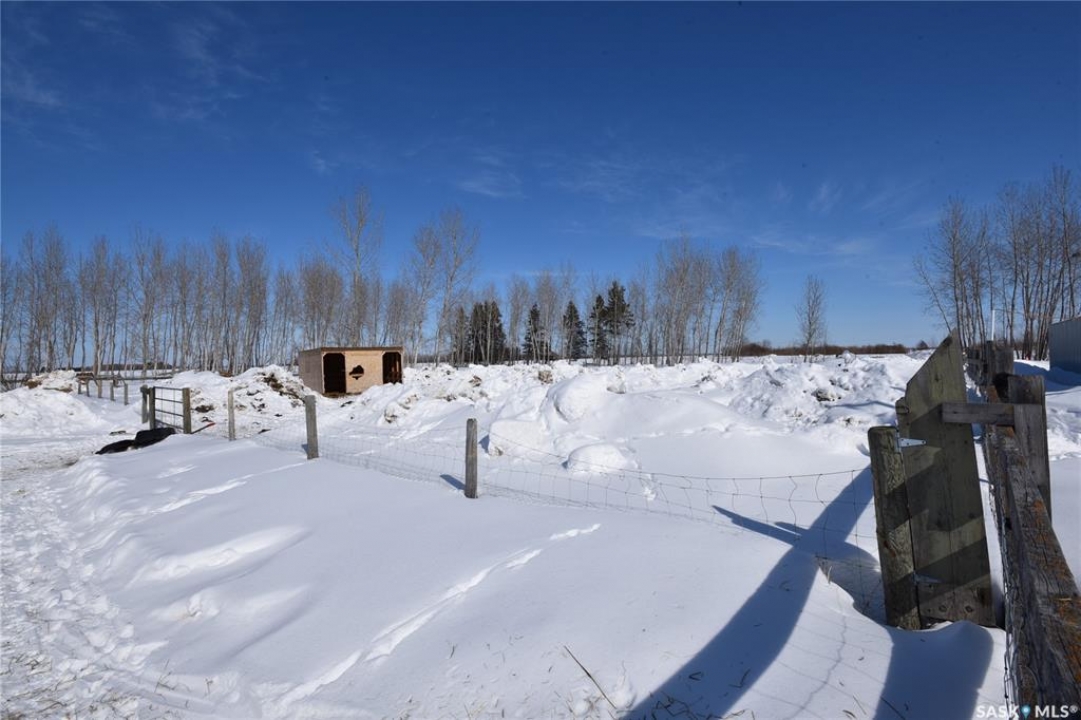 Beautifully maintained 13.23 acre property set up for comfortable rural living and ideal for animal grazing, featuring fully fenced land with multiple sectioned pastures. Currently operated as a homestead, this well-rounded acreage offers a bright and inviting 3-bedroom home with large windows throughout for plenty of natural light, a cozy wood-burning fireplace, and convenient main floor laundry. The property has seen several important upgrades, including an improved water system and recent electrical updates to house and outbuildings. Outside, the established yard offers a garden with raised beds, along with mature apple trees and an abundance of fruit including strawberries, rhubarb, haskap, and raspberry bushes. Well-equipped for a variety of uses, the property includes a double detached garage, greenhouse, barn, workshop, pole shed, and wood shed. Ideally located in the RM of Torch River with direct access off a paved road and an easy commute to Nipawin, this acreage is perfectly suited for those seeking a peaceful country lifestyle with practical amenities. Call today for more details!
