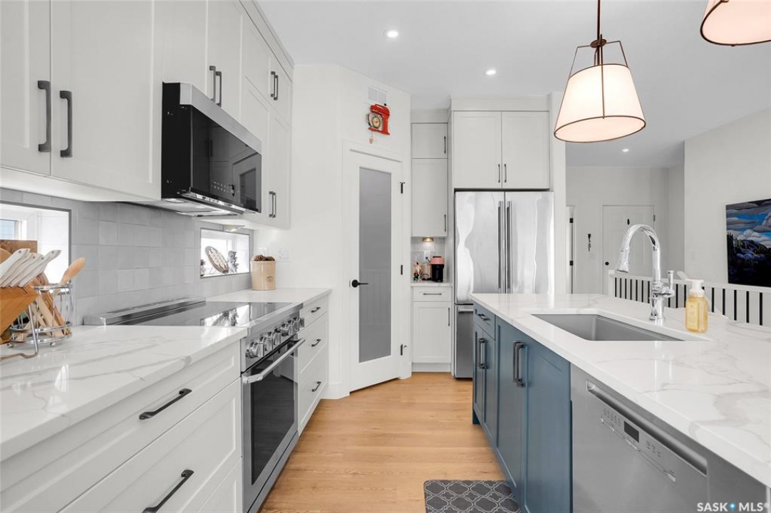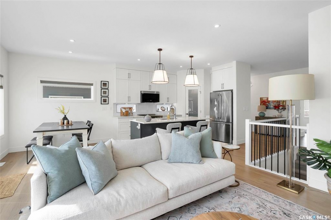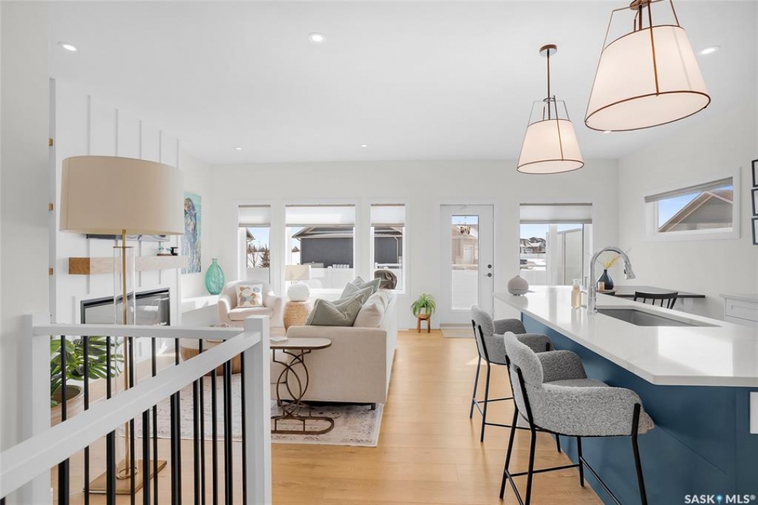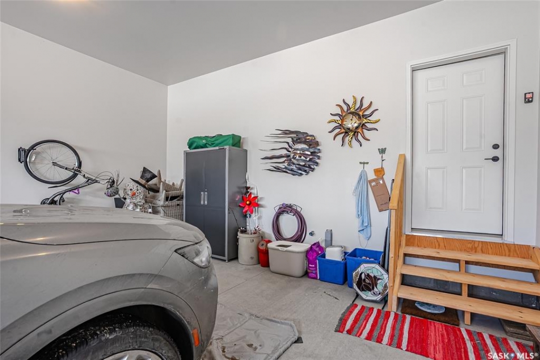 Welcome to the vibrant community of Warman, a city that offers all essential amenities and more. This immaculate end-unit townhome, bungalow style, built by a reputable Northridge builder, is ideally situated in a highly sought-after neighborhood adjacent to the golf course, offering lovely views of surrounding green space. Well maintained by its original owner, the home features thoughtful upgrades throughout, including enhanced lighting, custom living room shelving, and premium Electrolux appliances—a fridge, stove, washer, dryer, built-in microwave/hood fan—as well as a high-end Miele built-in dishwasher. The open-concept floor plan creates an inviting and functional living space. The modern kitchen is bright and stylish, complete with a walk-in pantry, island with breakfast bar, and quartz countertops. The comfortable living room offers a beautiful electric fireplace as its focal point. The primary bedroom includes a private three-piece ensuite. Step outside through the garden door to enjoy the south-facing deck, equipped with a custom motorized awning for shade and comfort when desired. The full basement features four large windows, is fully insulated, and is open for your future development. Additional highlights include custom blinds, central air conditioning and a fully insulated, drywalled double attached garage with direct entry. Located just steps from Corney Klassen Park, you'll have access to excellent walking paths and a wonderful sense of small-community serenity—all while enjoying the convenience of big-city services. With quick access to Saskatoon via a well-maintained double-lane highway, this home offers outstanding livability. Experience condo-townhome living at its finest, offering effortless comfort and low-maintenance convenience. Truly move-in ready and a pleasure to view.