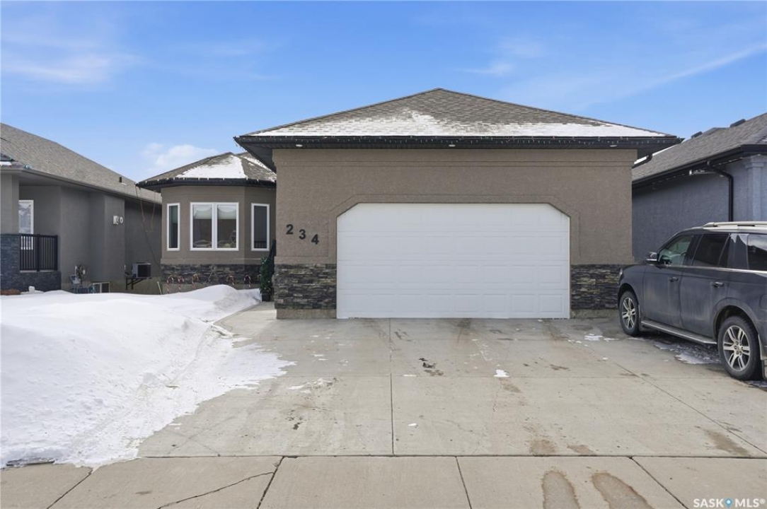 Welcome to 234 Greenfield Crescent — a rare walkout bungalow backing beautiful green space in the heart of Hampton Village. Offering privacy, wide open lay out and great views. The main floor features a bright, open-concept design with large windows that frame the natural setting behind the home. The kitchen offers generous cabinetry, ample counter space, and a functional layout that flows seamlessly into the dining and living areas — ideal for both everyday living and hosting guests. The primary bedroom provides a comfortable retreat with ensuite access, while additional main floor bedroom space offers flexibility for family or a home office. The fully developed walkout basement is a standout feature, offering expansive additional living space filled with natural light and direct access to the backyard and green space. This level is perfect for entertaining, relaxing, or accommodating guests with additional bedroom and bathroom space. Enjoy peaceful views from the upper deck or step out from the lower patio into the open green space just beyond your yard — a rare and highly desirable feature in this neighbourhood. Located in the family-friendly community of Hampton Village, you are close to parks, schools, walking paths, shopping amenities, and convenient access to Circle Drive. This is a unique opportunity to own a walkout bungalow backing green space in one of Saskatoon's most popular west-side neighbourhoods.