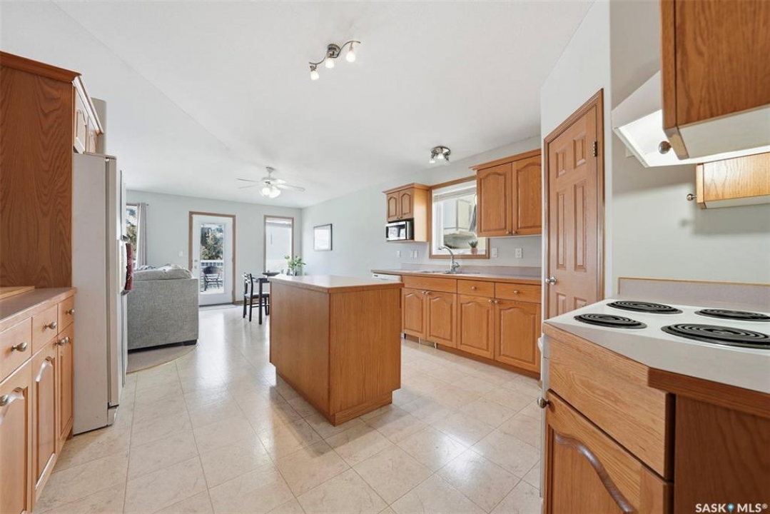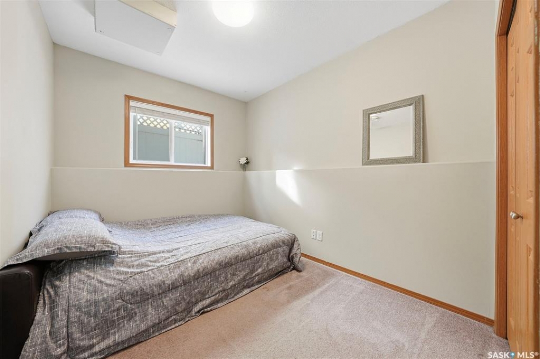 Welcome home to this stunning semi-detached bi-level, where exceptional street appeal meets a thoughtfully designed interior. From the moment you step inside, you are greeted by an expansive open-concept main floor defined by soaring vaulted ceilings and an abundance of natural light. The heart of the home is the spacious living room, anchored by a charming brick gas fireplace that promises cozy evenings. For those who love to cook and entertain, the large kitchen is a standout, featuring classic light oak cabinetry, a functional island, and a generous corner pantry. The adjacent dining area transitions seamlessly through patio doors to a private rear deck. Completing the main level is a convenient two-piece powder room and a dedicated laundry room—a rare find that adds a layer of everyday ease.The lower level is a masterclass in space optimization, offering a quiet retreat for the whole family. It boasts three bedrooms and a full four-piece bathroom, ensuring everyone has their own space. Beyond the bedrooms, you'll discover a versatile bonus room—perfectly suited for a home office or craft studio—making this home as functional as it is beautiful. High-end practical features are found throughout, including a central vacuum system, an attached single 12x22 garage, and underground sprinklers to keep the mature trees and lush lawns looking their best with minimal effort. Perhaps the most attractive feature of all is the freedom that comes with NO condo fees, providing incredible value in one of Saskatoon's most established neighborhoods. You are within easy walking distance of the Canarama Shopping Centre and minutes from Lawson Heights Mall. Nature enthusiasts will love the close proximity to the South Saskatchewan River trails, while students and professionals will appreciate the effortless access to the University of Saskatchewan. This is more than just a house; it's an opportunity to own a piece of River Heights without sacrificing style or convenience.