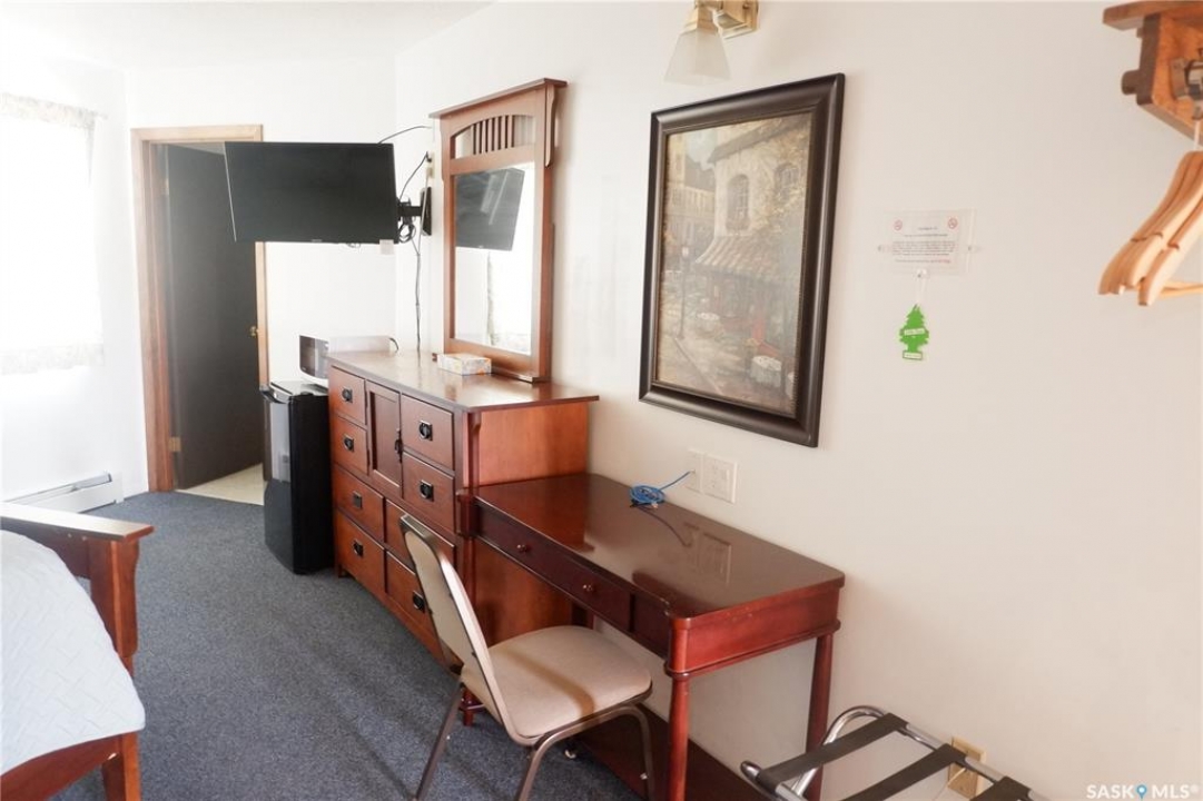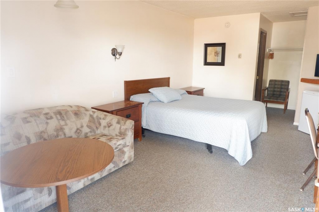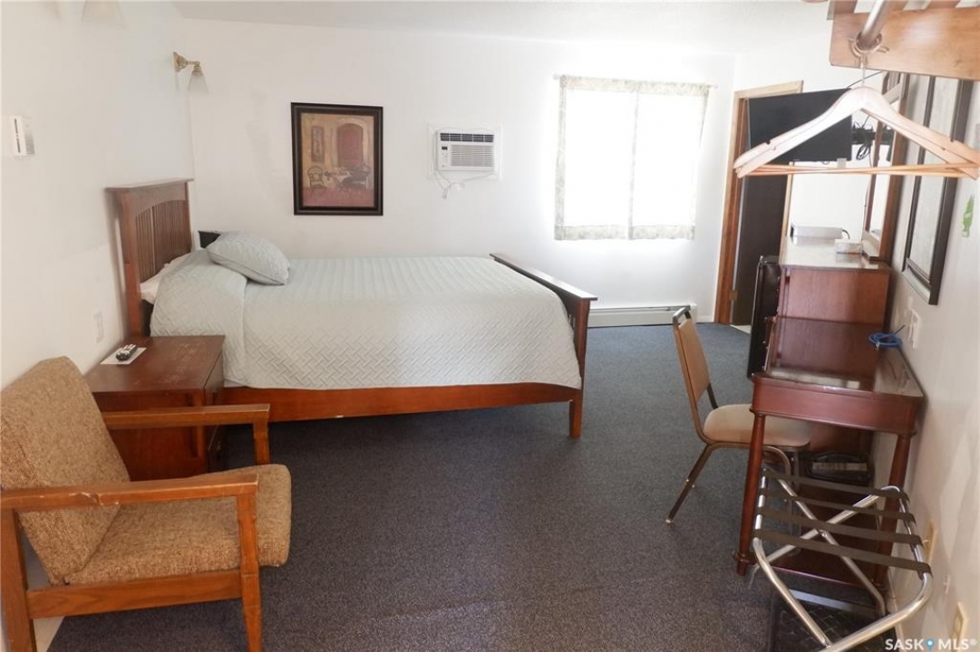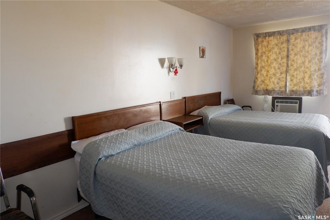 The Country Boy Motel in Coronach offers 25 rooms and a two-bedroom owner's suite. The property is clean, well maintained, sits on over an acre with ample parking, and has shown strong returns in previous years. Each room includes a fridge, microwave, air conditioner, cable TV, and a full bathroom. Living quarters feature an open kitchen/living area and direct lobby access. The double detached garage provides owner parking and storage; the boiler and shingles have been recently replaced. A separate addition serves as a snack and storage room, previously used as truck shower facilities. Room breakdown: 13 singles, 8 doubles, 4 deluxe. Please allow time to set up showings. Coronach is in South Central Saskatchewan, 15 minutes from the US/Canada border.