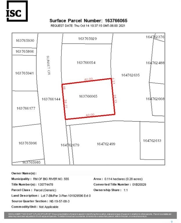 WALKOUT POTENTIAL - incredible value! Check out this excellent lot on Sunset Cove at Cowan Lake, approximately 1.5 hours from Prince Albert and 2.5 hours from Saskatoon in the beautiful Northern Boreal Forest. This 0.28-acre titled parcel is located at the resort community of Sunset Cove, a year-round getaway with many nearby activities including fishing, snowmobiling, watersports, and even skiing at nearby Timber Ridge ski hill. The town of Big River is just 16km away and serves as a service hub for the local community. Located on the edge of the shoreline, Sunset Cove is a small subdivision with many year-round residents and a private boat launch/parking for residents. One row back from the water, this sloping parcel is perfect for a future walk-out basement or garage loft with views of the water. The lot backs onto an environmental reserve, providing a buffer strip between the lot and the adjacent property. The road approach and culvert have already been installed, power and phone service are located near the edge of the property in the ditch. Whether you're looking to build a summer retreat or your dream home at the lake, this lot offers an excellent opportunity for you to enjoy the peace and serenity of Northern Saskatchewan. Don't miss out!