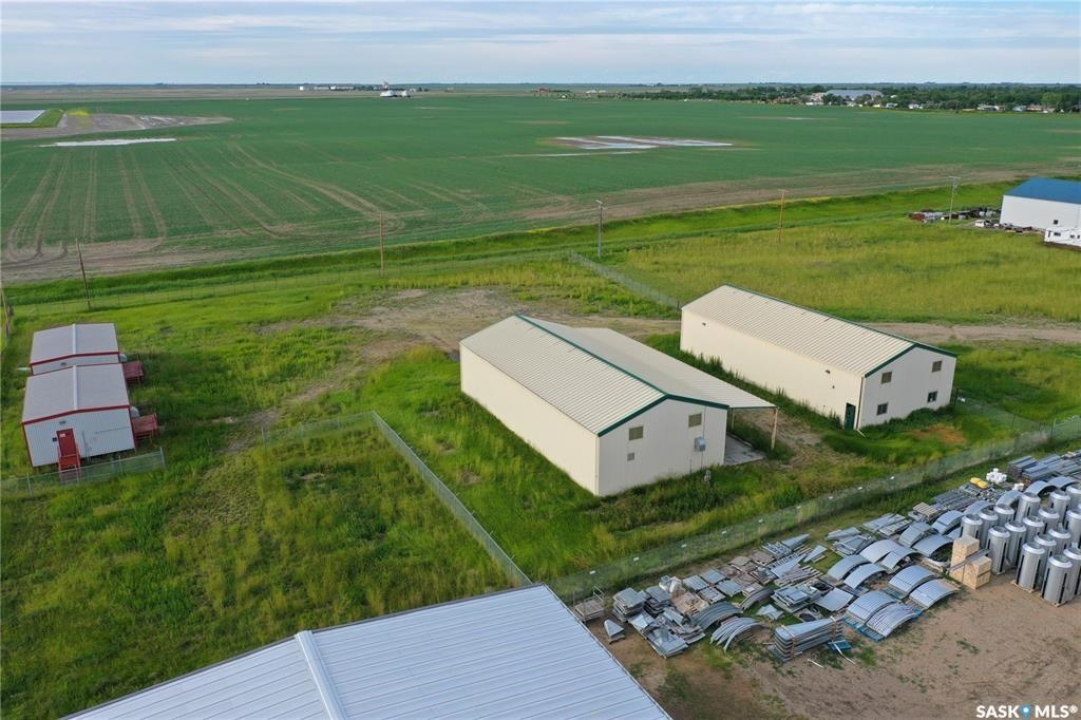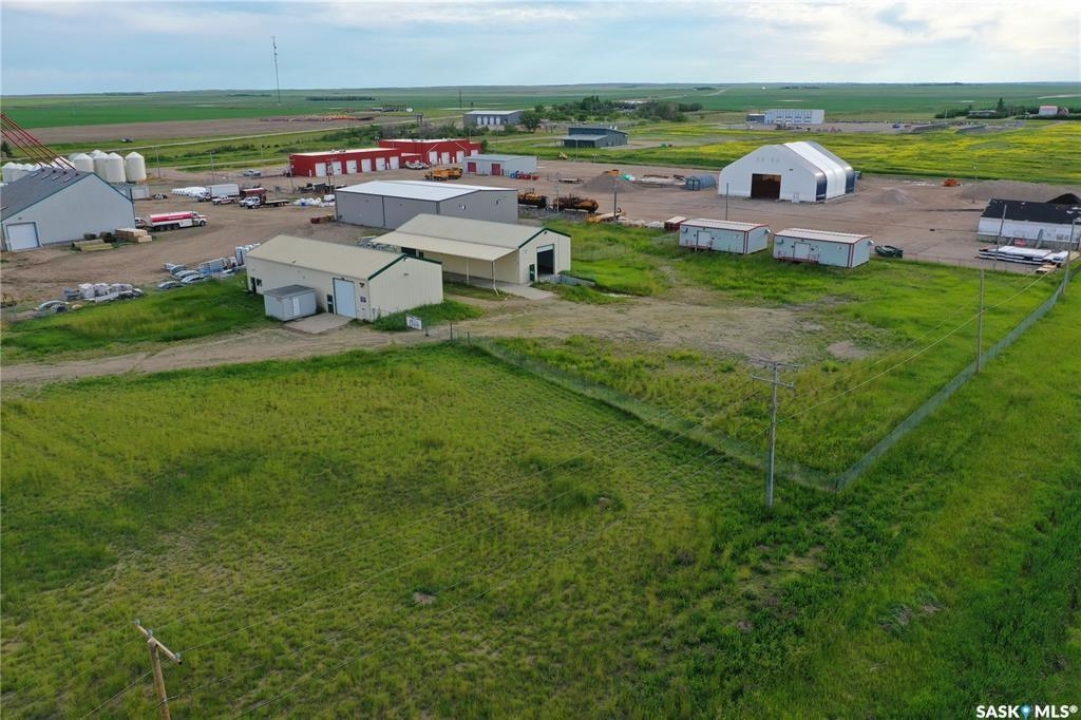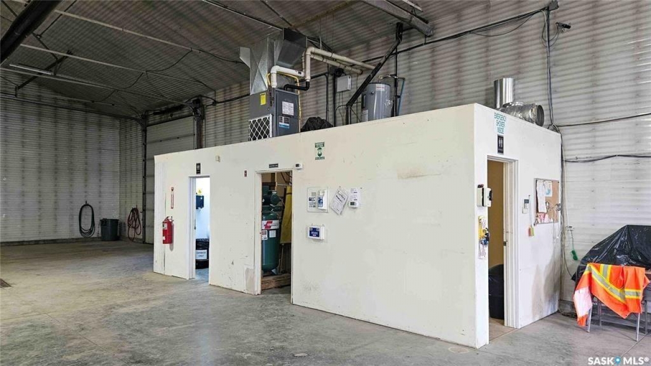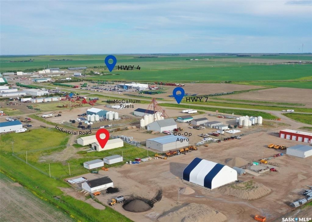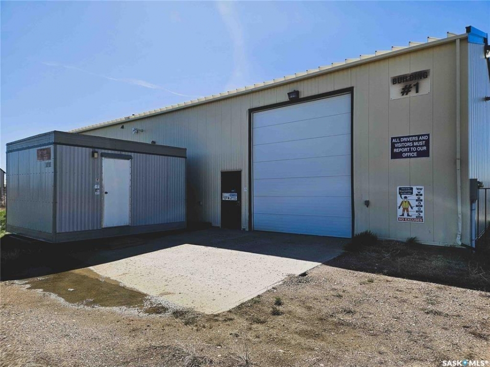 Prime Industrial Opportunity on Highways 7 & 4 -- Position your business along Rosetown's major transportation corridors. This 2.29 acre Light Industrial property offers exceptional flexibility for equipment repair, storage, or a wide range of commercial/industrial uses. Located in Rosetown's industrial park, the majority of the site is secured within a fenced compound. The property includes two 40' x 80' x 20' warehouse buildings, each built with Makloc rigid frames, concrete floors, concrete foundations, and white aluminum interior sheeting. BUILDING #1 (Heated & Insulated): Forced air gas furnace (2023) + overhead radiant heater, one 12' x 14' overhead door, three steel man doors, two washrooms (one with shower; new hot water tank 2023), utility room, center floor sump with grates and separator, 3 HP vertical air compressor, security system with remote monitoring and a 200 amp main electrical panel. BUILDING #2 (Unheated): Two 12' x 14' overhead doors, two steel man doors, center sump, 100 amp exterior sub panel with explosion proof electrical service, awning with 15' eave height for sheltered loading/unloading, loading dock with sump pump (can be filled for grade level access). -- In 2021, the replacement cost for each building—frame and exterior only—was estimated at $338,000. With concrete, services, and inflation, this represents a million dollar build today. --- The heated shop is presently leased and generates a nice income. --- This property sits less than one mile west of the Highway 7 & 4 junction and is minutes from multiple bulk fuel suppliers. Highway 7 serves as a major route between Saskatoon and Calgary, while Highway 4 connects Meadow Lake to the U.S. border, ensuring excellent logistical access in all directions.