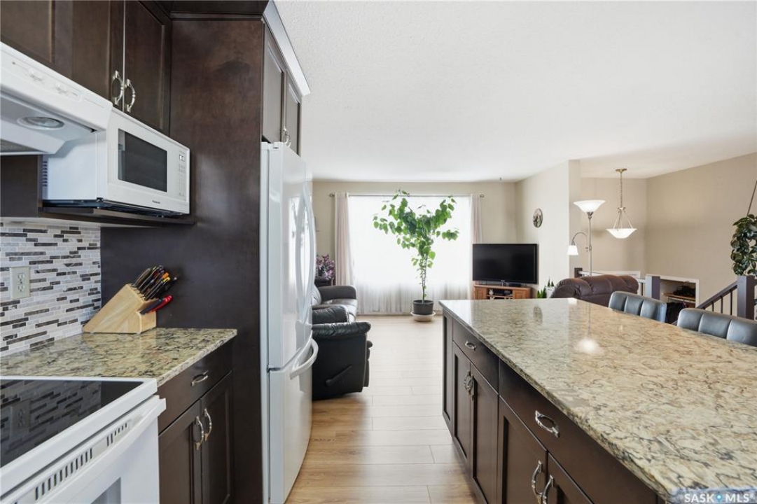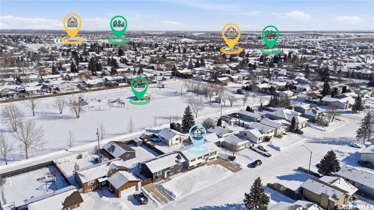 Backs Lions Park & greenspace!! Welcome to 425 5th St S, Martensville, this 5 bedroom, 3 bathroom bilevel comes move in ready with upgrades already done. The open concept kitchen features a grand island, granite countertops, and tile backsplash. The flooring on main floor has newer laminate through the living space. The primary bedroom also has its own ensuite making this a good fit for all buyers. The basement offers 2 more bedrooms, bathroom (needs shower installed to make B3) and a massive laundry room finished with cabinets and storage space. Out back you have a dream 25x27ft heated detached garage with 8 ft doors and 9 ft ceiling and there is even a floor drain to collect all the melted snow. Other notables: central air conditioning, deck off dining room, front concrete driveway, and is fully fenced. Don't miss out on this great home!
