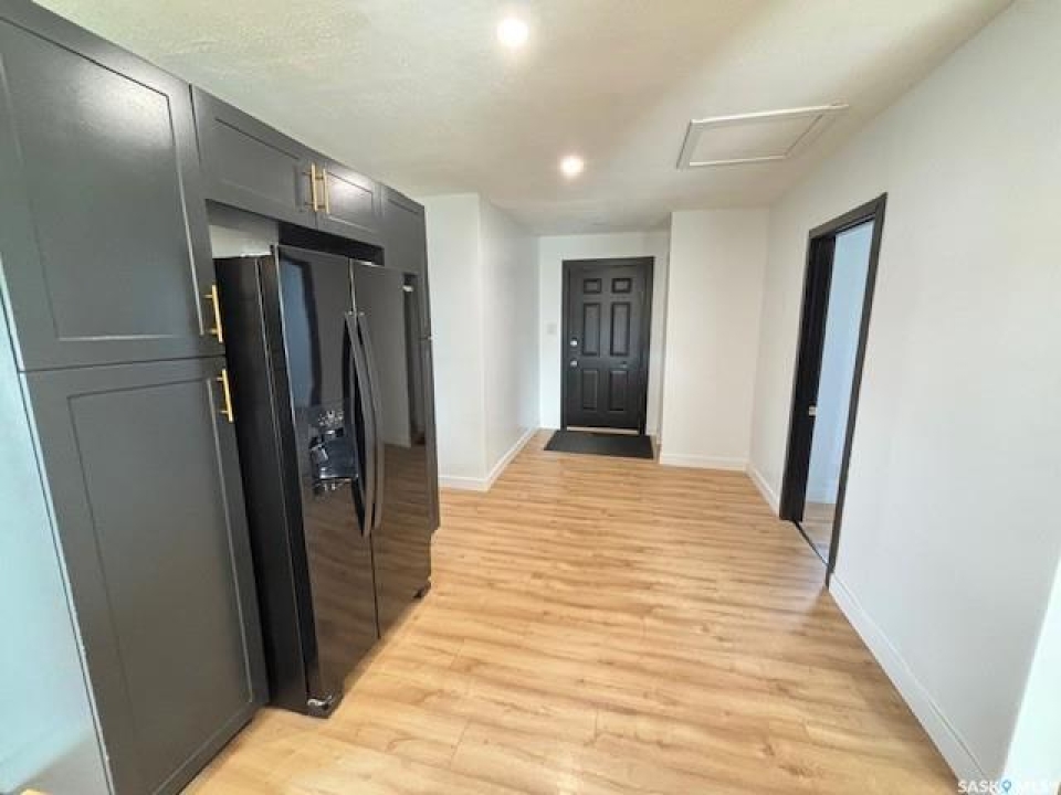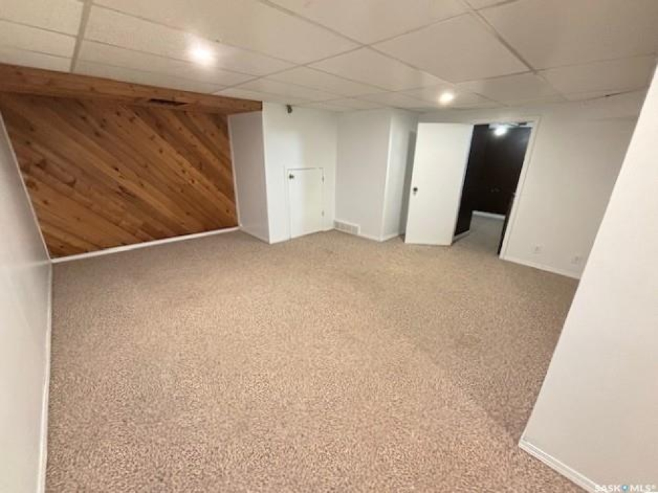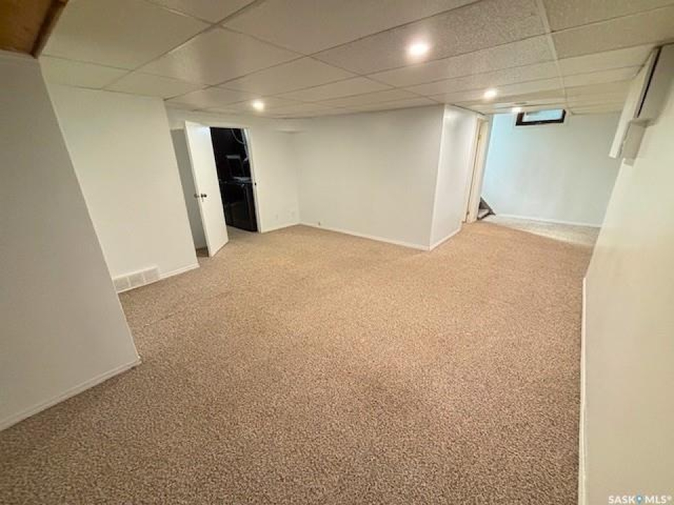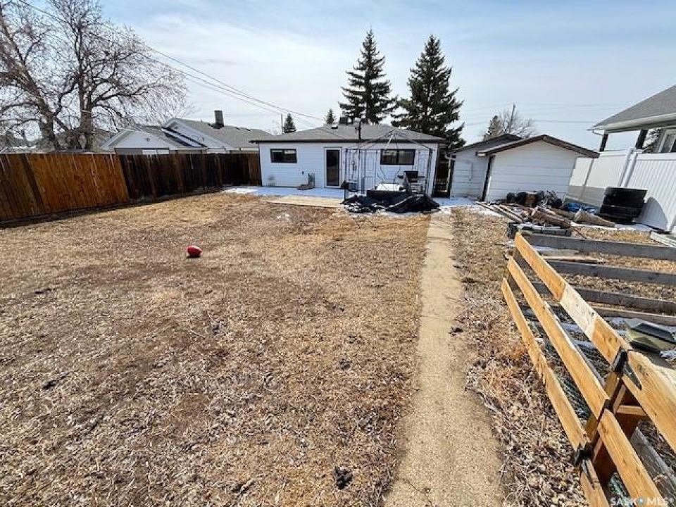 Welcome to this charming 840 sq ft bungalow located in the desirable North West Palliser area of Moose Jaw, close to schools and parks—perfect for first-time home buyers or those looking to downsize. The main floor features a bright, open-concept layout with a beautifully renovated kitchen (2022), complete with darker-toned cabinetry, updated sink, dishwasher, ample counter space, and a functional breakfast bar/island—ideal for everyday living and entertaining. Laminate flooring runs throughout the kitchen, dining area, and bedrooms, while a large south-facing picture window fills the space with natural light. The main level also includes a full 4-piece bathroom and two ample sized bedrooms. The fully developed lower level offers additional living space with a comfortable family room, a versatile den perfect for a home office or playroom, and a utility/laundry area. Outside, enjoy the fully landscaped yard featuring a wood deck, a designated garden area, and a storage shed. A long single detached garage provides excellent parking, storage, or workshop potential. Immediate possession is available—don't miss this opportunity to own a well-updated home in a great location!
