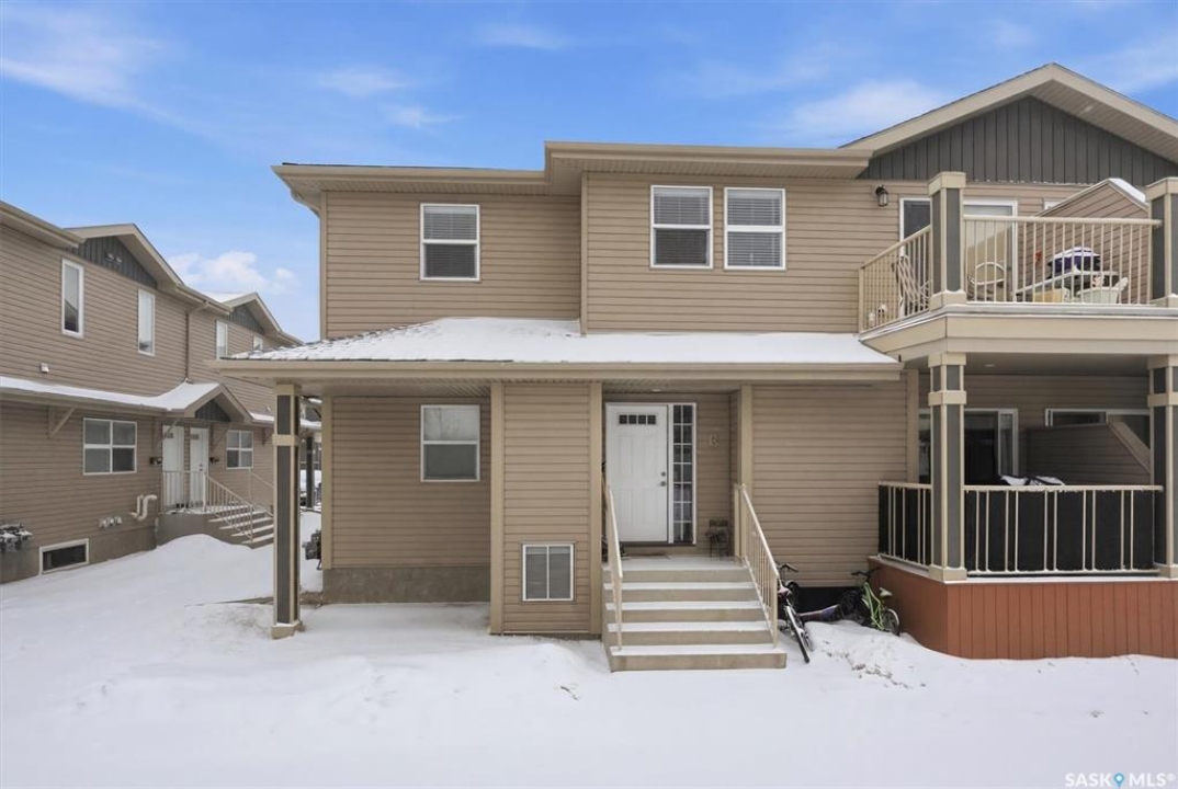 Welcome to Chaparral Ridge! This 2-bedroom, 1-bathroom townhouse is located in Chaparral Ridge on the Southern edge of Martensville. This home offers a perfect blend of style and comfort. The spacious kitchen is a chef's dream, featuring a corner pantry, ample cupboards, and sleek stainless steel appliances. Start your day with a coffee and sunrise on your East-facing balcony. Inside, you'll find two generously sized bedrooms and a modern bathroom. Convenience is key with two electrified parking stalls, central air, additional storage space, and low condo fees. Don't miss this opportunity to make this your new home!