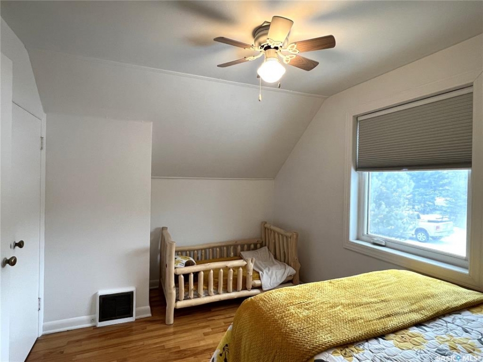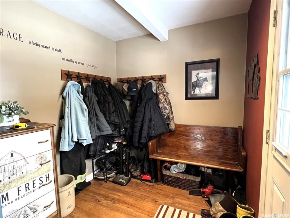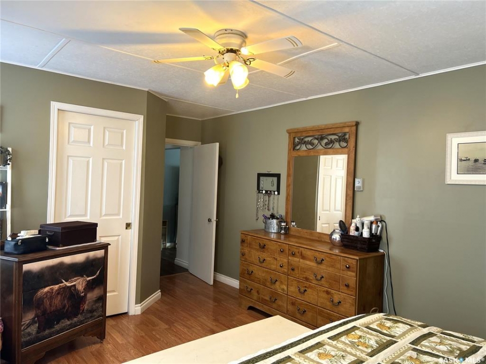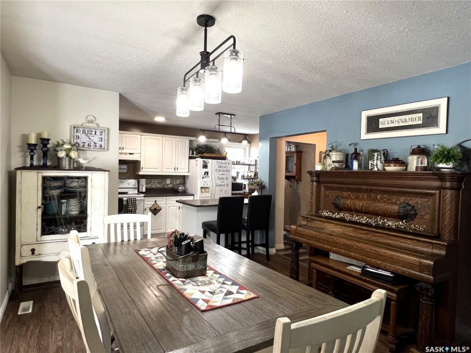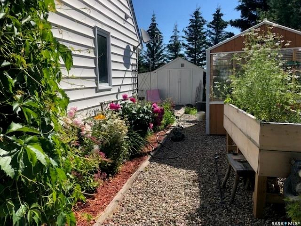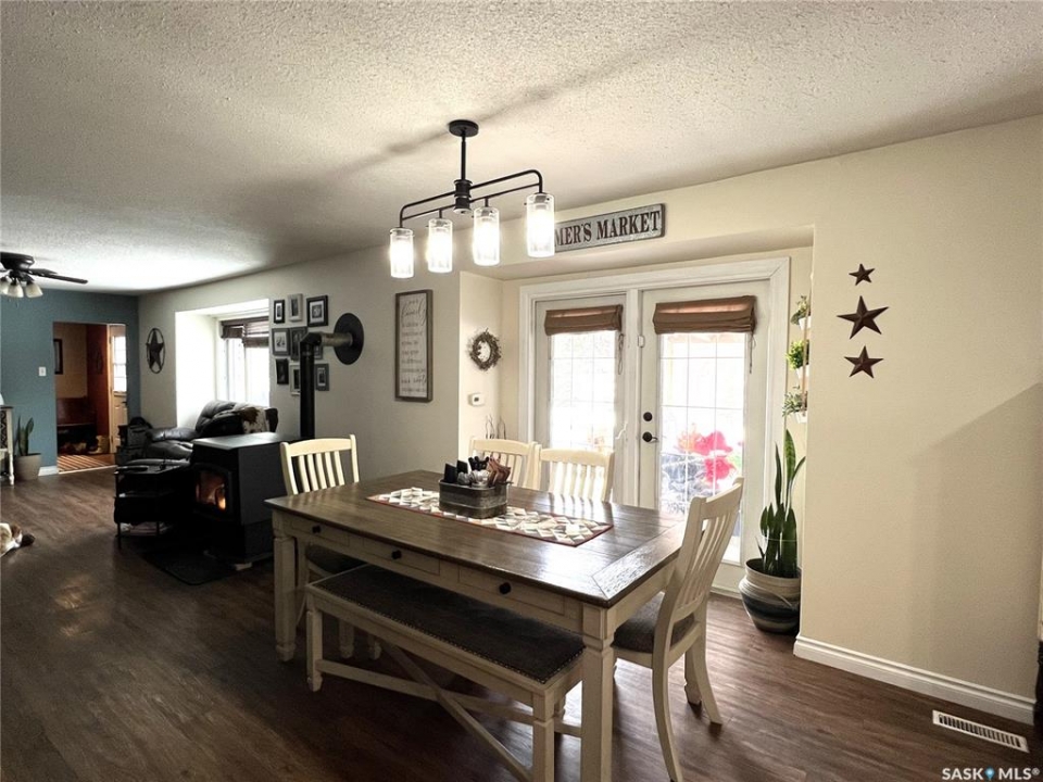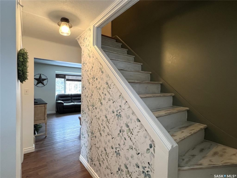 Pride in ownership really shows in this property. This beautiful 5 bedroom home is located in the quiet community of Dorintosh, 5 minutes from the Meadow Lake Provincial Park, giving you access to beautiful lakes, fishing, hiking, quading, swimming, boating, cross country skiing, snowmobiling and mini golf. Main level features kitchen, dining room with access to covered deck, living room with new pellet stove in 2024, primary bedroom with walk in closet, 2 bathrooms and main floor laundry. 2nd level consists of 4 nice sized bedrooms with original hardwood flooring. House was moved onto a 4ft crawl space in 2009 and totally updated at that time. Energy efficiency program was done in 2009 which included new insulation and new Hi-eff furnace. All new windows except primary bedroom and one bathroom. New shingles in 2019, washer & dryer 2024 and 3pc bathroom was updated in 2023. New flooring & light fixtures in kitchen and some fresh paint throughout. Yard is beautifully landscaped with garden area, raised beds, perennial flowers, raspberries, 2 apple trees, asparagus & rhubarb. Outbuildings include a C-Can shop with attached storage shed, two 8x10 storage sheds and a fenced dog run. The property is comprised of two lots which gives you lots of space for RV parking and lake toys! This property is a must see!!