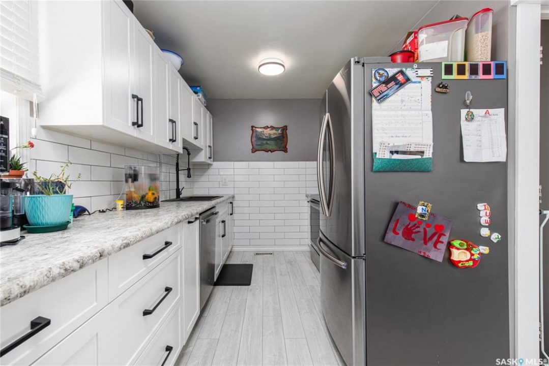 Step inside this adorable home! Bright and welcoming living room, where new whitewashed flooring flows seamlessly into a beautifully renovated custom kitchen by Kopp Cabinets designed for everyday living. Down the hall, you'll find three comfortable bedrooms along with an updated 4-piece bathroom, offering a functional layout for families of all sizes. The fully finished basement (completed in 2021) adds even more living space, featuring a cozy family room perfect for movie nights or a play area for the kids. There's also a versatile nook currently set up as a bar and office space, giving you flexibility to suit your lifestyle. A large fourth bedroom, 3-piece bathroom, and dedicated laundry room complete the lower level. Outside, enjoy a fully fenced yard with a newer composite deck and fire pit area ideal for relaxing or entertaining. With plenty of parking and major mechanical updates already taken care of (furnace, air conditioning), this home offers peace of mind and convenience. All that's left to do is move in and make it your own.