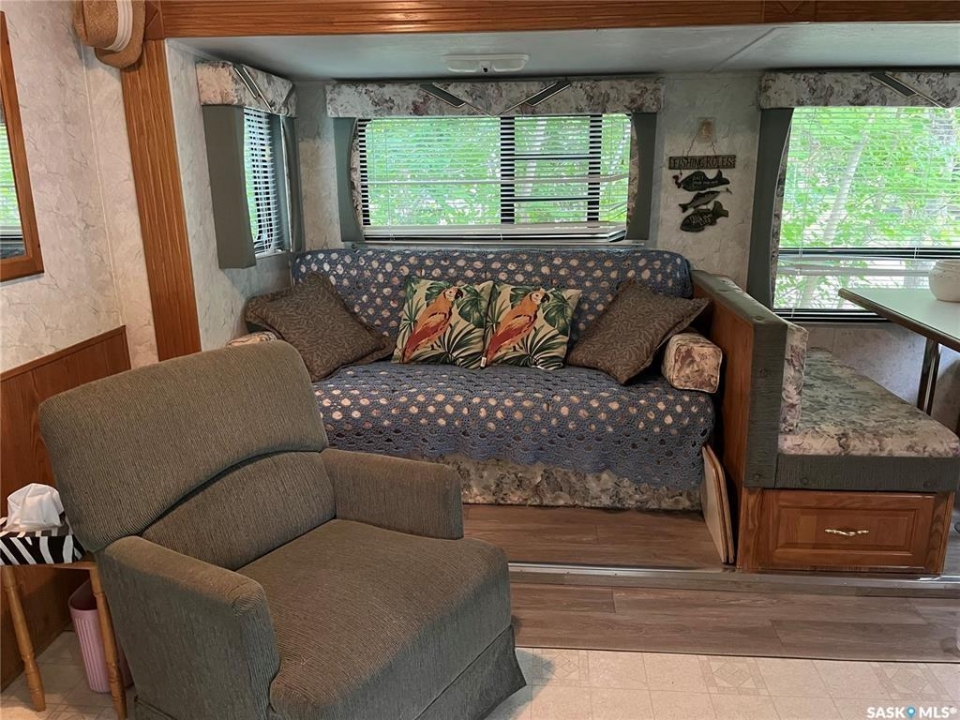 Just a hour outside of Saskatoon is this RV located at Poplar Beach RV Park, 6 km north of Wakaw. Site 91 includes a 1999 Sierra travel trailer RV. This RV has a great location with the park just located out of your front steps! It has a covered deck area, some fencing, storage shed, fire pit area, BBQ area, a large private lot and lots of parking out front. This peaceful community offers many amenities to its members including: beach, playgrounds, common gathering area, security gate, washrooms and showers. Poplar Beach RV is open from April 1st to October 31st. Poplar Beach has a boat launch, marina and boat storage yard. Membership/site fees are $1159.00 annually.