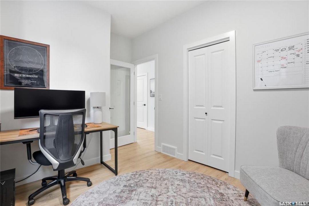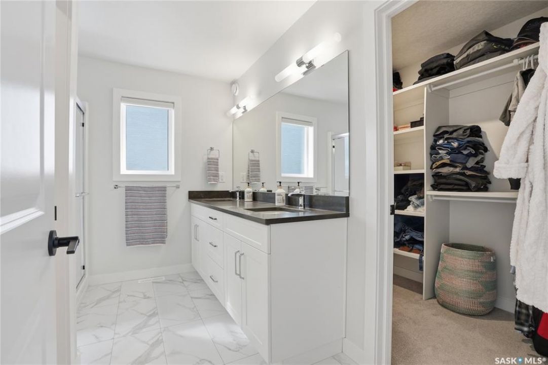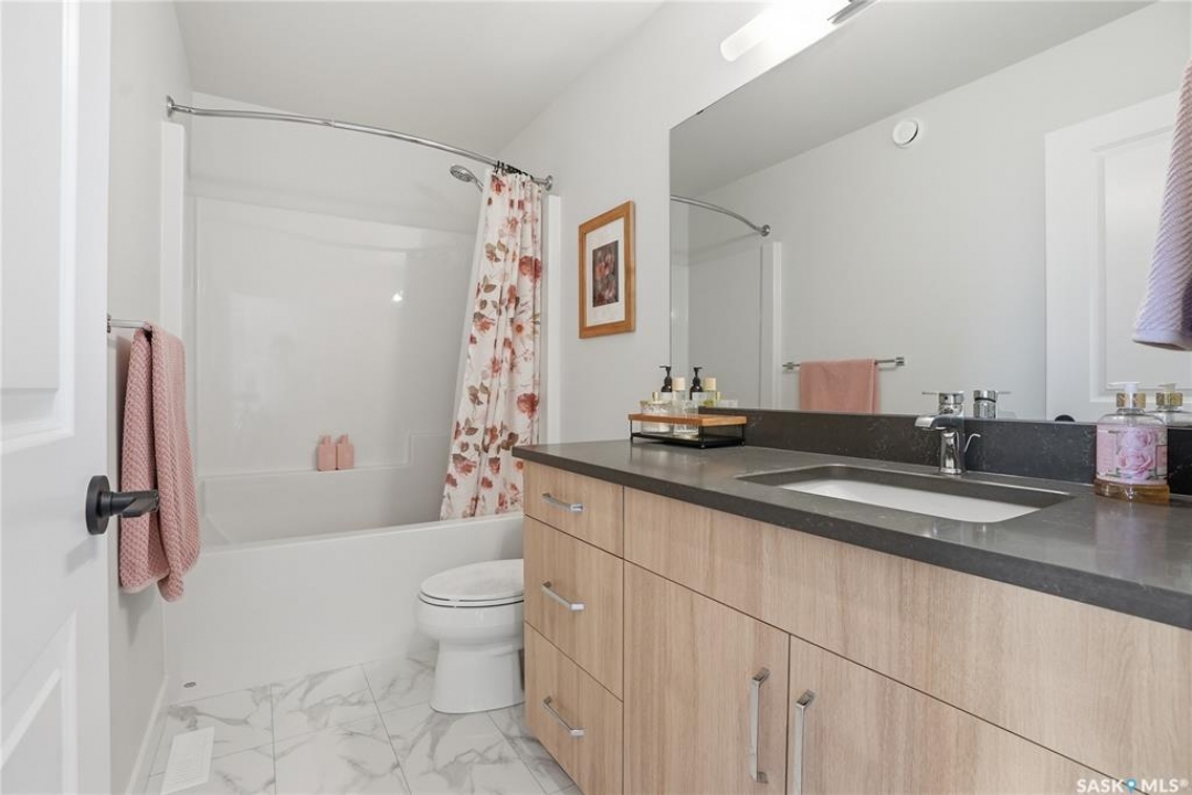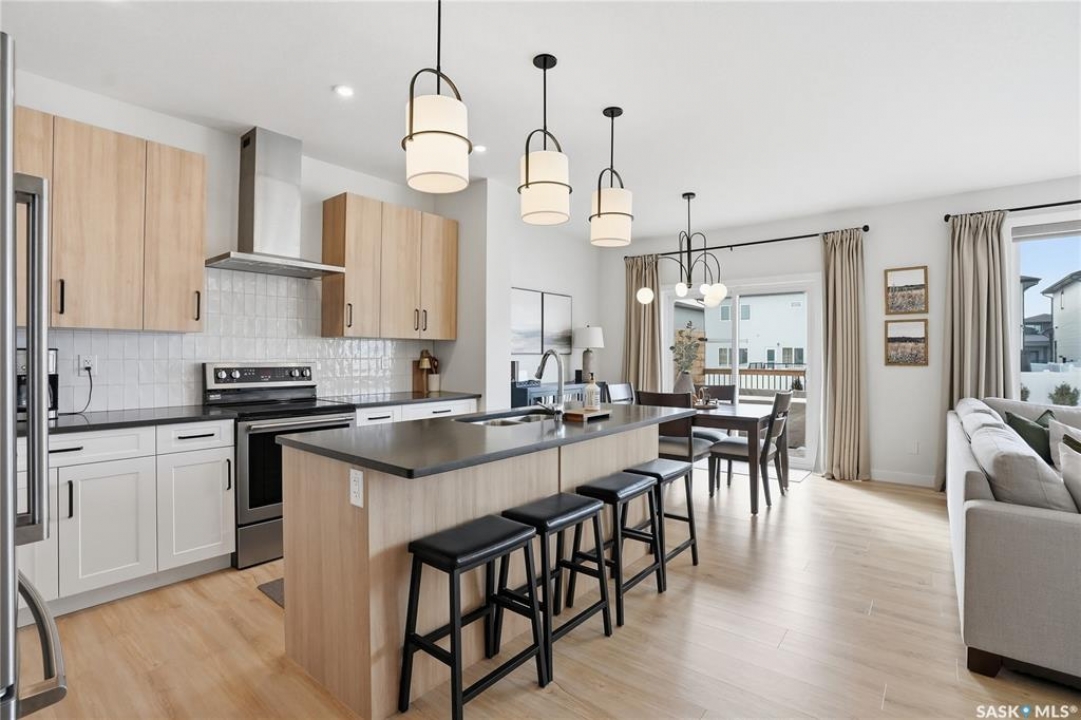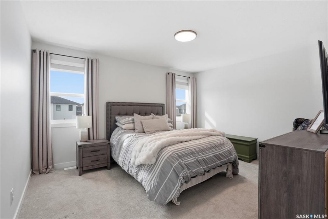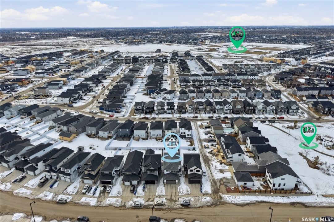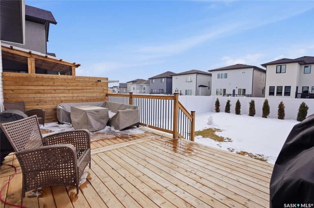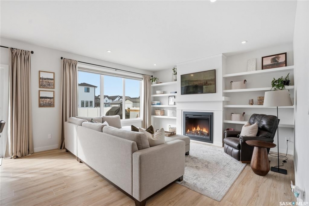 Located in the vibrant community of Brighton, this beautifully designed two-storey offers over 2,100 sq ft of thoughtfully planned living space. Blending style and function, this move-in ready home is perfectly suited for modern family living. The main floor is bright and inviting, featuring 9 ft ceilings and an open-concept layout ideal for everyday life and entertaining. A cozy gas fireplace anchors the living space, while a main-floor office adds flexibility for working from home or study space. The kitchen stands out with its two-tone cabinetry, quartz countertops, pantry, and direct-vent exhaust. Large windows bring in plenty of natural light, enhancing the home's warm and welcoming feel. Upstairs, you'll find 4 bedrooms, a spacious bonus room, 2 full bathrooms, and convenient second-floor laundry, offering both comfort and practicality for busy households. Additional highlights include a double attached garage and a fully finished exterior with a large treated deck and vinyl fencing, creating a great outdoor space for relaxing or entertaining. Ideally located with easy access in and out of the neighbourhood and close to amenities, this is a fantastic opportunity to own a well-appointed home in one of Saskatoon's most sought-after communities.