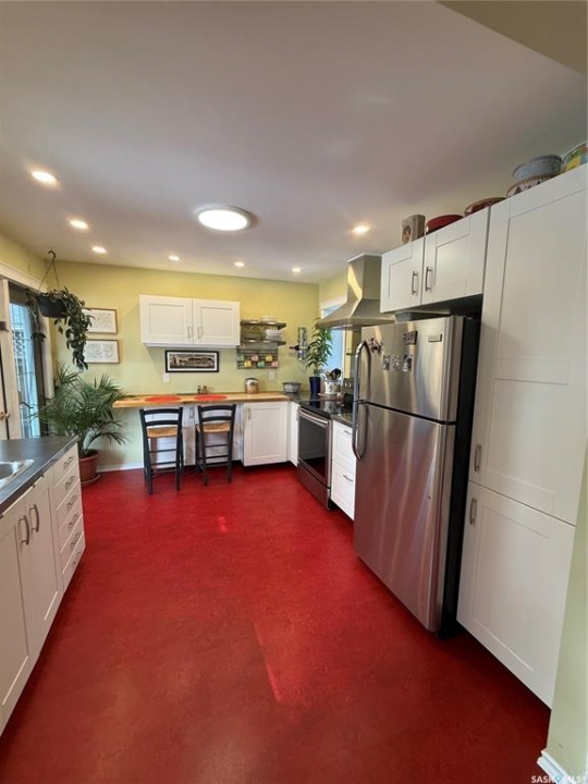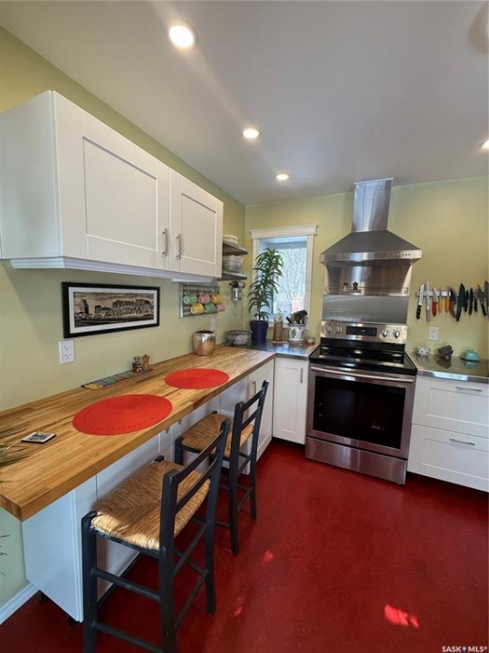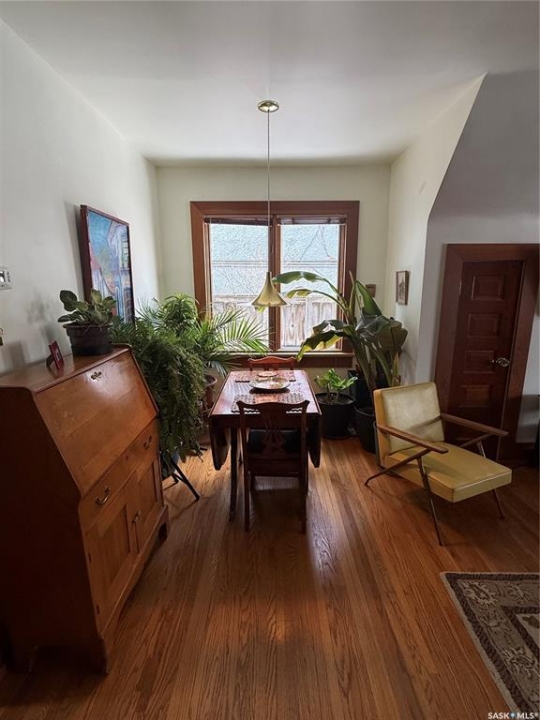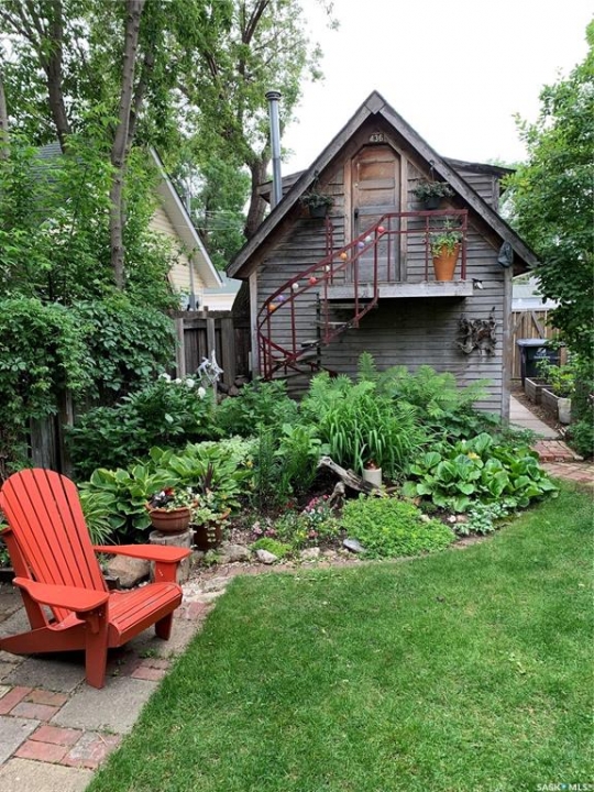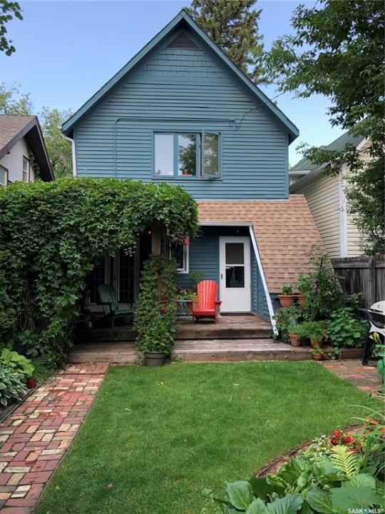 Charming character home in one of Saskatoon's most sought-after neighbourhoods — welcome to Buena Vista. From the moment you arrive, the enclosed front veranda draws you in, offering a cozy spot to relax beneath a canopy of beautiful mature trees on one of the area's most beloved streets. Step inside to a warm and inviting living room featuring built-in bookshelves and a charming mantle area that captures everything you love about character home living. The fully renovated kitchen (2018) comes with updated appliances — F/S, Dishwasher — stainless steel countertops flanking the stove, a stainless steel backsplash above, and a stunning stainless steel hood fan that anchors the space. A breakfast bar adds a casual dining option, garden doors off the kitchen lead you directly to the back deck — where a capped gas line is ready for barbecue hookup — and a convenient pantry keeps everything within easy reach. Upstairs, you'll find both bedrooms along with a generous den area nestled between them — a flexible space perfect for a home office, reading nook, or hobby room. Both bedrooms feature engineered hardwood flooring, and the den carries warm wood flooring throughout. The primary bedroom features a 2-piece ensuite, while the beautifully appointed 4-piece bath — fully renovated in 2019. The home has been well maintained with new shingles (2020), a new water heater (2025), and a new washer and dryer (2024) — all included. Step out back to a backyard that truly delivers — a covered deck attached to the home, lush grass kept effortlessly green by underground sprinklers (rear yard), and an abundance of established perennials that put on a show every season. The 12' × 20' single detached garage is topped with a finished, insulated three-season loft — ideal as an art studio, home office, or creative retreat. The AlarmTech security system is paid out and stays with the home.Preferred Possession available June 1st /26. A rare find in Buena Vista. Listed at $448,900 mls