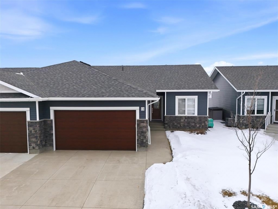 Welcome to 13-315 Olson Lane, a beautifully maintained south-facing bungalow townhouse backing directly onto the park in the sought-after gated community of Rosewood Gardens. Custom-built by Boychuk Homes in 2020, this home shows like new and stands out with an impressive list of high-quality upgrades throughout. The main floor offers a bright, open-concept layout, enhanced by durable luxury vinyl tile flooring and an abundance of natural light from triple-pane windows. The kitchen is a true highlight, featuring a custom oak cabinetry package from Superior Cabinets, with extensive drawer storage, a large island, pantry, and clean white appliances—designed for both everyday living and entertaining. You'll immediately notice the attention to detail, with solid oak trim and baseboards throughout—no MDF here. This home features two spacious bedrooms and two bathrooms on the main level, including a generous primary suite complete with a walk-in closet and a well-appointed 3-piece ensuite. A convenient main floor laundry room adds to the functional layout and offers extra main-floor storage. Additional upgrades include a premium lighting package from Richardson Lighting, fresh paint, R60 attic insulation, dual sump pumps with battery backup, Hunter Douglas Blinds, RI for Central Vac and a fully owned alarm system with smoke, fire, temperature, and water monitoring for peace of mind. The basement is well on its way to completion, with exterior walls already insulated, boarded, wired and bathroom rough in—ready for your finishing touches. The double attached garage is fully insulated and boarded, and includes hot and cold water lines, plus a frosted glass window for added natural light. Step outside to enjoy the composite rear deck with aluminum railing, perfectly positioned to take in the peaceful park views. This is a rare opportunity to own a thoughtfully upgraded, move-in ready home in a quiet and secure community.