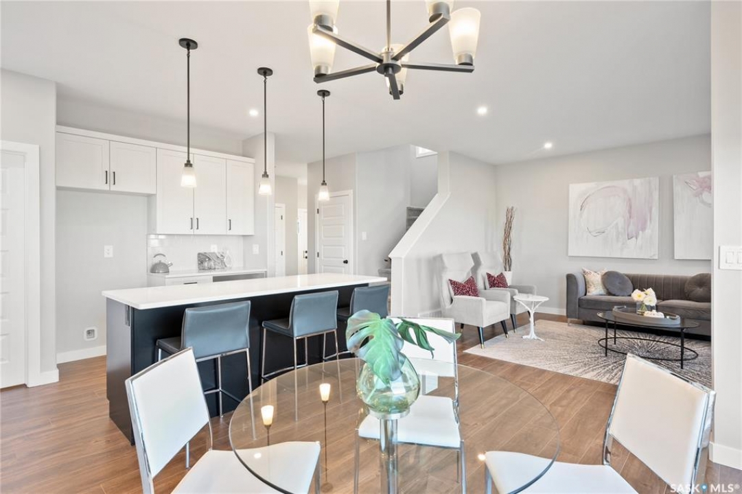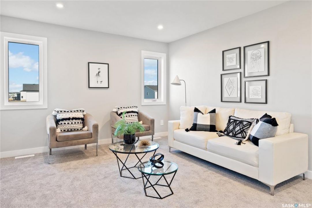Welcome to the Zennenberg, a thoughtfully designed 2-storey home located in the growing community of Pilot Butte. Built by Ehrenburg Homes, this property offers 2,020 sq ft of functional living space with modern finishes and a family-friendly layout. The main floor features an open-concept design with a bright living room, spacious dining area, and a well-appointed kitchen complete with island and ample cabinetry — ideal for both everyday living and entertaining. A convenient mudroom and 2-piece bathroom add to the home's practicality. Upstairs, you'll find a generous primary bedroom with a 5-piece ensuite, along with two additional bedrooms, a full 4-piece bathroom, a bonus room, and second-floor laundry for added convenience. The basement is undeveloped, offering excellent potential for future development. Situated on a 6,085 sq ft lot, this home features a deck, triple attached garage, and ample parking. Located just minutes from Regina, Pilot Butte offers a quiet, family-oriented lifestyle with easy access to city amenities. Don't miss your opportunity to own a brand-new home offering comfort, functionality, and value in a desirable community! (PST/GST are included within purchase price). Note: Interior photos are from a previous build. Same model but some colours may vary.