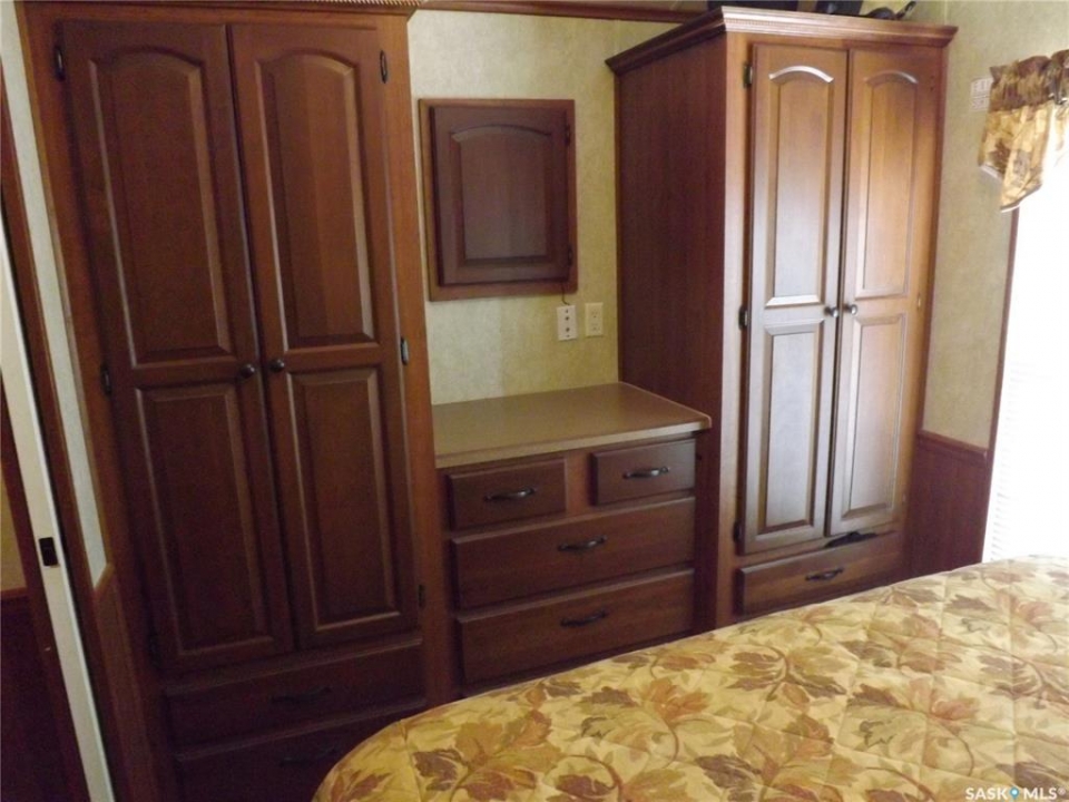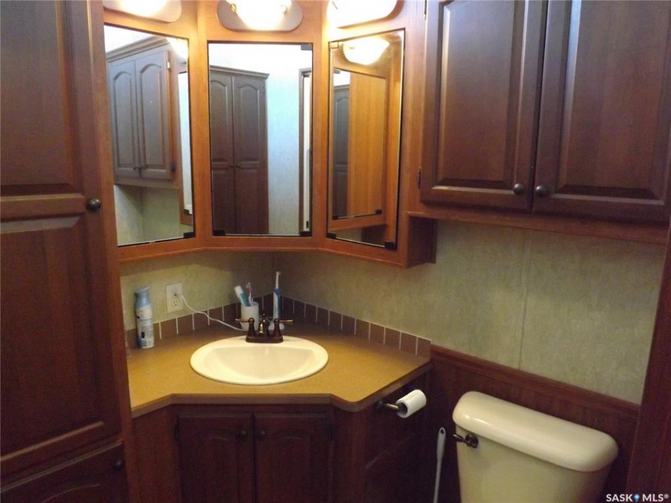 If living at the Lake all year round with walking distance to golf coarse, marina and camp ground is for you... here it is! This cozy cabin has a good size kitchen with lots of cupboard space and large eating island. Living room has a built in entertainment center and built in wall divider for privacy when family or friends want to stay over night. Master bedroom is a good size with built in cupboards and closets. Bathroom also has a lot of cupboards and storage space. This cabin also features a large attached closed in deck with radiant heat which is excellent for entertaining all year round. Very large lot with room for your RV, camper, boat and any other toys you might have.... also a plug in outlet for your camper. Large attached heated storage shed for water system and plenty of room for all of your boating and fishing equipment and golf clubs. Central Air. If moving to the Lake is your Dream.... Lets make it a reality for you!