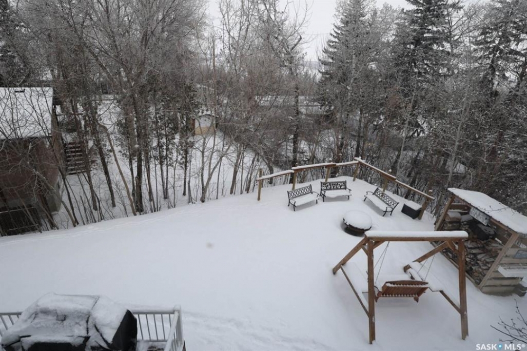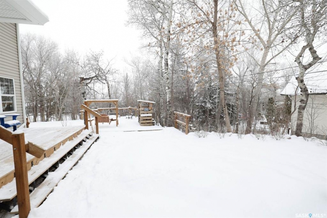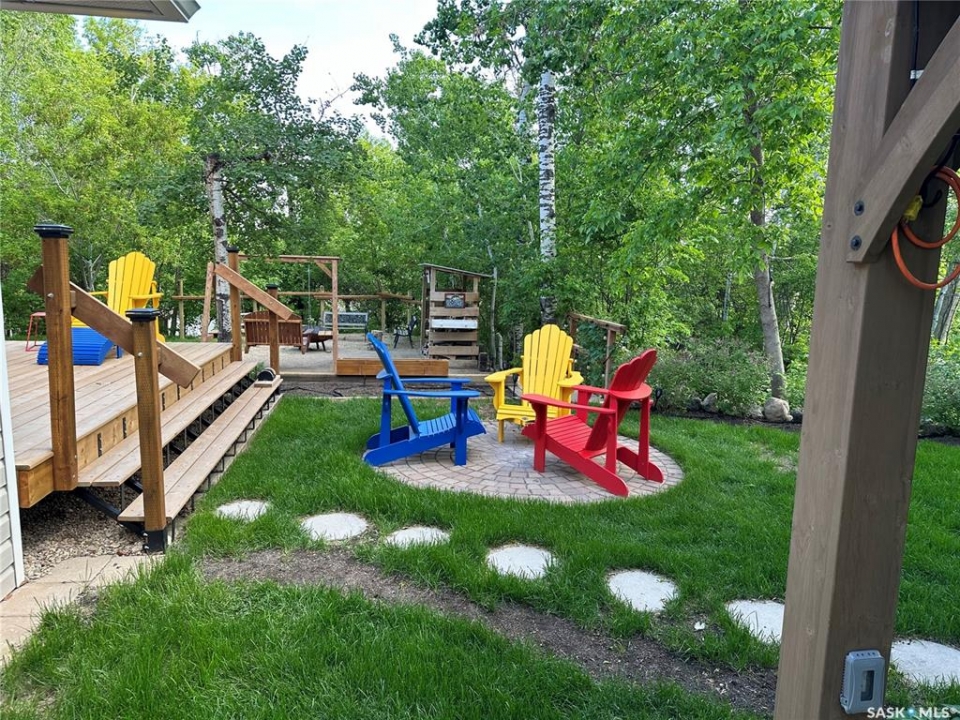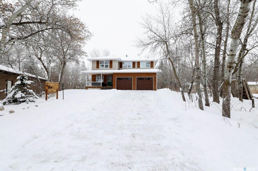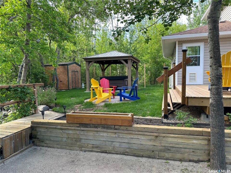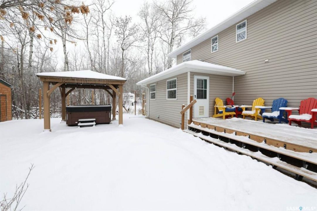 Welcome to this exceptionally well-maintained, custom-built two-storey home in the sought-after resort community of Regina Beach. Built in 2001 and perfectly situated on a quiet crescent, this home offers the ideal blend of comfort, style, and convenience—just a short walk to schools and local amenities. Designed with an open-concept layout, the main floor seamlessly connects the living, dining, and kitchen areas, creating a bright and welcoming space perfect for both everyday living and entertaining. A main floor guest bedroom and full 4-piece bathroom provide added convenience, while the spacious rear entry offers easy access for family and guests alike. Upstairs, you'll find a generous family room complete with a cozy gas fireplace, two well-sized bedrooms, and an impressive primary suite featuring a walk-in closet and private ensuite. A large second-floor laundry room adds to the home's thoughtful and functional design. Step outside to a meticulously maintained yard, beautifully landscaped with lush grass and vibrant flowers. Enjoy summer evenings around the firepit, relax in the hot tub area, or unwind on the covered front porch. Multiple sitting areas create the perfect setting for outdoor living and entertaining. This unique four-season property offers scenic surroundings, a private yard, and flexible living spaces—making it an ideal year-round residence or the perfect weekend retreat.