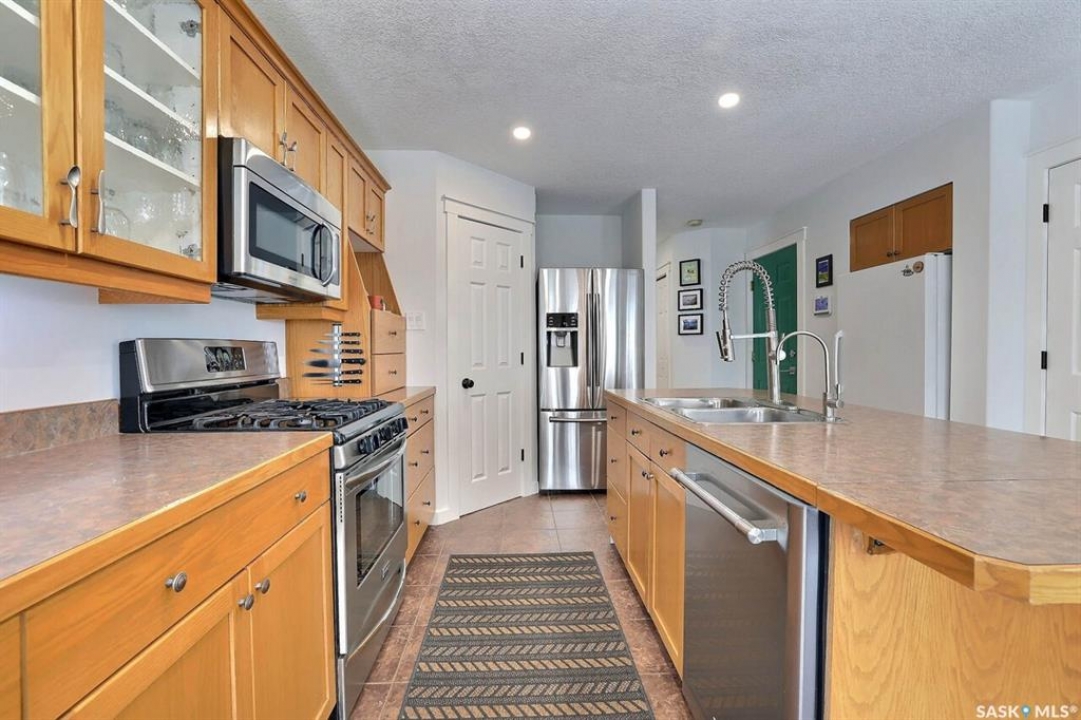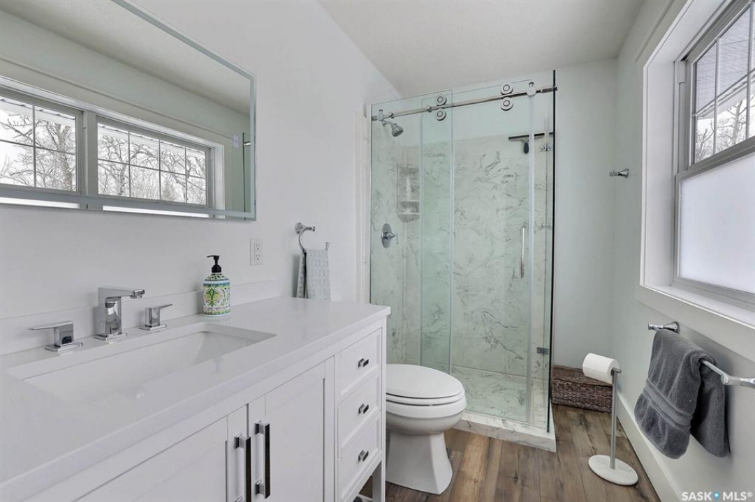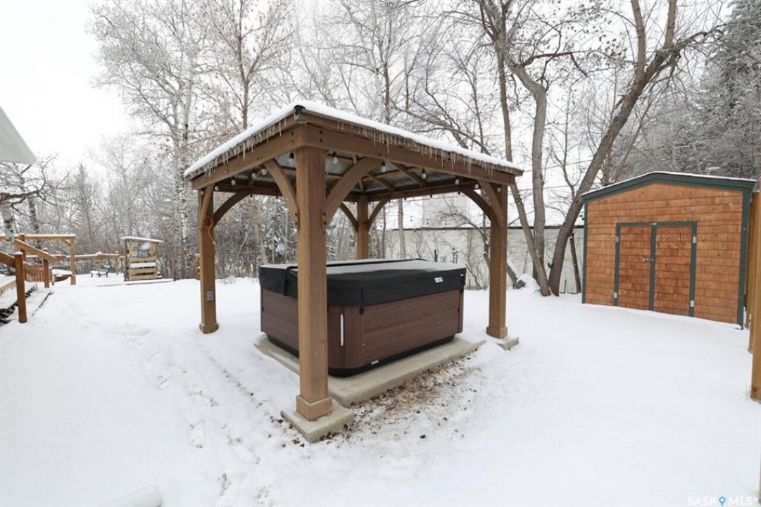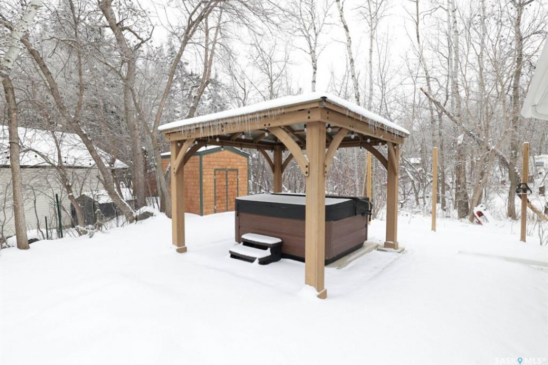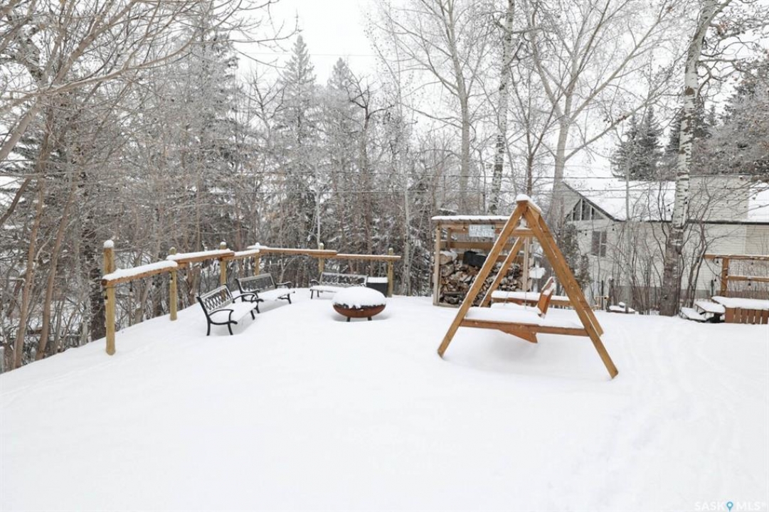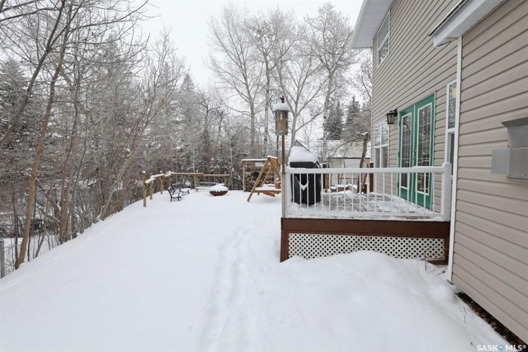 Welcome to this exceptionally well-maintained, custom-built two-storey home in the sought-after resort community of Regina Beach. Built in 2001 and perfectly situated on a quiet crescent, this home offers the ideal blend of comfort, style, and convenience—just a short walk to schools and local amenities. Designed with an open-concept layout, the main floor seamlessly connects the living, dining, and kitchen areas, creating a bright and welcoming space perfect for both everyday living and entertaining. A main floor guest bedroom and full 4-piece bathroom provide added convenience, while the spacious rear entry offers easy access for family and guests alike. Upstairs, you'll find a generous family room complete with a cozy gas fireplace, two well-sized bedrooms, and an impressive primary suite featuring a walk-in closet and private ensuite. A large second-floor laundry room adds to the home's thoughtful and functional design. Step outside to a meticulously maintained yard, beautifully landscaped with lush grass and vibrant flowers. Enjoy summer evenings around the firepit, relax in the hot tub area, or unwind on the covered front porch. Multiple sitting areas create the perfect setting for outdoor living and entertaining. This unique four-season property offers scenic surroundings, a private yard, and flexible living spaces—making it an ideal year-round residence or the perfect weekend retreat.