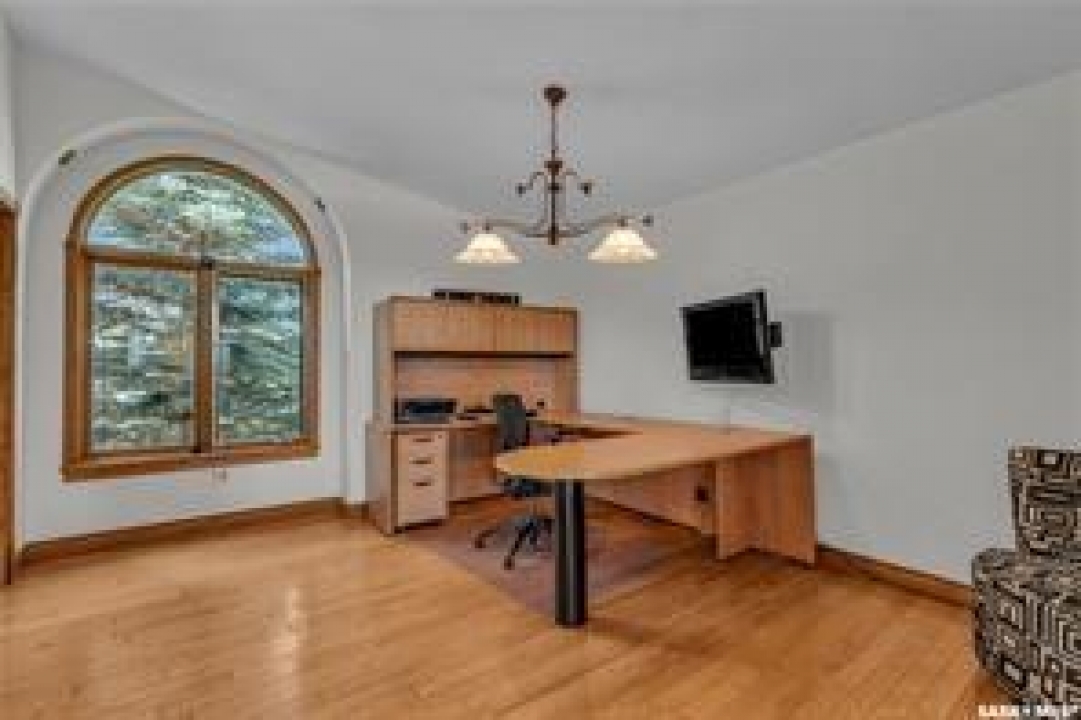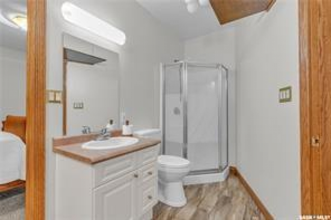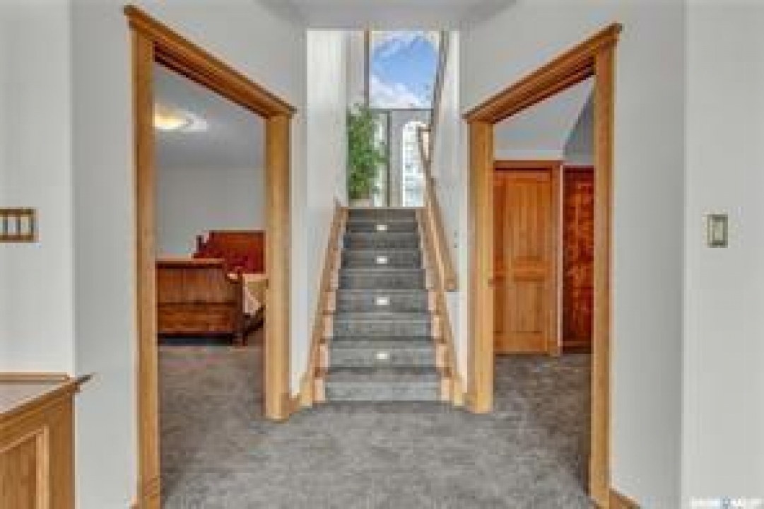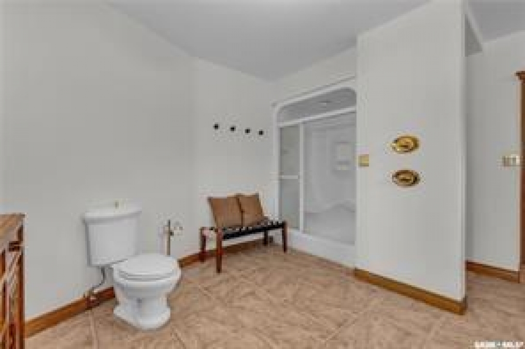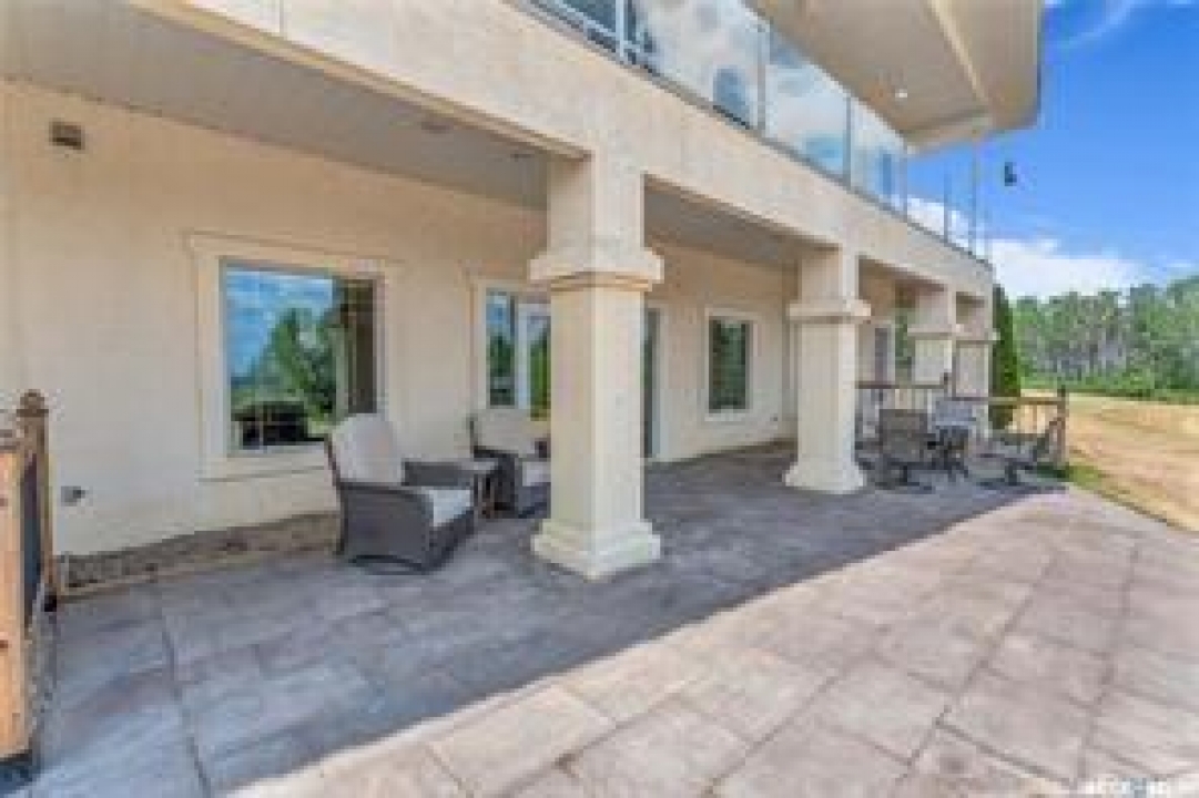 Welcome to your own private equestrian retreat! This breathtaking 79-acre property, a stone's throw from the Battlefords, offers the perfect blend of luxury, comfort, & functionality. Whether you're a horse enthusiast or simply seeking tranquility in nature, this pristine acreage promises the ultimate lifestyle. When you arrive, you're greeted by a grand courtyard entrance, setting a tone of elegance. The open floor plan boasts abundant natural light, between living areas, making this home perfect for entertaining. A stunning three-sided fireplace is the centerpiece of the living space, providing warmth & ambiance on chilly evenings. This spacious four-bedroom, three-and-a-half-bathroom home is designed with both beauty and convenience in mind. The wet bar is perfect for hosting friends & family, while the large entertainment areas, inside & out, offer plenty of room for gatherings. The lower level has a feature wall including a 75-inch Samsung frame TV with non-reflective screen that displays wall art when not in use, surround sound speakers are located on the wall & outside on the deck. The walkout basement extends your living space into the serene outdoors, where a beautiful pond and gazebo await, creating a backdrop for relaxation & peaceful reflection. The property is also a dream for horse lovers, with an impressive barn, stables, riding arena—everything you need to keep your horses in top shape & enjoy the equestrian lifestyle to the fullest. The tranquil surroundings, including the lush fields & serene pond area, create the ideal setting for both you & your animals. This is more than just an acreage—it's a lifestyle. Whether you're riding, relaxing by the pond, or entertaining guests in your beautiful home, you'll experience the ultimate in country living & all the amenities you need. A 48x 40 heated shop also includes living quarters for a hired hand or a guest space for family & friends. The entry to the property has a large, controlled iron gate.