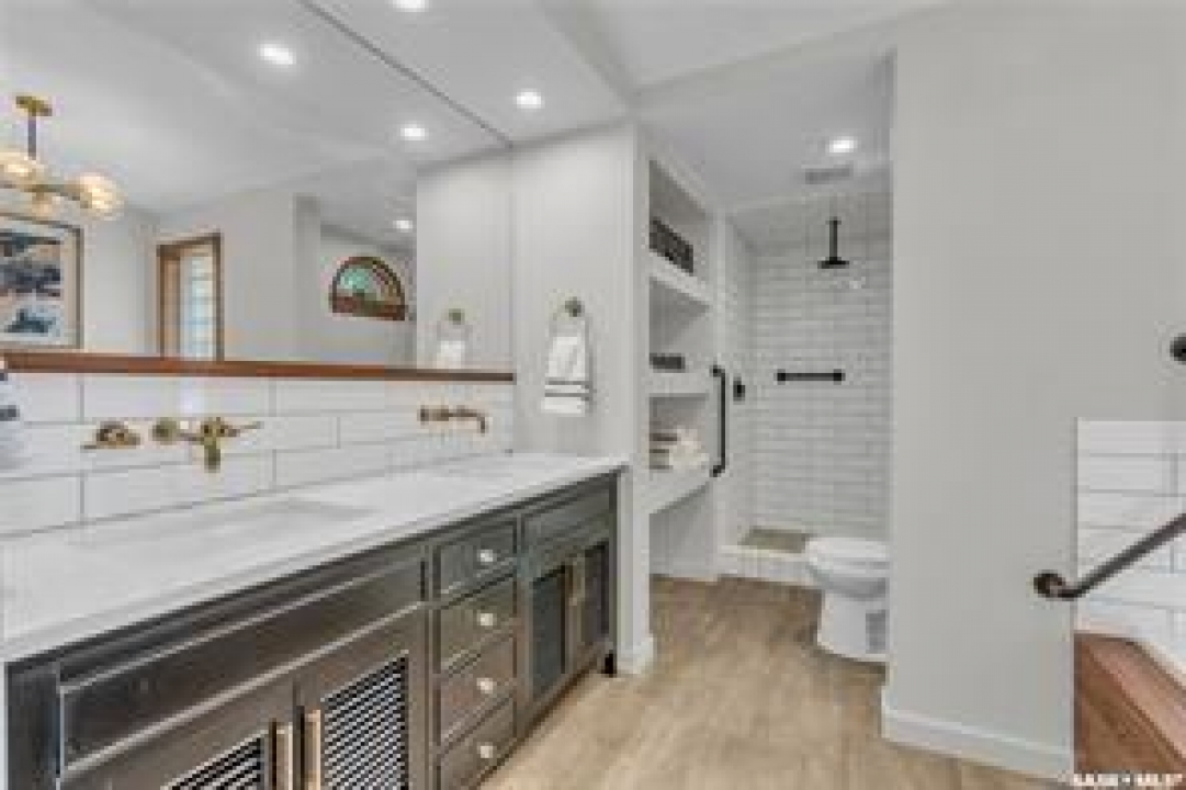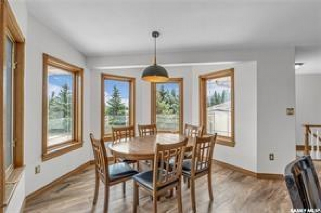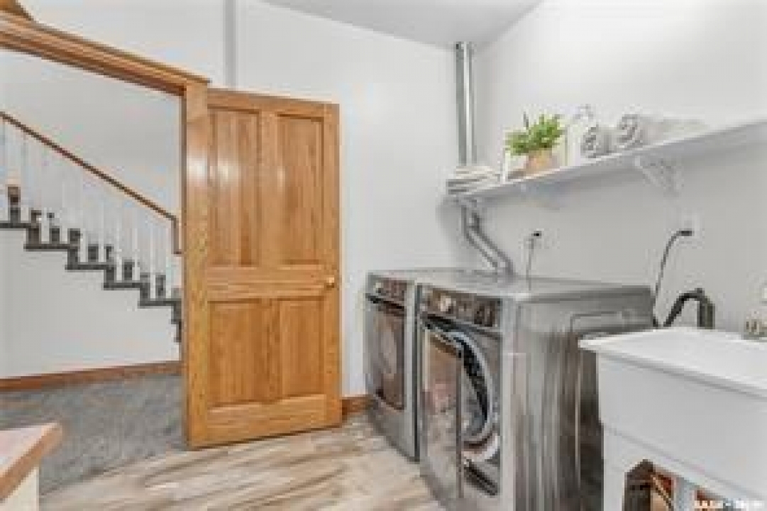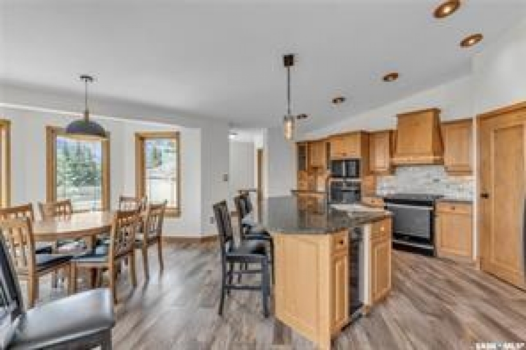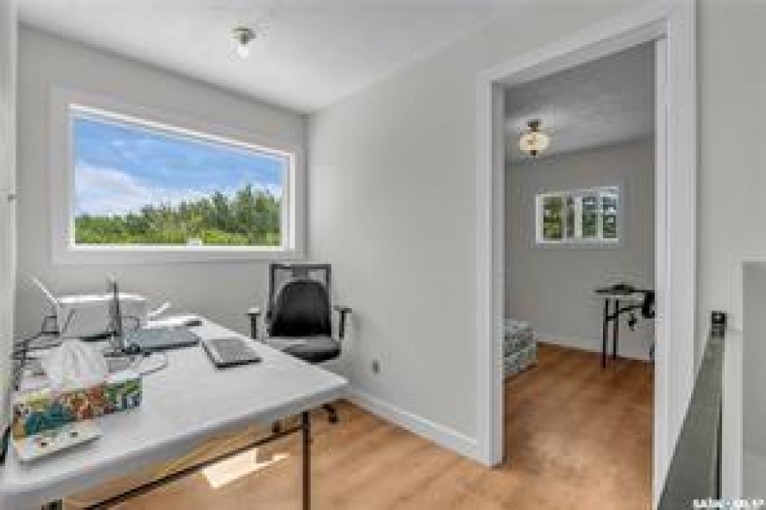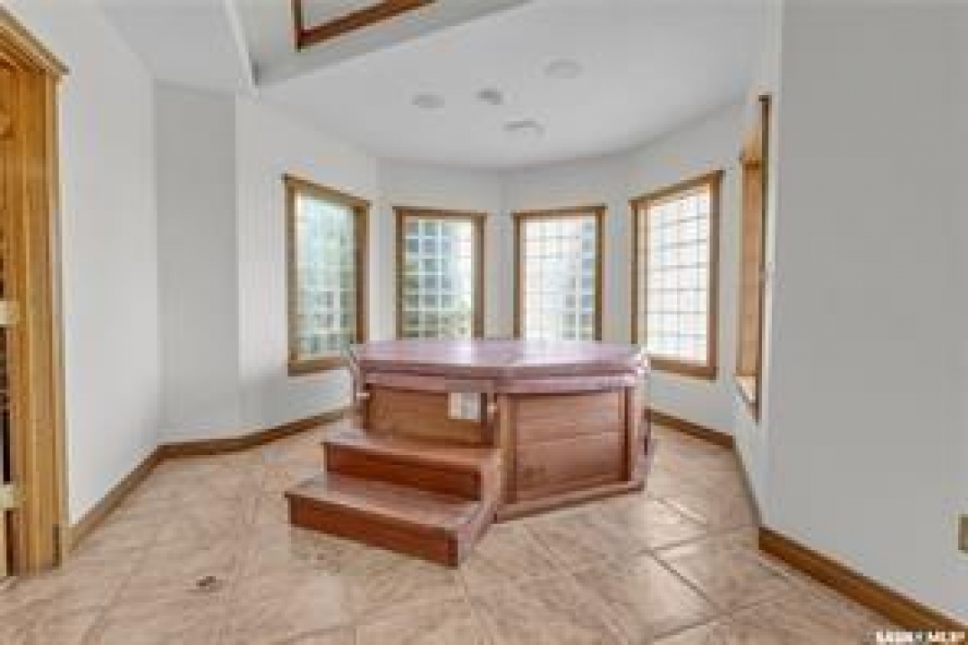 Welcome to your own private equestrian retreat! This breathtaking 79-acre property, a stone's throw from the Battlefords, offers the perfect blend of luxury, comfort, & functionality. Whether you're a horse enthusiast or simply seeking tranquility in nature, this pristine acreage promises the ultimate lifestyle. When you arrive, you're greeted by a grand courtyard entrance, setting a tone of elegance. The open floor plan boasts abundant natural light, between living areas, making this home perfect for entertaining. A stunning three-sided fireplace is the centerpiece of the living space, providing warmth & ambiance on chilly evenings. This spacious four-bedroom, three-and-a-half-bathroom home is designed with both beauty and convenience in mind. The wet bar is perfect for hosting friends & family, while the large entertainment areas, inside & out, offer plenty of room for gatherings. The lower level has a feature wall including a 75-inch Samsung frame TV with non-reflective screen that displays wall art when not in use, surround sound speakers are located on the wall & outside on the deck. The walkout basement extends your living space into the serene outdoors, where a beautiful pond and gazebo await, creating a backdrop for relaxation & peaceful reflection. The property is also a dream for horse lovers, with an impressive barn, stables, riding arena—everything you need to keep your horses in top shape & enjoy the equestrian lifestyle to the fullest. The tranquil surroundings, including the lush fields & serene pond area, create the ideal setting for both you & your animals. This is more than just an acreage—it's a lifestyle. Whether you're riding, relaxing by the pond, or entertaining guests in your beautiful home, you'll experience the ultimate in country living & all the amenities you need. A 48x 40 heated shop also includes living quarters for a hired hand or a guest space for family & friends. The entry to the property has a large, controlled iron gate.