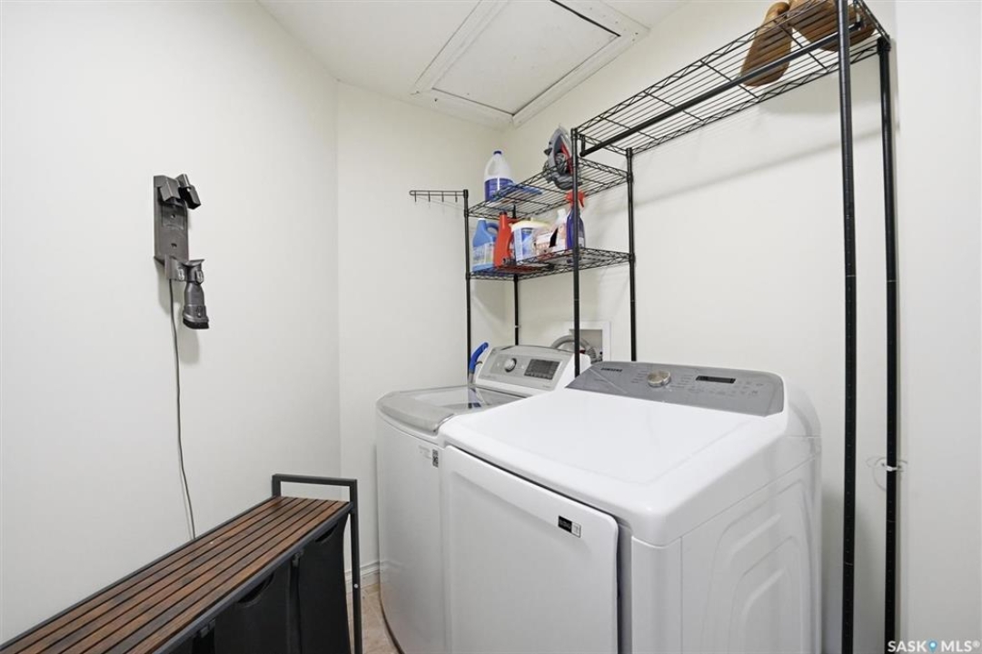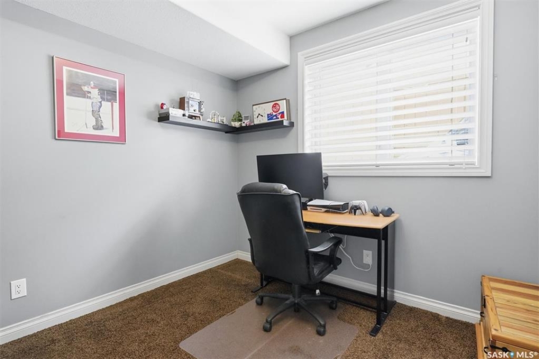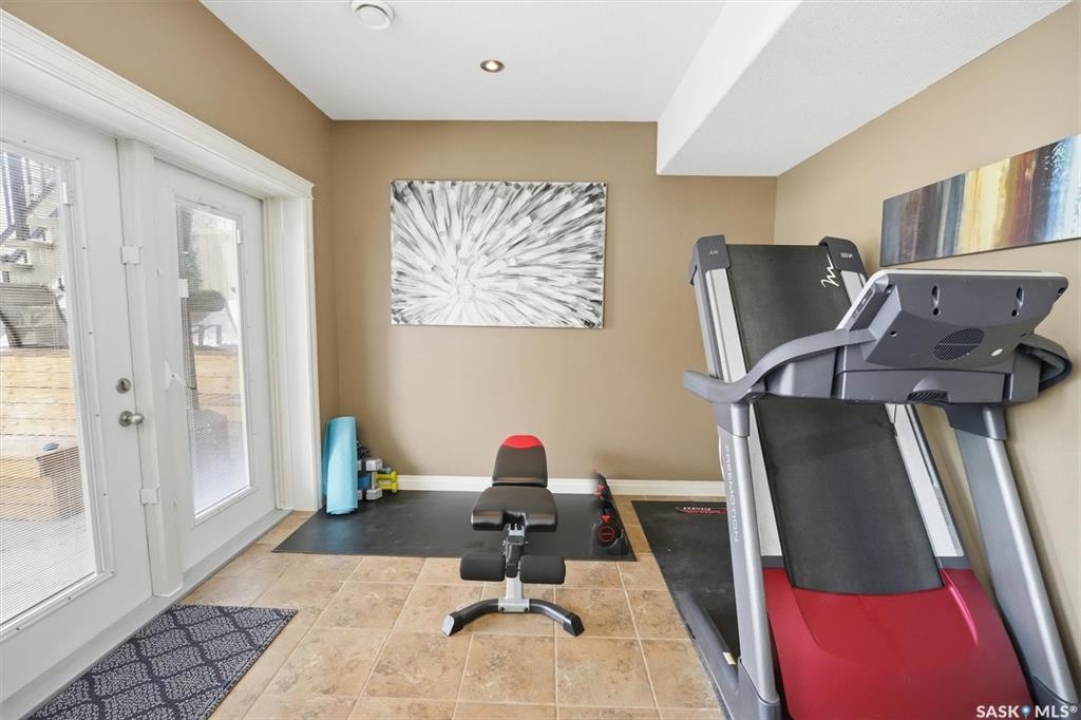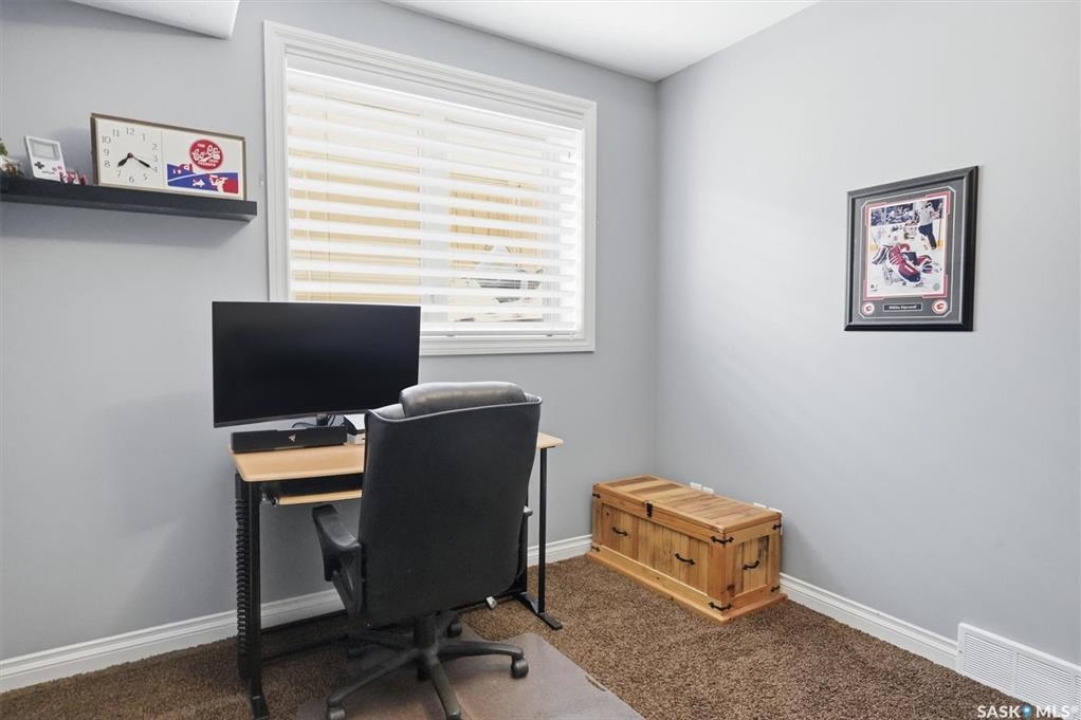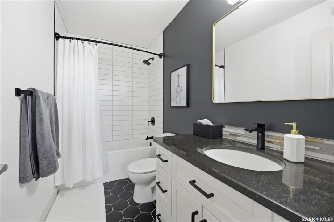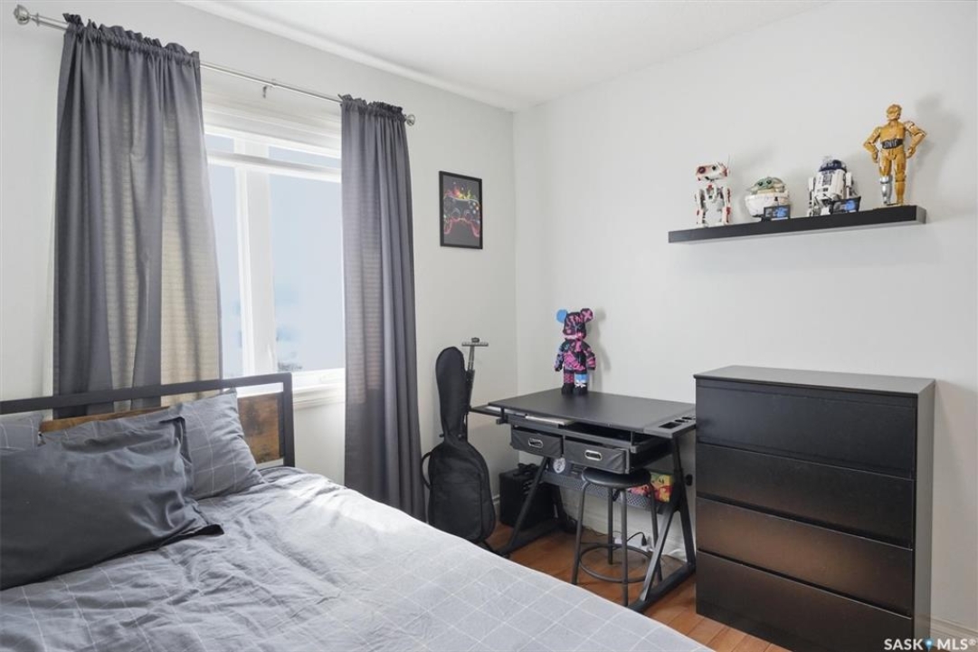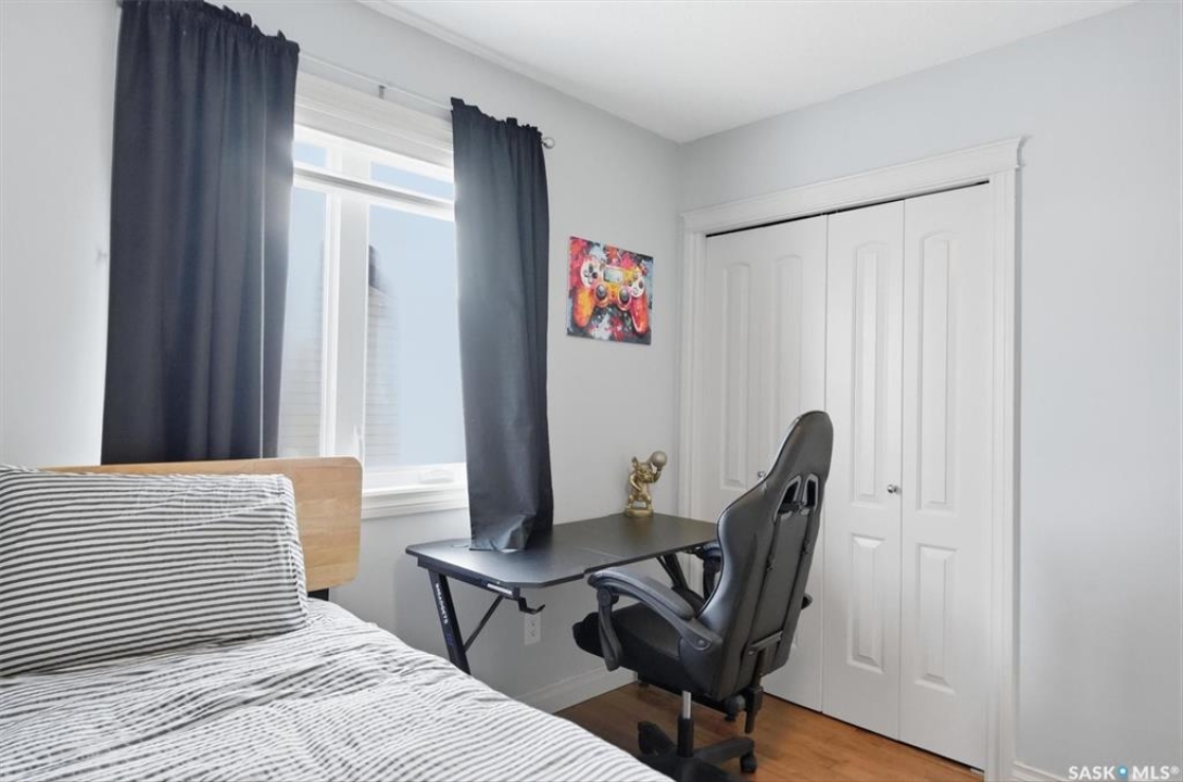 Absolutely stunning home in the vibrant and growing community of Dalmeny, just 12 minutes from Saskatoon. Tucked away on a quiet street, this beautifully designed modified bi-level walkout offers a perfect blend of style, space, and functionality for family living. Boasting five bedrooms plus a den and three full bathrooms, there's room for everyone. The private primary retreat, featuring vaulted ceilings, is thoughtfully positioned above the garage, while two additional bedrooms are conveniently located on the main floor. The bright, open-concept living area is warm and inviting, highlighted by a cozy gas fireplace, rich hardwood flooring, ceramic tile, and a well-appointed kitchen complete with maple cabinetry and sleek black granite countertops. A spacious mudroom off the double attached garage with in-floor heat adds everyday convenience. The fully developed, walk-out basement extends the living space with a bright family room, gym area, two more bedrooms, a den, a full bathroom, plush carpeting, ceramic tile, and the added comfort of in-floor heating. Quality craftsmanship is evident throughout, with features such as triple-pane windows, a tankless water heater, high-efficiency furnace, central air conditioning, central vacuum, and underground sprinklers. Step outside to a beautifully landscaped backyard designed for entertaining, featuring a sunken patio, RV parking, a firepit area, and a deck off the kitchen with a natural gas hookup. Completing the property is a triple driveway and a 16' x 16' detached garage with back alley access. This exceptional home truly has it all.