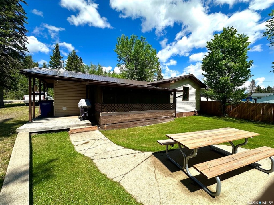 Well-maintained cabin inside and out, located along Pine Street at the Resort Village of Chitek Lake. 4BD, 1BA, attached south facing screened in sunroom with access from master bedroom as well as the living room, giving you additional living space and a great way to spend time outdoors with no bugs, as well as rain or shine. Heated with wood stove, and electric furnace, private 30' well, metal roof in 2017, new toilet and hot water heater in 2020. Detached single garage with cement floor and is wired for 220-power. Manicured back yard, two storage sheds, fire pit area, a short walk to the public beach, 52 septic pump outs included in your property taxes. Cabin comes fully furnished and is ready for you to enjoy the summer. Quick possession is available. Call today for more information.