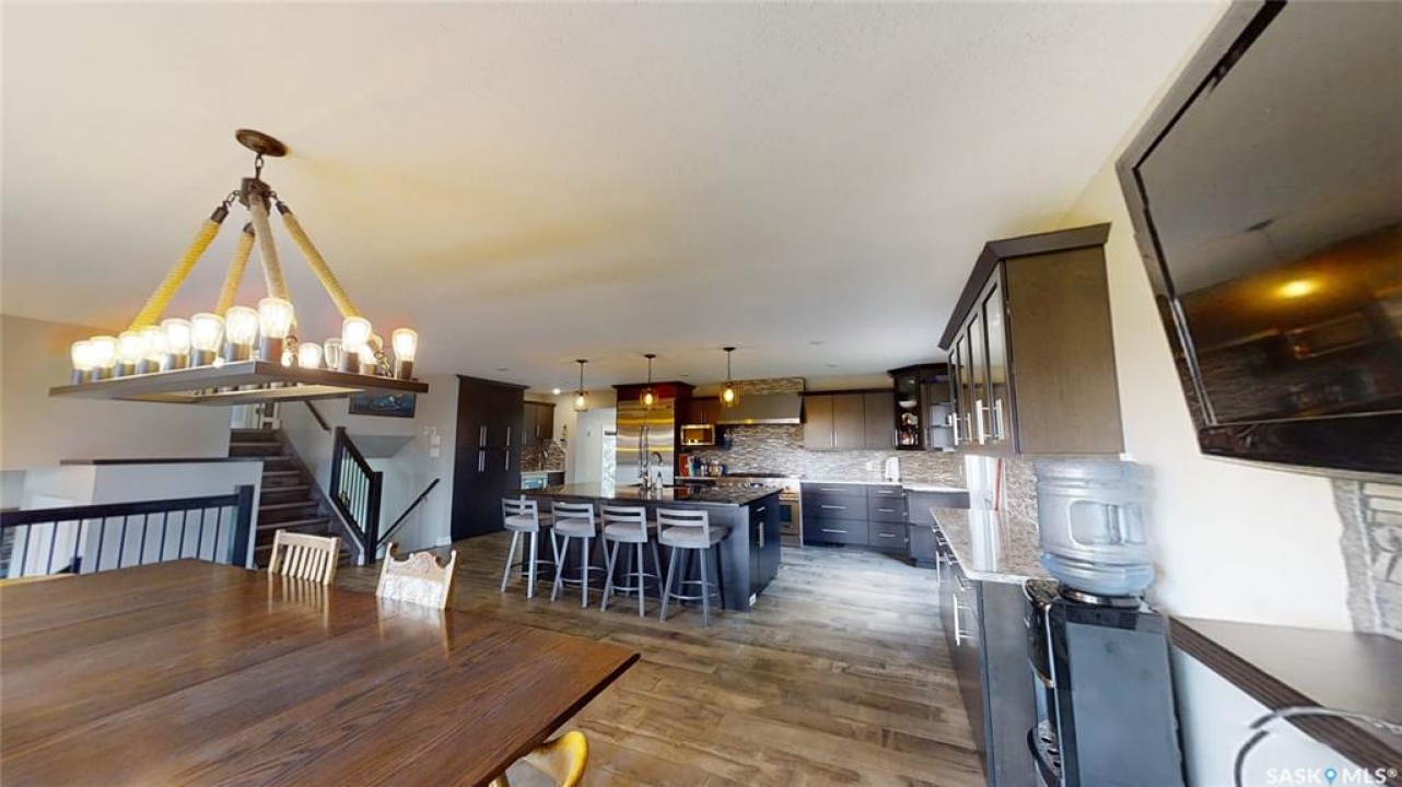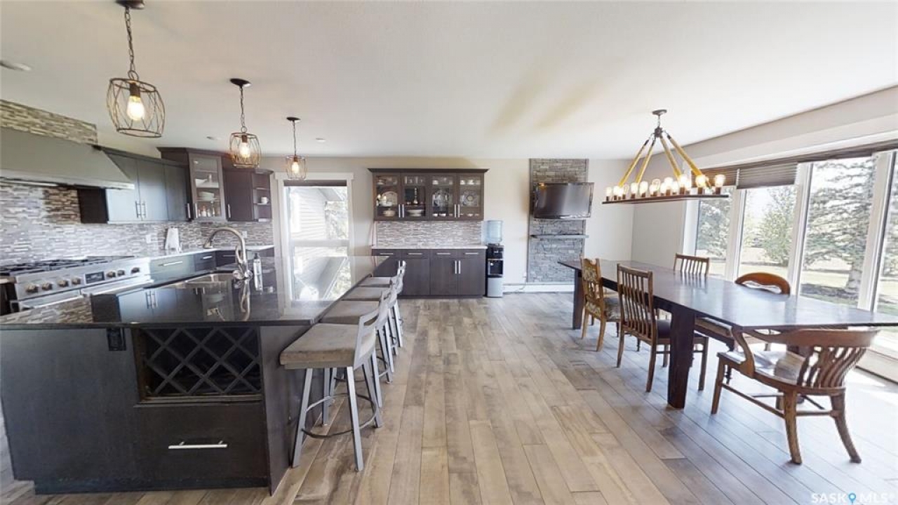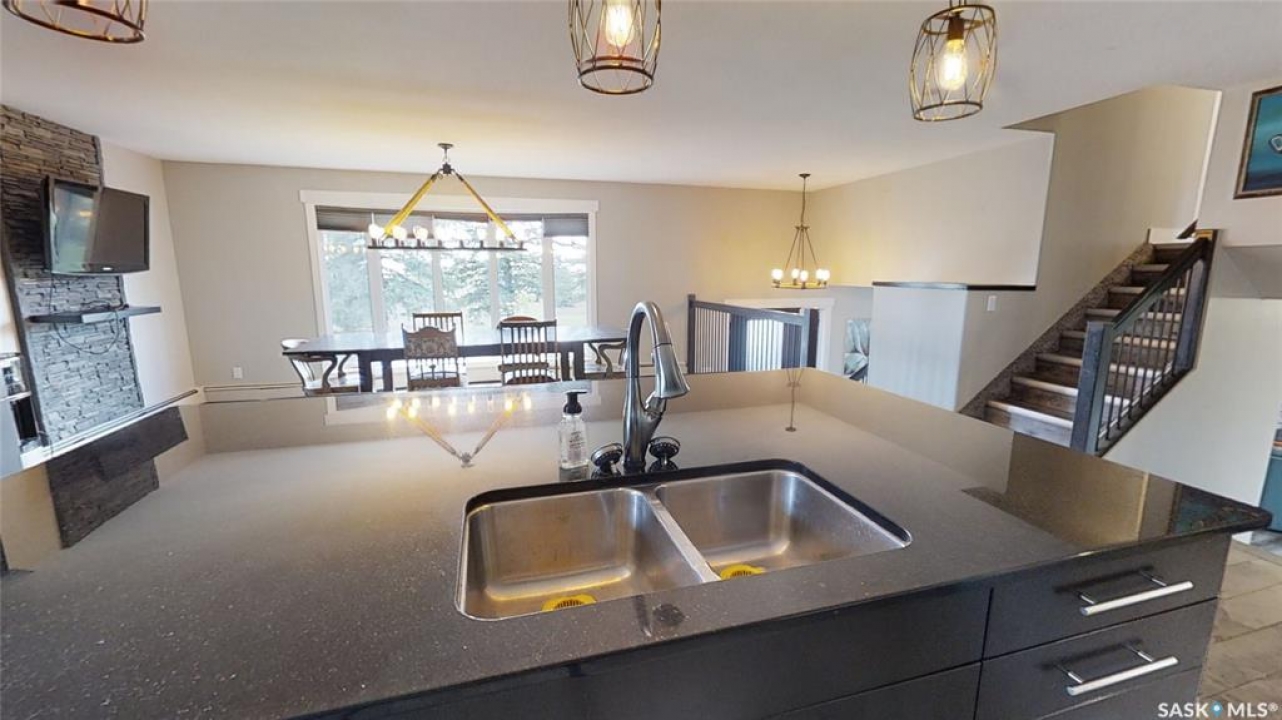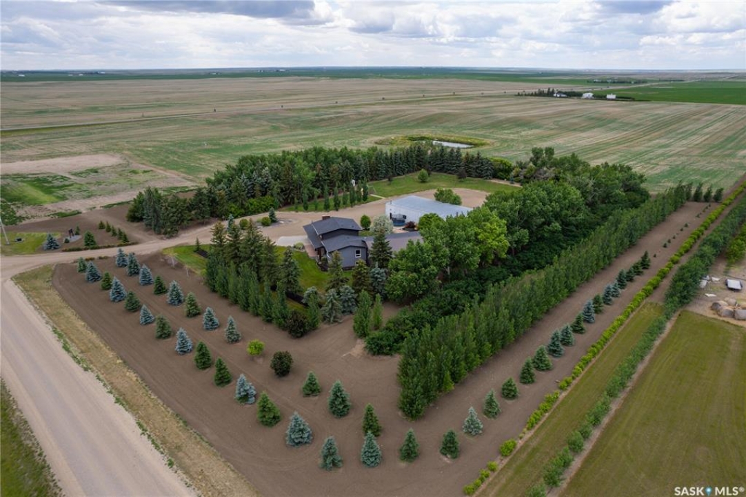 This is a once in a lifetime opportunity to own a property that offers everything and is truly unique. With approximately 11.75 acres this acreage creates an unforgettable setting to enjoy the sunrises and sunsets. But this property is about more than size, it's about value. The value in having large family gatherings, the flexibility to have a tranquil getaway, and the freedom to let the kids run free. Owning a property where the enjoyment level is at a perpetual high is a rare opportunity, and by touring this acreage you will come to realize why. Nestled a mere 2 minutes west of Kindersley the property offers a 1684 sq ft home that is guaranteed to please. Upon entering get cozy in the family room or head to the gorgeous kitchen featuring beautiful stainless steel appliances, gas range, industrial hood fan, huge french door fridge, granite island, quartz countertops, mini fridge built into the cabinets and more! There is plenty of room for all the family to spend time together in this space. The home boasts 5 bedrooms with the master suite offering a 3pc bath. On the top level there is a total of 3 bedrooms with a 5 pc bath. Throughout the home there is heated tile. The kids will have the luxury of free play on the playground, making forts in the trees, roasted marshmallows at the fire pit and so much more. The family will get to hang out on the water at your own private indoor pool (1428 sq ft space)complete with surround sound, shower stall, hot tub, and all around great hang out space complete with coded door & camera for safety. There is also home to a 40' x 80' heated shop that allows you to keep all your vehicles, toys, and equipment out of the elements. This is turn key includes 2 ride on mowers, on the municipal water line, underground sprinklers, etc. Come see for yourself why we can't say enough about it.