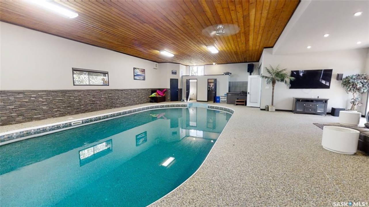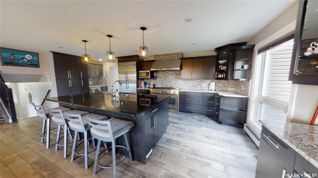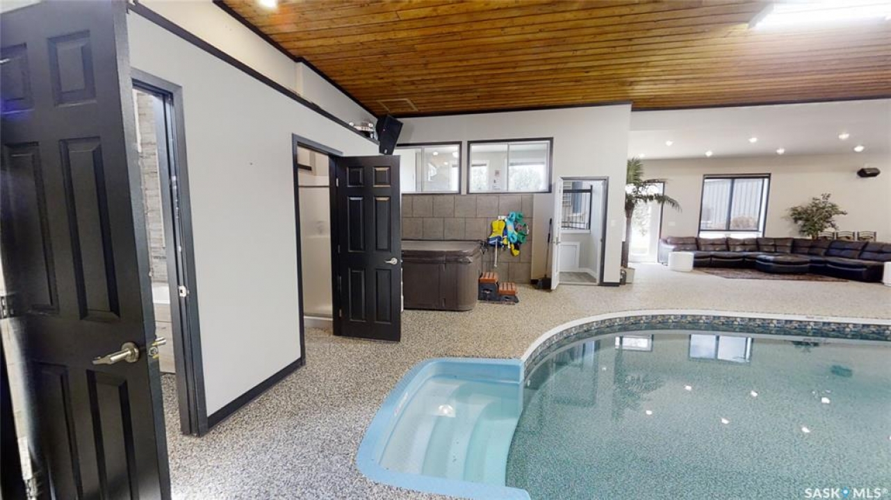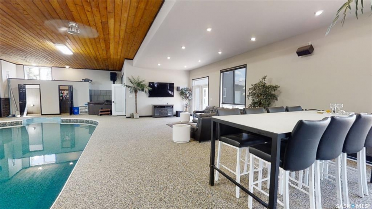 This is a once in a lifetime opportunity to own a property that offers everything and is truly unique. With approximately 11.75 acres this acreage creates an unforgettable setting to enjoy the sunrises and sunsets. But this property is about more than size, it's about value. The value in having large family gatherings, the flexibility to have a tranquil getaway, and the freedom to let the kids run free. Owning a property where the enjoyment level is at a perpetual high is a rare opportunity, and by touring this acreage you will come to realize why. Nestled a mere 2 minutes west of Kindersley the property offers a 1684 sq ft home that is guaranteed to please. Upon entering get cozy in the family room or head to the gorgeous kitchen featuring beautiful stainless steel appliances, gas range, industrial hood fan, huge french door fridge, granite island, quartz countertops, mini fridge built into the cabinets and more! There is plenty of room for all the family to spend time together in this space. The home boasts 5 bedrooms with the master suite offering a 3pc bath. On the top level there is a total of 3 bedrooms with a 5 pc bath. Throughout the home there is heated tile. The kids will have the luxury of free play on the playground, making forts in the trees, roasted marshmallows at the fire pit and so much more. The family will get to hang out on the water at your own private indoor pool (1428 sq ft space)complete with surround sound, shower stall, hot tub, and all around great hang out space complete with coded door & camera for safety. There is also home to a 40' x 80' heated shop that allows you to keep all your vehicles, toys, and equipment out of the elements. This is turn key includes 2 ride on mowers, on the municipal water line, underground sprinklers, etc. Come see for yourself why we can't say enough about it.