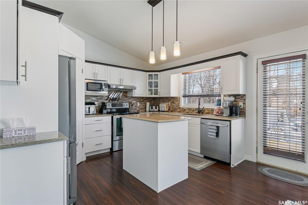 Welcome to this well-appointed home in the heart of Regina Beach, offering the perfect balance of small-town living and convenience, located less than 30 minutes from Regina. Situated within walking distance to South Shore Elementary School, this property is ideal for families looking to enjoy a vibrant lakeside community with access to a 9-hole golf course, grocery store, pharmacy, gas station, restaurants, and year-round entertainment. This 1,194 sq. ft. home features 4 bedrooms and 3 bathrooms, with bamboo hardwood floors flowing throughout most of the main level. The kitchen is designed for both function and style, offering stone countertops, a large pantry, and direct access to the back deck, making it perfect for everyday living and entertaining. Main floor laundry adds to the home's practical layout. The fully developed basement provides excellent additional living space, complete with a large family room, rec room, bedroom, bathroom, and ample storage. Set on a generous 66' x 121' lot, the property includes a 24' x 22' attached heated garage, stucco siding, newer architectural shingles, and natural gas forced air heating. The large, private backyard offers plenty of space to relax and enjoy the outdoors. This is a fantastic opportunity to enjoy the lifestyle that Regina Beach has to offer. Call today!