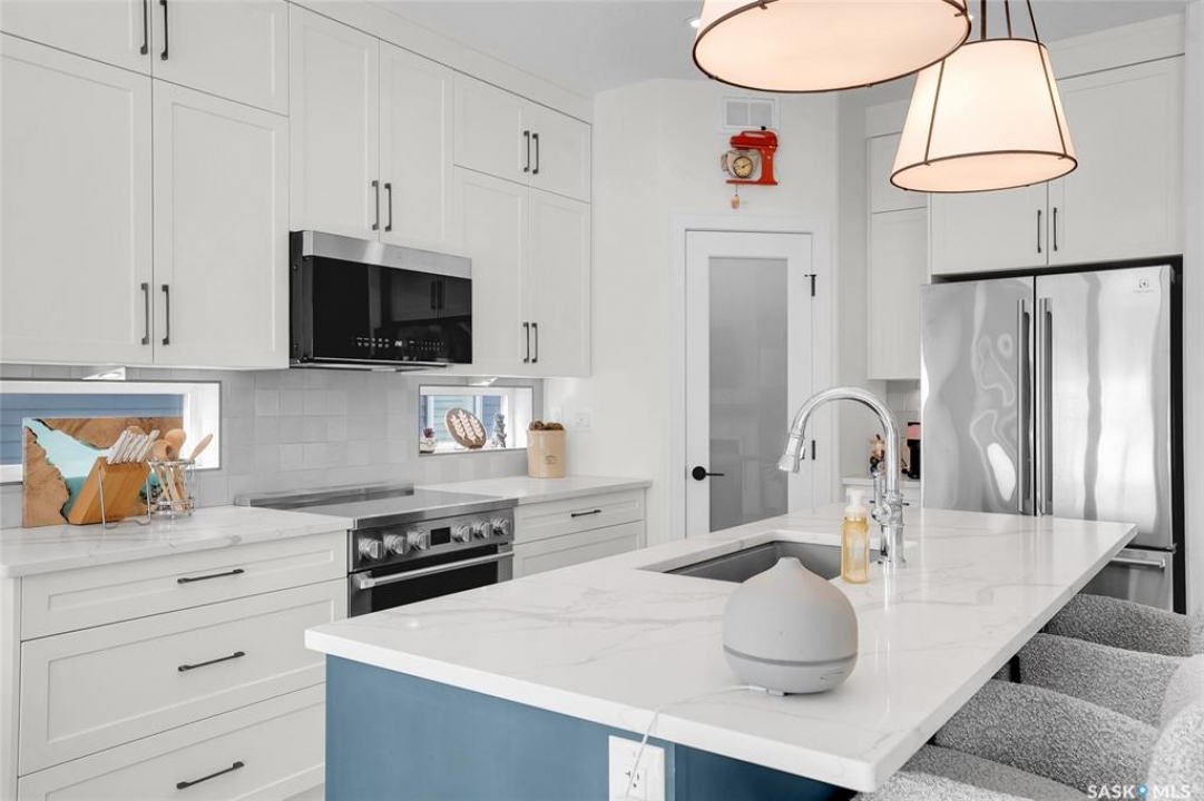 Welcome to the vibrant community of Warman, a city that offers all essential amenities and more. This immaculate end-unit townhome, bungalow style, built by a reputable Northridge builder, is ideally situated in a highly sought-after neighborhood adjacent to the golf course, offering lovely views of surrounding green space. Well maintained by its original owner, the home features thoughtful upgrades throughout, including enhanced lighting, custom living room shelving, and premium Electrolux appliances—a fridge, stove, washer, dryer, built-in microwave/hood fan—as well as a high-end Miele built-in dishwasher. The open-concept floor plan creates an inviting and functional living space. The modern kitchen is bright and stylish, complete with a walk-in pantry, island with breakfast bar, and quartz countertops. The comfortable living room offers a beautiful electric fireplace as its focal point. The primary bedroom includes a private three-piece ensuite. Step outside through the garden door to enjoy the south-facing deck, equipped with a custom motorized awning for shade and comfort when desired. The full basement features four large windows, is fully insulated, and is open for your future development. Additional highlights include custom blinds, central air conditioning and a fully insulated, drywalled double attached garage with direct entry. Located just steps from Corney Klassen Park, you'll have access to excellent walking paths and a wonderful sense of small-community serenity—all while enjoying the convenience of big-city services. With quick access to Saskatoon via a well-maintained double-lane highway, this home offers outstanding livability. Experience condo-townhome living at its finest, offering effortless comfort and low-maintenance convenience. Truly move-in ready and a pleasure to view.