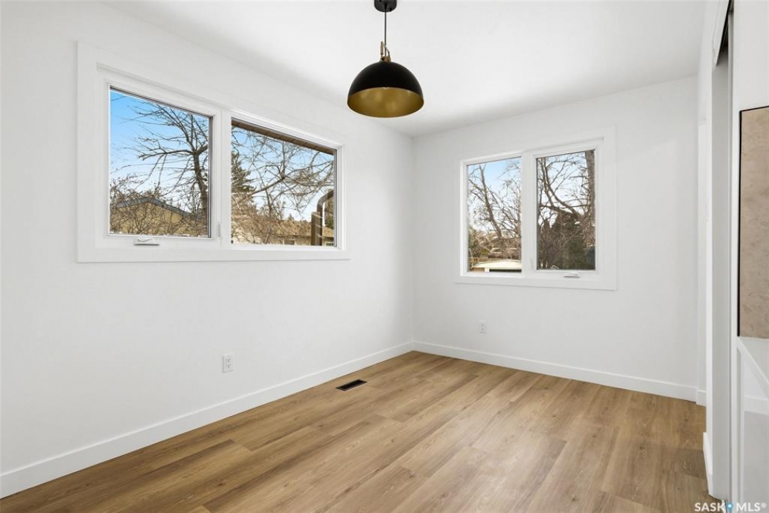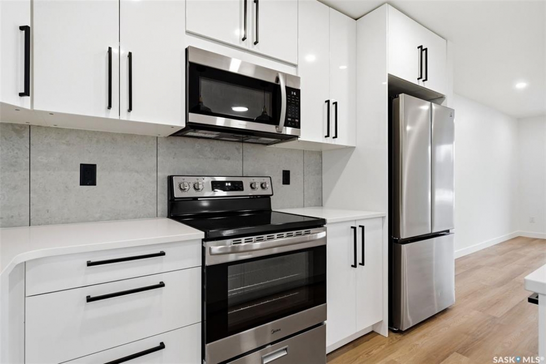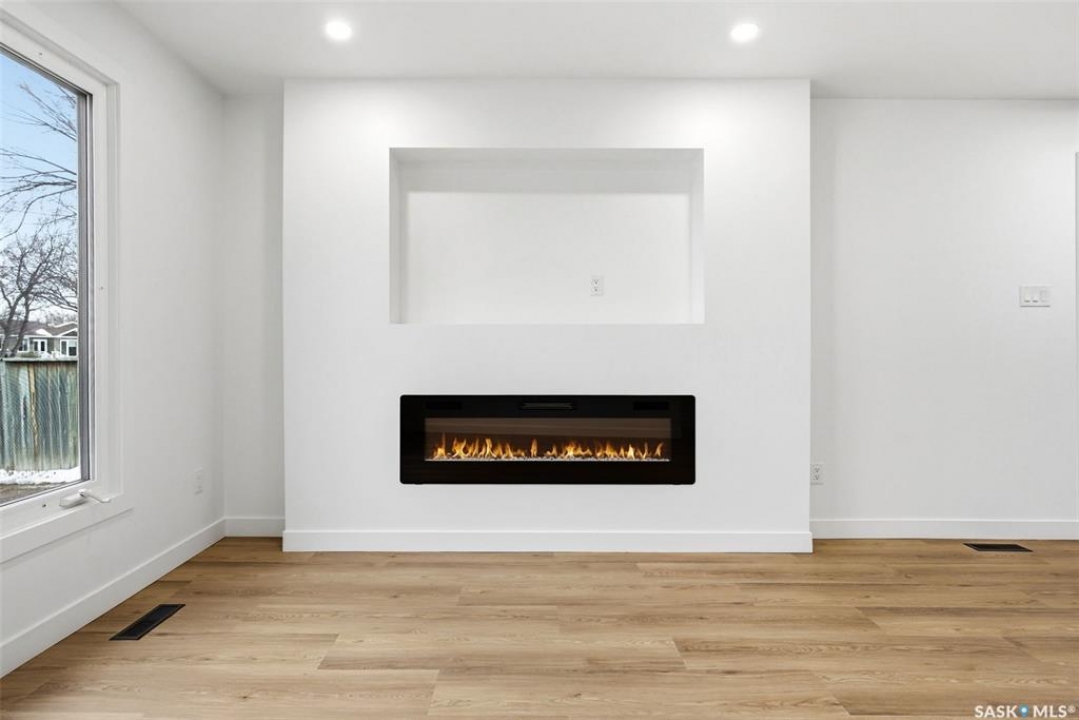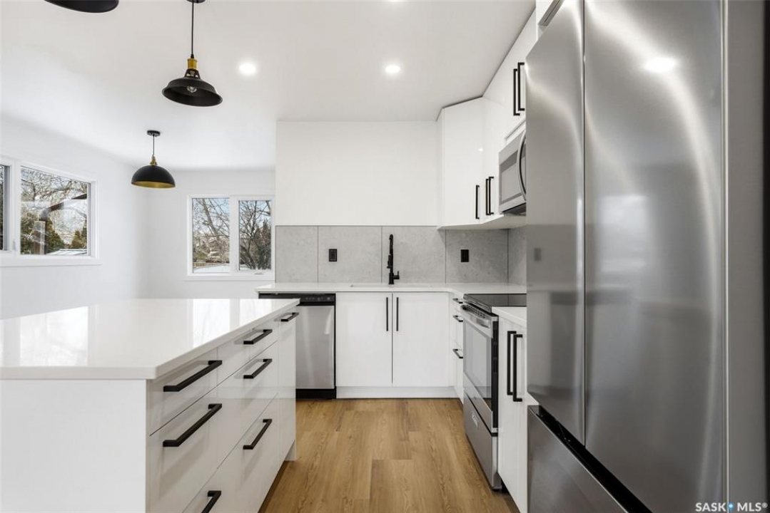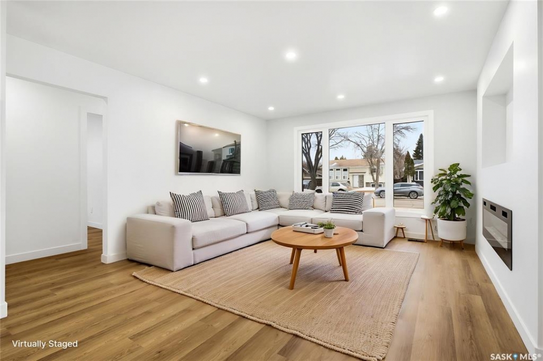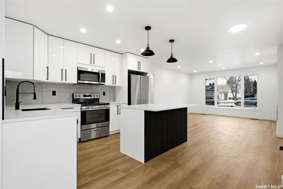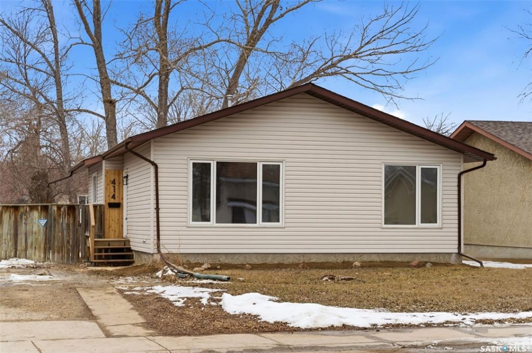 Welcome to 414 Rink Avenue, another beautifully reimagined home brought to life by Bouss Construction! Every detail in this transformation was intentionally crafted by professionals to create a warm and functional space you'll be proud to call home. Located on a quiet street just steps away from an elementary school and parks, this home is perfect for families. Step inside to a redesigned bright and welcoming open-concept layout. The living room draws you in with large south facing front windows, modern pot lighting and a custom feature wall complete with an electric fireplace and TV insert. The kitchen is a true showpiece, fully rebuilt with both form and function in mind. Enjoy quartz countertops, stainless steel appliances, sleek white cabinetry with black hardware and a centre island with an eat-up bar — perfect for casual meals or morning coffee. There's plenty of space for a dining table to host family or friends. Down the hall, you'll find three comfortable bedrooms and a fully redeveloped 4-piece bathroom featuring a beautifully finished tiled tub surround and modern fixtures. The primary bedroom includes your own 2-piece ensuite as well. The basement of this home offers the perfect canvas for your vision. The slab is in excellent condition and the foundation walls were inspected and structurally reinforced with an engineer's sign off. The foundation walls were framed, insulated and vapour barriered as per the City's permit requirement. All the work done on this house was completed by professionals and permitted with the City of Regina. All kitchen appliances are brand new. There is room for a potential two car garage and quotes can be provided by the seller and completed as a mortgage add on if desired. Don't miss out on this one!