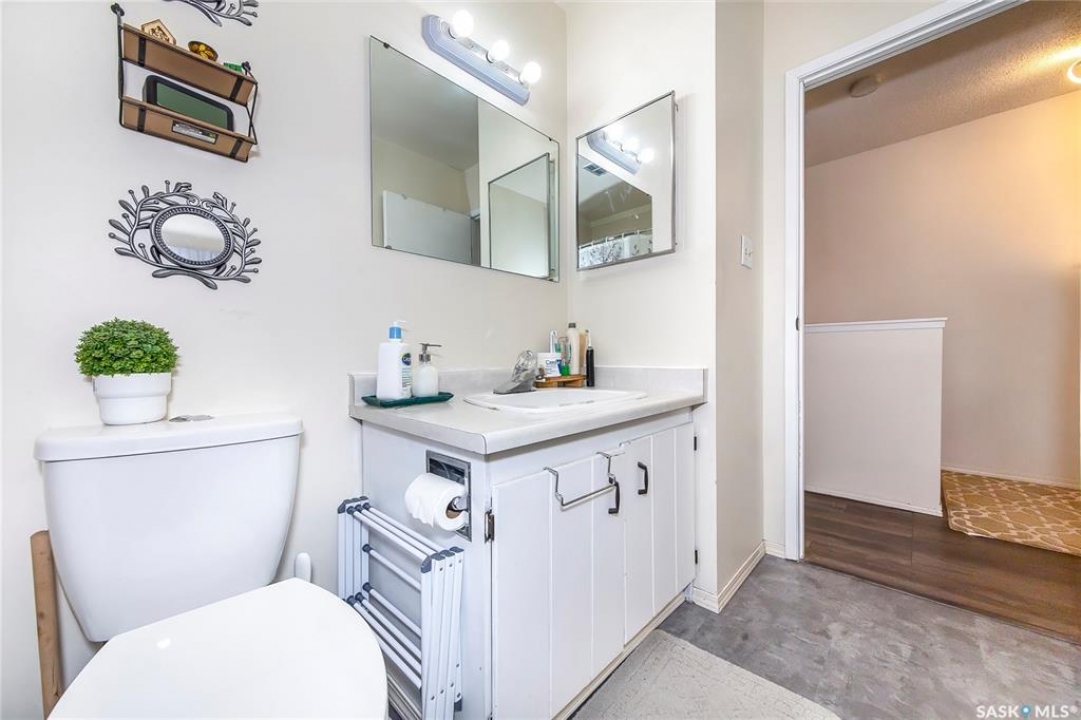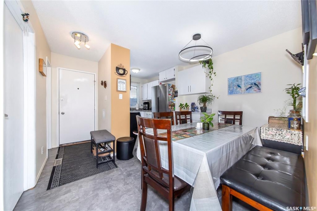 Welcome to #147-1128 McKercher Dr, Situated in the desirable Wildwood Village, this well-maintained 3-bedroom, 2-bath townhouse offers comfort, convenience, and exceptional value. Ideally located directly across from a playground and close to bus routes and all 8th Street amenities, this home is perfect for families, first-time buyers, or investors. The bright main floor features a spacious living room with a large south-facing window, filling the space with natural light, and opens seamlessly to the dining area. The functional kitchen includes a built-in dishwasher, backsplash, microwave hood fan, double sink, and a window overlooking the playground. A convenient half bath completes the main level. Upstairs offers laminate flooring throughout, a generous primary bedroom, two additional bedrooms, and a full bathroom. The partially finished basement provides extra living space along with a laundry/utility area. Enjoy a private, fully fenced south-facing backyard with patio—deeper than most units. Recent updates add peace of mind, and with condo fees covering common area maintenance, exterior building maintenance, garbage, lawn care, snow removal, water, and reserve fund contributions, this is a fantastic opportunity in a sought-after east-side location. Book your private showing today!