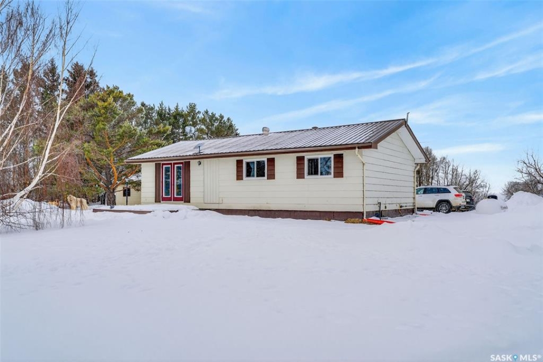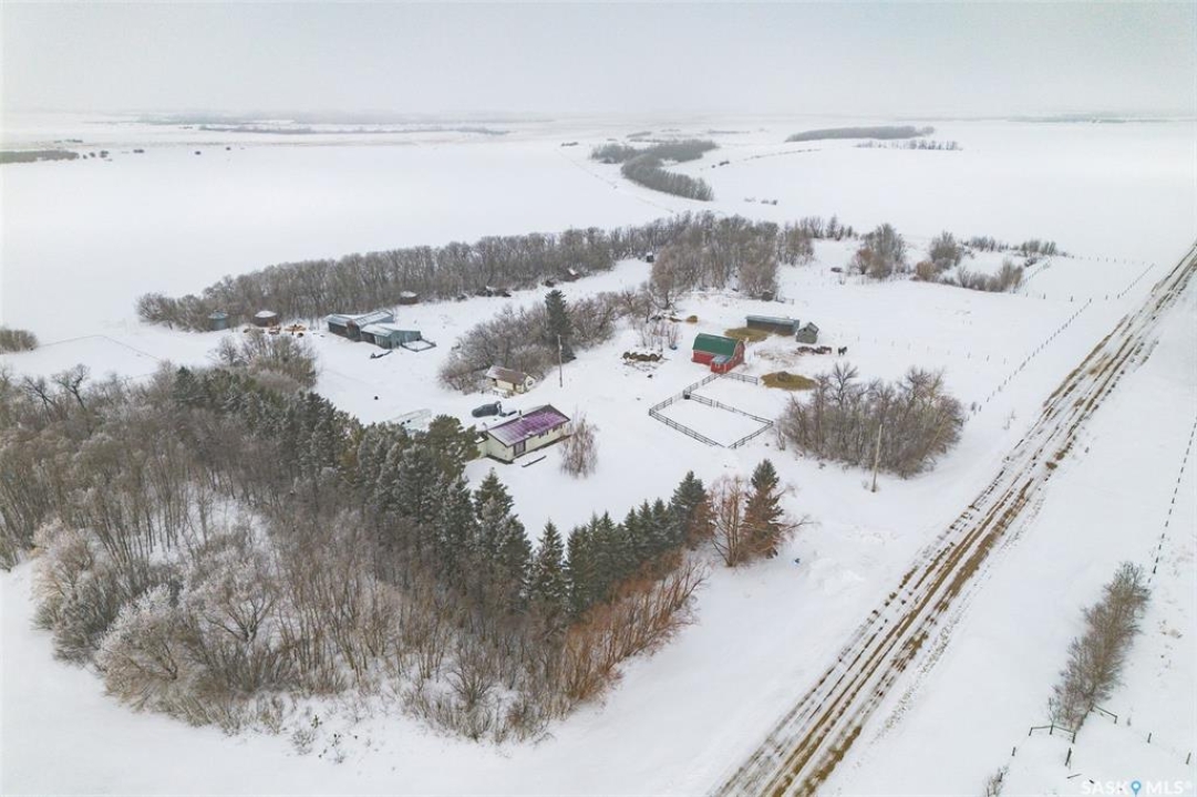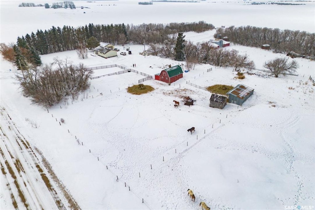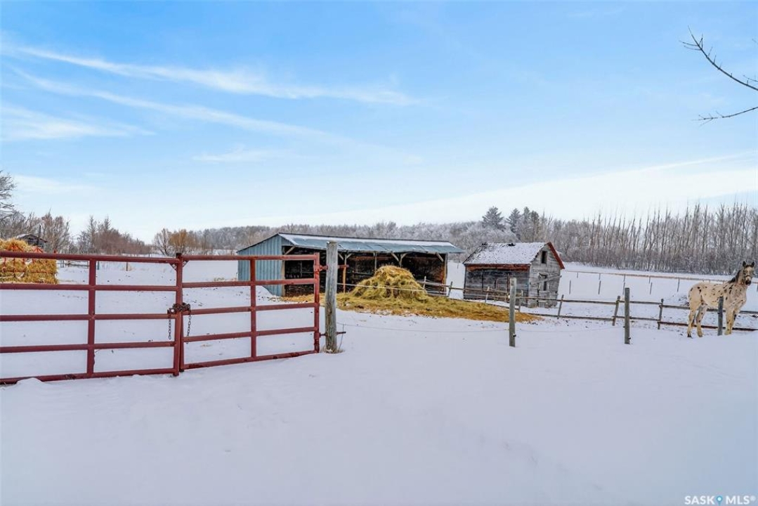 Full Quarter, Fully Set Up....Built for Living, Ready for Animals! Located in the RM of Lake Lenore commuting distance to Naicam, Lake Lenore & St. Brieux. School bus pickup to Lake Lenore. This property includes a 1065 sq.ft. bungalow (3 bedrooms, full bath on main and basement is partially finished with three piece bath/laundry. Includes fridge, stove (gas propane), portable dishwasher, washer, dryer. Large double detached garage (24' x 32'), hen house (12' x 26'). Fenced outdoor riding arena (approx. 84' x 120'). The machine shed includes 4 bays with power, approx 30' x 57' with an addition of 30'x 23' that is closed in. Barn has 3 stalls plus tack room. 2 Paddocks fenced in at front of property (to barn) with animal shelter and heated watering bowl direct feed from dugout. There is additional fencing (page wire) done behind machine shed when owners had sheep. Approx 99 acres of seeded hayland, mostly open, few to no stones (hay used for personal use as well as an income source). Septic tank installed in 2015. Electric Water Heater & Forced Air Propane Furnace installed approx 4 years ago. Ample water supply from two dugouts that feed into wells (one well used, other is backup). Private location, great for animals and family life fun of camping, fishing/recreational a short drive away!