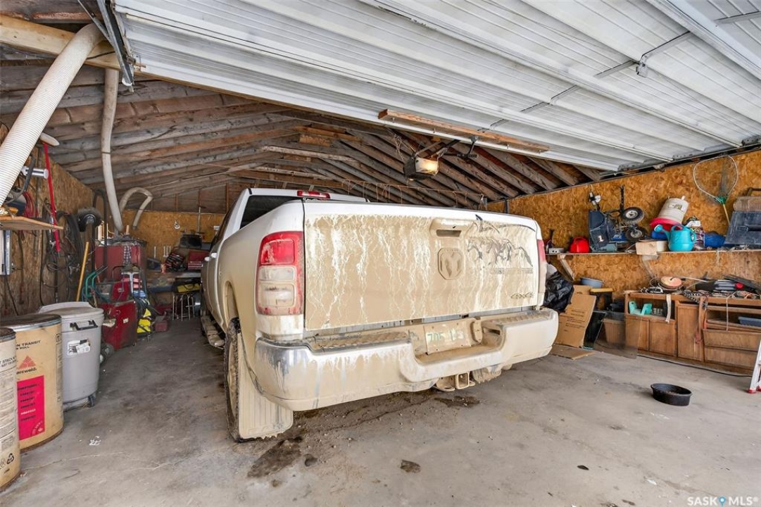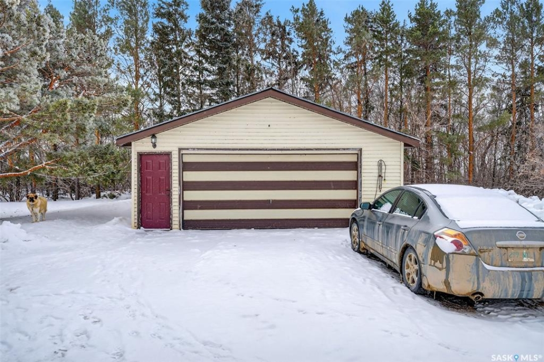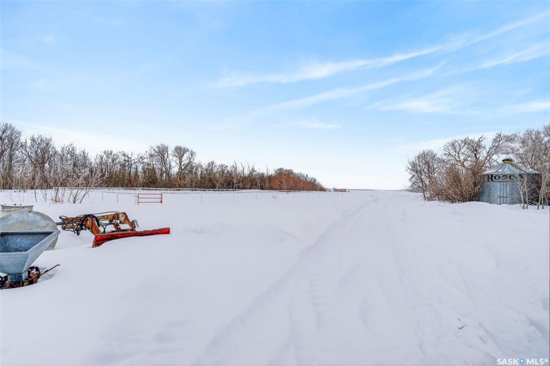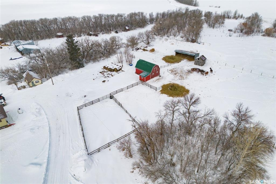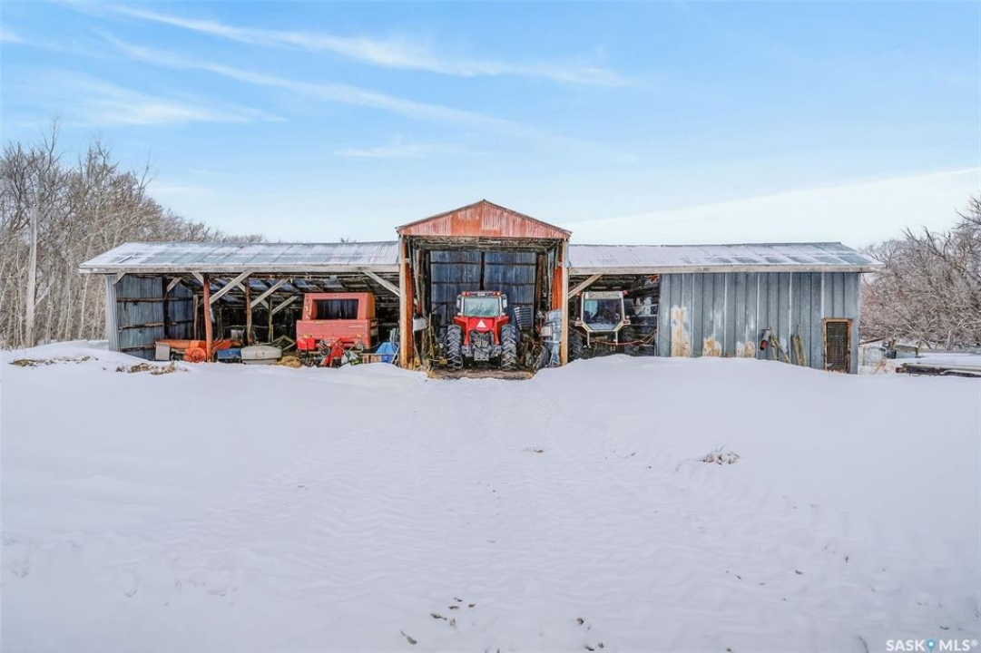 Full Quarter, Fully Set Up....Built for Living, Ready for Animals! Located in the RM of Lake Lenore commuting distance to Naicam, Lake Lenore & St. Brieux. School bus pickup to Lake Lenore. This property includes a 1065 sq.ft. bungalow (3 bedrooms, full bath on main and basement is partially finished with three piece bath/laundry. Includes fridge, stove (gas propane), portable dishwasher, washer, dryer. Large double detached garage (24' x 32'), hen house (12' x 26'). Fenced outdoor riding arena (approx. 84' x 120'). The machine shed includes 4 bays with power, approx 30' x 57' with an addition of 30'x 23' that is closed in. Barn has 3 stalls plus tack room. 2 Paddocks fenced in at front of property (to barn) with animal shelter and heated watering bowl direct feed from dugout. There is additional fencing (page wire) done behind machine shed when owners had sheep. Approx 99 acres of seeded hayland, mostly open, few to no stones (hay used for personal use as well as an income source). Septic tank installed in 2015. Electric Water Heater & Forced Air Propane Furnace installed approx 4 years ago. Ample water supply from two dugouts that feed into wells (one well used, other is backup). Private location, great for animals and family life fun of camping, fishing/recreational a short drive away!