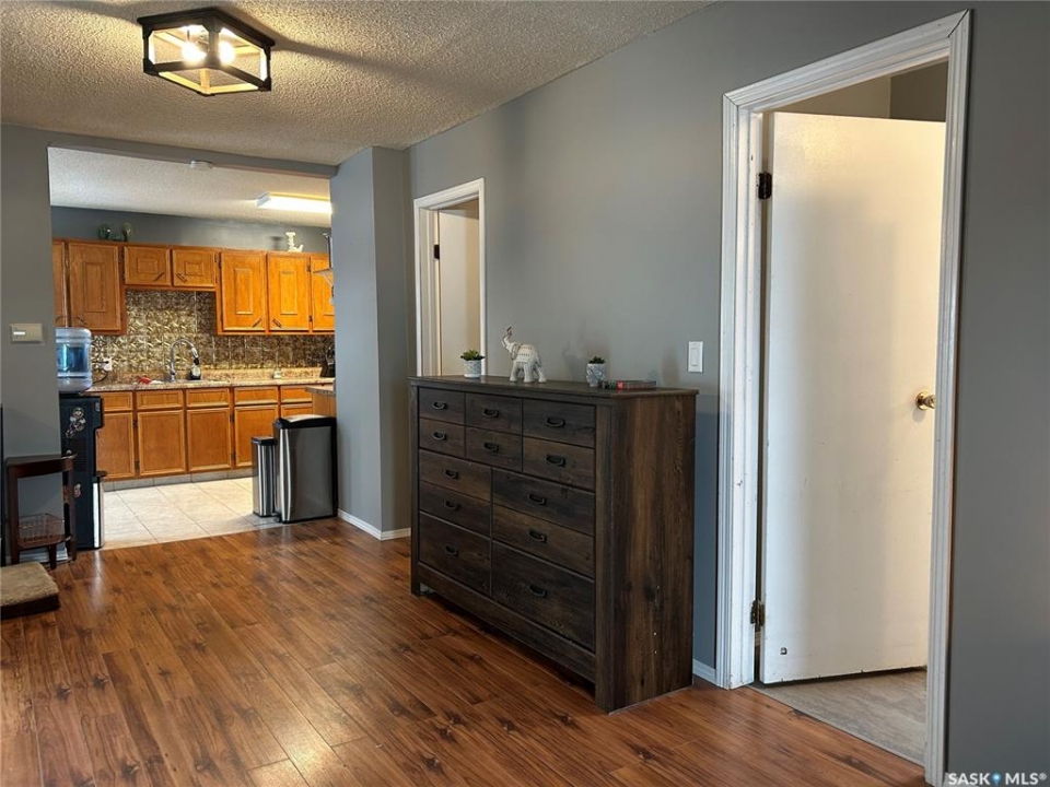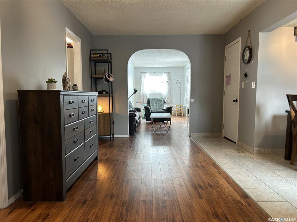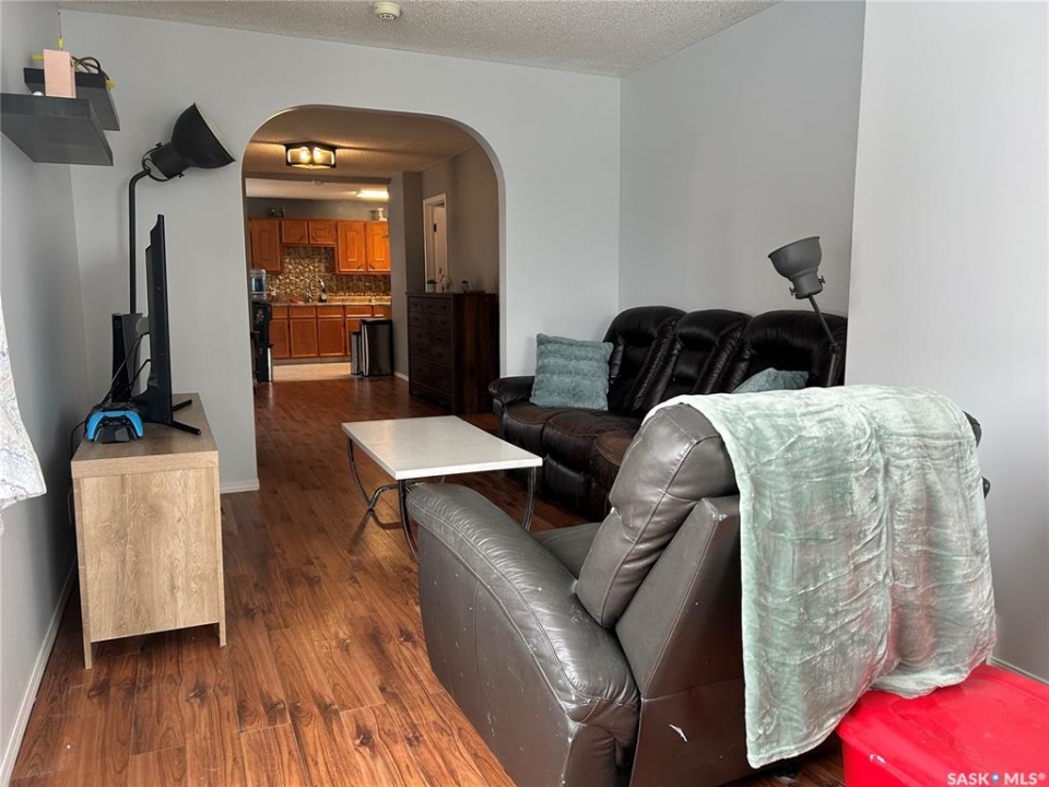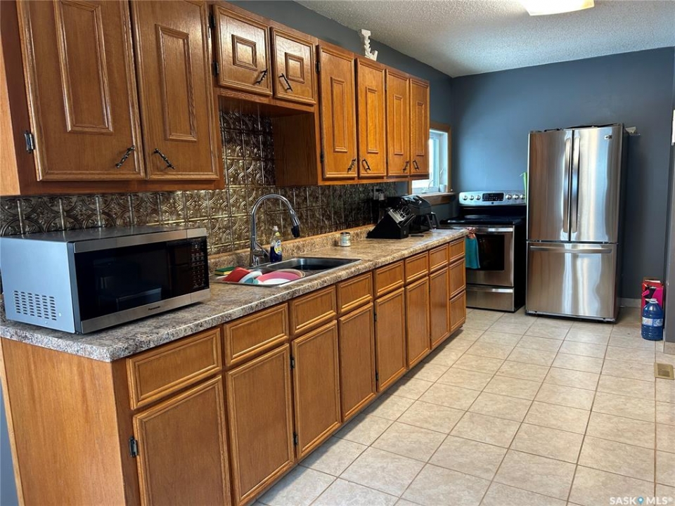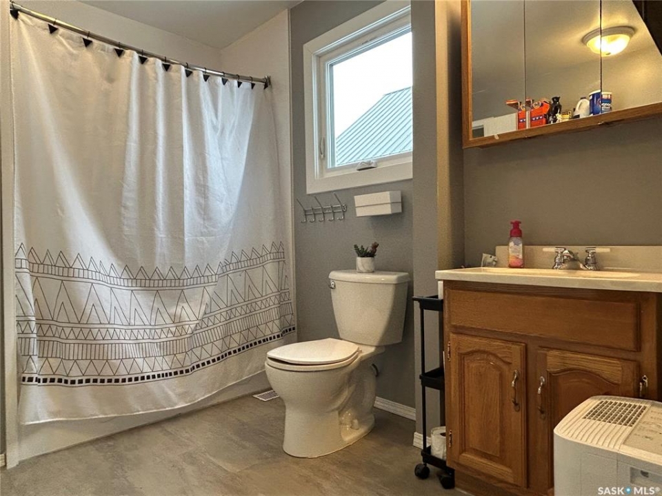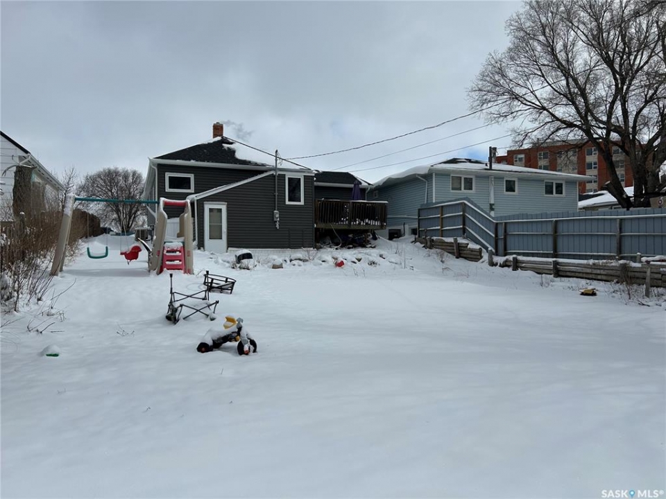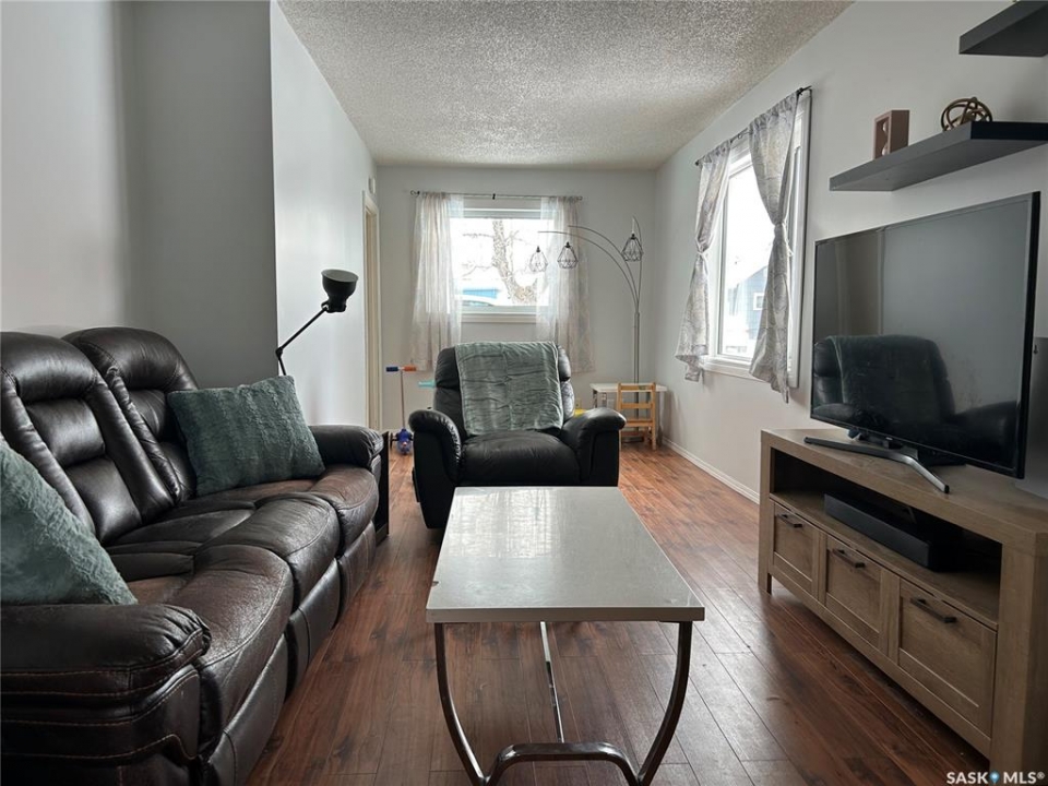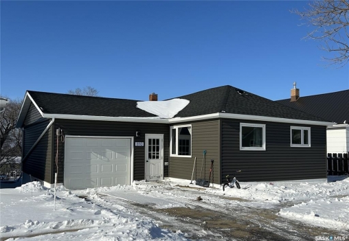 Very nice 1,048 sq. ft. bungalow located just south of the co-op grocery store. This main level features a large living room, dining room and kitchen, two main floor bedrooms of which the master has a walk-in closet, and shared four-piece bathroom with laundry. Updated windows on the main level, as well as ALL new shingles and siding in 2025. Downstairs is partially finished and one room is currently used as a bedroom, one as a work at home office, and the bathroom is plumbed in with a new shower installed. The single garage is attached, so you don't have to step outside, with a mudroom between the garage and house. All major appliances are included, which includes a built-in dishwasher. Outside has a large backyard with plenty of room for parking.