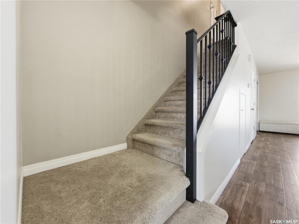 Welcome to 209-3818 Dewdney Ave E, a well-maintained two-storey townhouse style condo located in the East Pointe Estates community in Regina's east end. This unit offers 3 bedrooms and 2 bathrooms with a functional layout that makes great use of the space. The main floor features a bright living area and a kitchen complete with granite countertops, ample storage, and plenty of counter space. Thoughtful features such as under-stair storage, and Ring doorbell add everyday convenience. Upstairs you'll find three bedrooms and a full bathroom, offering flexibility for families, guests, or home office space. A West-facing balcony provides a great outdoor area to relax along with a heated storage room that is ideal for additional storage. Conveniently located with walking paths, restaurants, and everyday amenities nearby, along with quick access to Victoria Avenue for groceries, gas, and shopping.