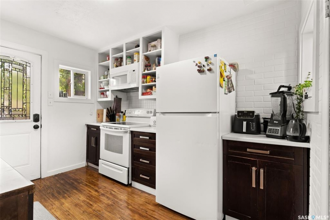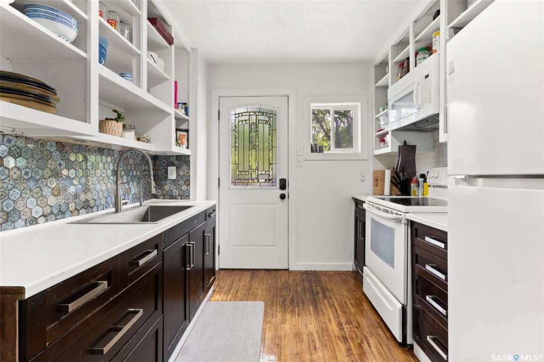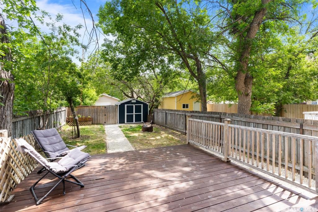 Welcome to 1941 Montague Street in the charming neighbourhood of Cathedral. This one and a half storey, 867 sqft character home has been well maintained and cared for. Entering this home through the welcoming 3-season front porch where you can hang your coat and store your shoes, take that sigh and say, “I'm home!”. An ideat home for first time home buyers, or for someone wanting to leave behind apartment style living, this home suits many genres. As you enter the main floor there is a staircase to the second level with an alcove next to it that is perfect for a small table to set down your keys. To the left you enter the living room and dining area. Hardwood flooring and high ceilings open this space up. Enjoy entertaining friends or unwinding in the living room. Off the dining area is the kitchen. There are open front upper cabinets and more storage than you would think. There is an attractive tile backsplash and a large stainless steel sink. Appliances are included. From the kitchen you have direct access to the 2-tiered deck and backyard. Enjoy summer nights BBQ'ing with friends and family. The backyard is fully fenced and has a cute garden shed. A future garage would easily fit in this backyard. The exterior of the home was recently repainted; it has updated windows and new shingles were installed 2025. Going back to the home, we will go to the second floor where there are two good sized bedrooms on opposite sides of the hallway and a 4-pce bathroom. The basement is an undeveloped space and is currently used for storage and is home to the laundry area. There is a High Efficiency Furnace, updated electrical panel, sump pump, and plenty of room for storage. Just unpack your bags and come home! Pictures are from when previous tenant lived in the property. Living room and dining room photos have been photo shopped to remove tenant furniture.