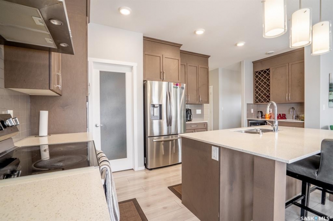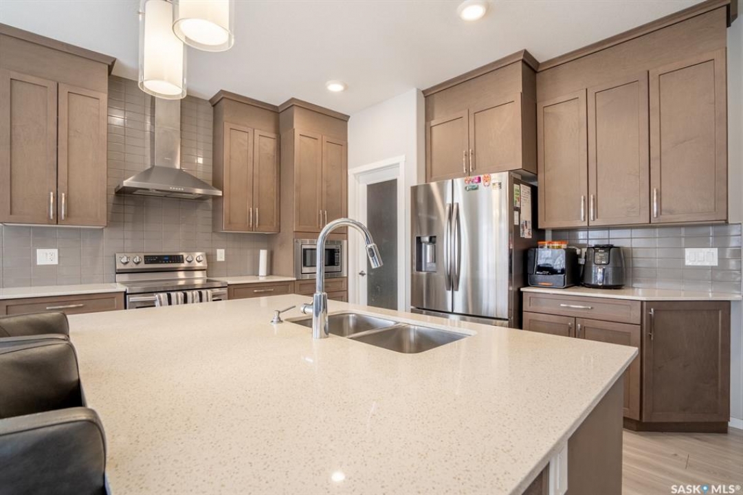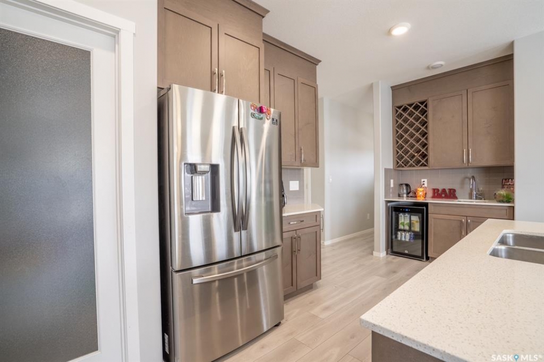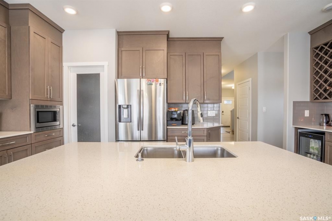 Welcome to this stunning custom-built Daytona home that perfectly blends modern luxury with multi-generational functionality. Situated on a premium semi-pie lot with no direct neighbors to the back for ultimate privacy, this home is built on piles and features triple-pane windows throughout—including the basement—offering unparalleled peace of mind and energy efficiency. Boasting an expansive 2,428 sq. ft. at an incredible value of just $330 per square foot, this home is located on a street with premium appeal, within walking distance to parks, schools, and the Acre 21 shopping centre. The meticulously maintained interior features 9 ft. ceilings and upgraded lighting fixtures, while the open-concept main floor offers a rare spacious bedroom and a full 4-piece bathroom, ideal for guests or senior parents. The chef-inspired kitchen features an oversized island, custom maple cabinetry, and a wet bar with a wine cooler, while the versatile "tech nook" provides the perfect workspace for today's lifestyle. The upper level continues to impress with a massive bonus room and three generous bedrooms, including large secondary rooms designed to easily accommodate study desks. The master bedroom features a luxurious 5-piece ensuite with dual sinks, a rejuvenating bathtub, a separate shower, and a large walk-in closet. Practicality meets convenience with a second-floor laundry room and a massive 5-piece main bathroom. For future growth or investment, the basement features a separate side entrance, upgraded R20 insulation, and rough-in plumbing for a future 2-bedroom suite. Other upgrades include a new water heater (2026), a 200-amp electrical panel, and central air conditioning for those hot summer days. The outdoor oasis is equally impressive, featuring a double concrete patio, a composite deck, underground sprinklers, and a finished garage with premium epoxy flooring. This home offers a turnkey lifestyle characterized by luxury and ease—book your private showing today!