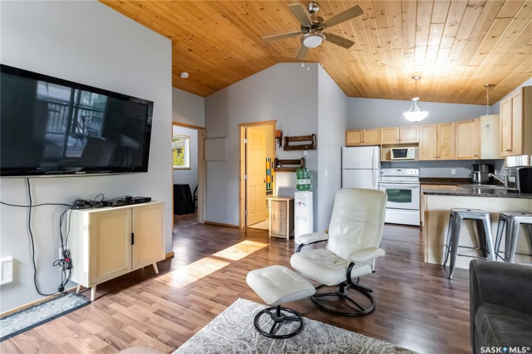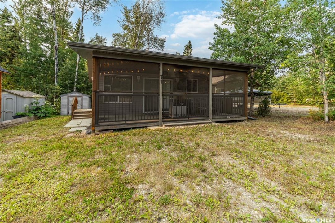 Welcome to 71-150 Okema Beach Road at Rothenburg Family Park, minutes from Okema Beach and Murray Point at Emma Lake. Built in 2008, the cabin features a vaulted ceiling, open floor plan, 2 bedrooms and a 4-piece bath situated on a 51x121 owned lot. The annual $400 condo fee includes water and sewer - no need to worry about monitoring levels or hauling water in - garbage and common area maintenance is also included. This retreat offers year-round use with electric baseboard heat and access to water and sewer. Enjoy the screened in porch or the private deck - perfect for future campfires or just relaxing in the privacy of your back yard. Lots of parking for your vehicles and a storage shed for your tools and toys.