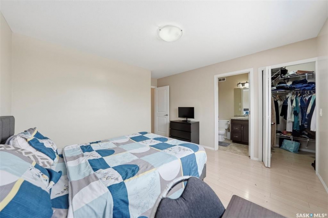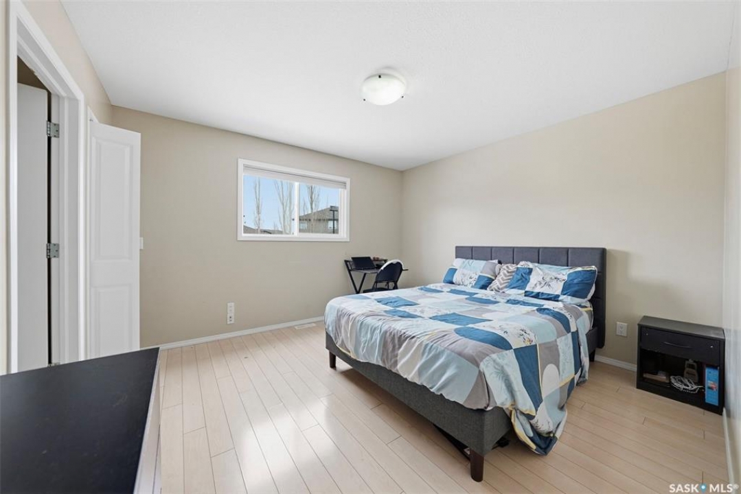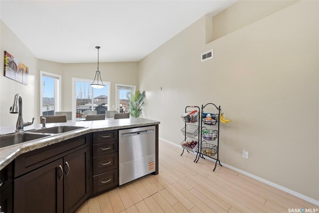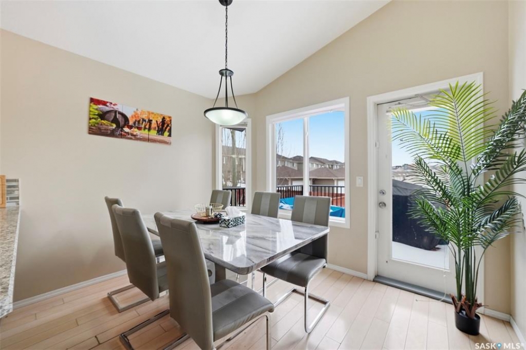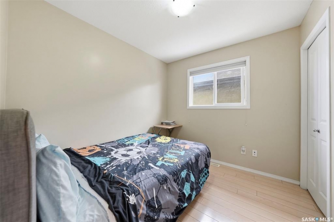 Welcome to 215 Snell Crescent in the desirable neighbourhood of Stonebridge in Saskatoon. This well-kept bi-level home is located on a quiet street and features a bright south-facing living room with plenty of natural light, a maple kitchen with gas stove, and a spacious dining area with access to a two-tier deck. The primary bedroom includes a walk-in closet and 4-piece ensuite. The fully developed basement offers a large family room, two bedrooms, and a full bathroom. Close to schools, parks, and all amenities. Includes central air conditioning and underground sprinklers.