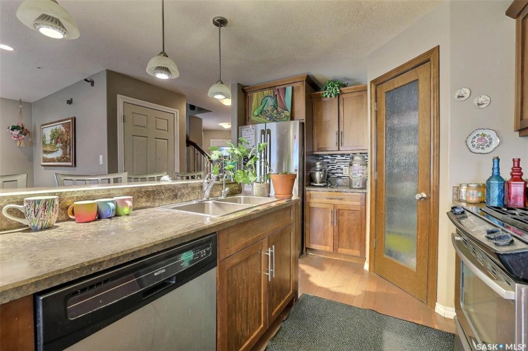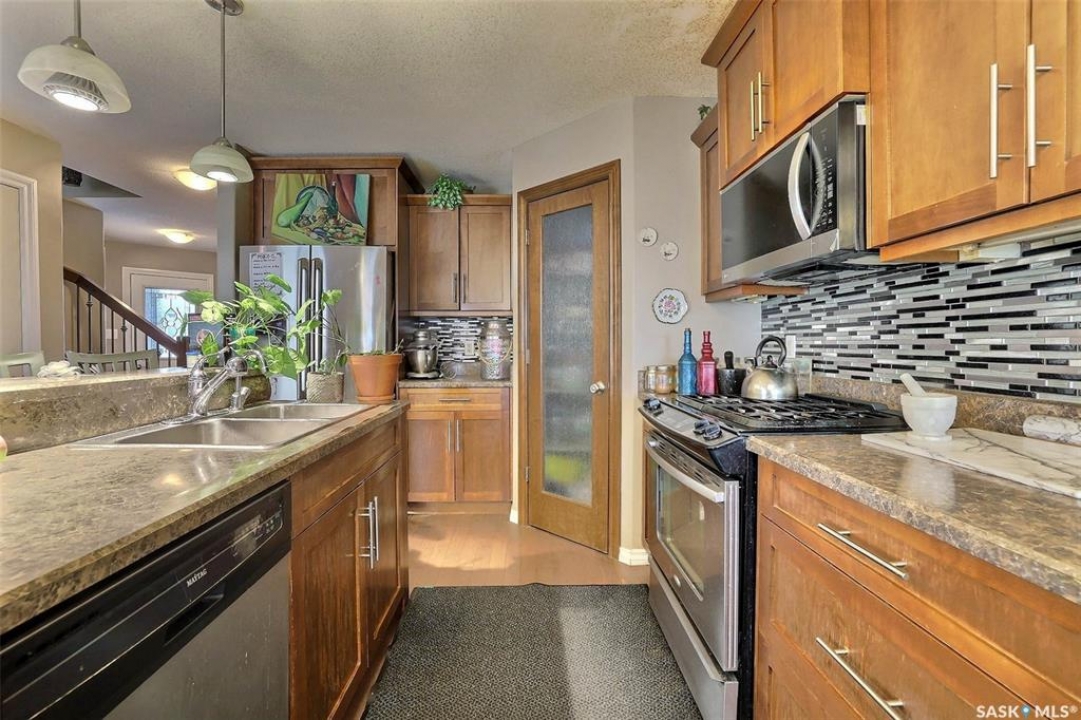 Great potential with this 4 bdrm up 2 storey featuring fantastic newly developed 2 bdrm basement suite! Ideally located in family friendly Harbour Landing close to all amenities. Open floorplan with large kitchen with centre island and panty. Plenty of cabinets and counterspace plus custom tiled backsplash. Generous sized eating area with garden door to rear covered deck. Large living room with south facing picture window allowing in plenty of natural light. Powder room and direct entry to garage. 2nd level features big primary suite with 3pc ensuite and walk in closet plus 3 additional generous sized bedrooms and main bath. Separate side entrance leads to a 2bdrm bsmt suite. All new flooring, paint and cabinetry. Ideal for secondary income. Call today!