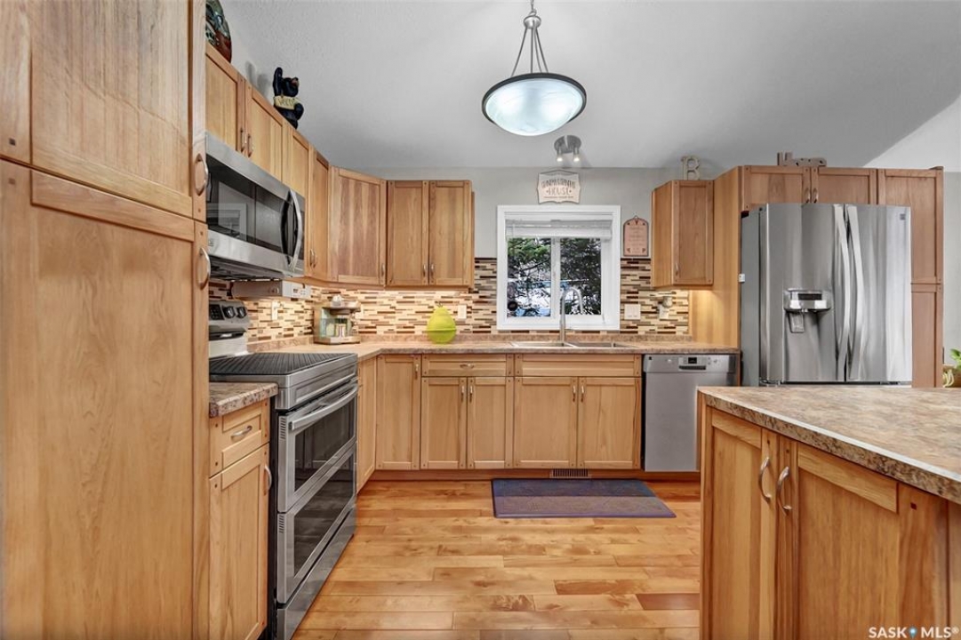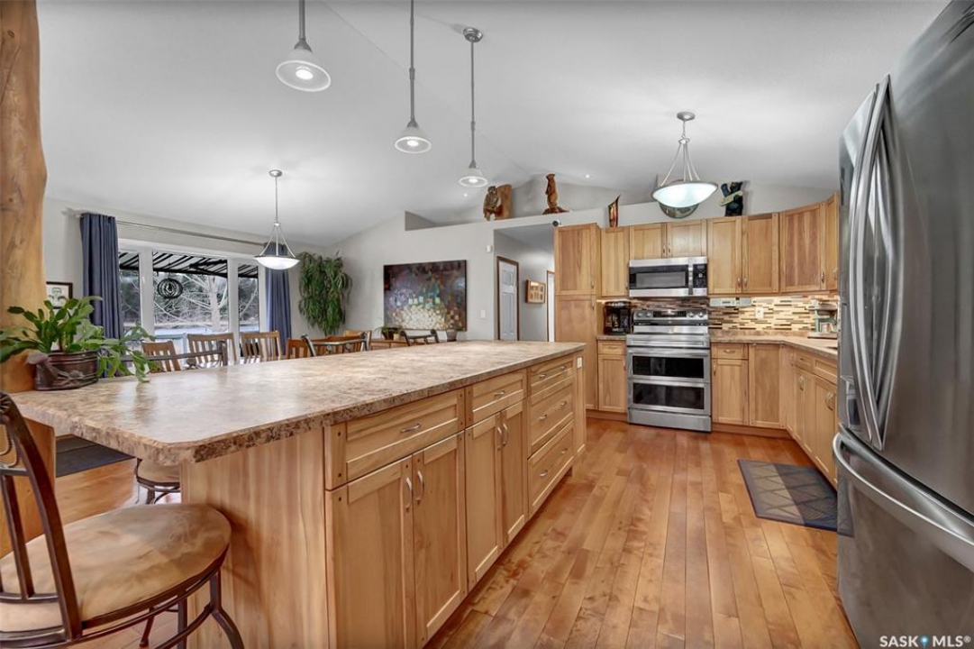 Experience year-round lakefront living at its finest with this beautiful waterfront retreat near Emma Lake. Tucked away on an exceptionally private lot, this property offers all-day sunshine and a peaceful escape just moments from the Emma Lake Golf Course. Meticulously maintained and in impeccable condition, the home welcomes you with an open-concept main floor designed for both comfort and style. Soaring vaulted ceilings elevate the living room, while the spacious kitchen—complete with an oversized island—flows seamlessly into a wall of floor-to-ceiling windows that bathe the space in natural light and showcase breathtaking views. The generous primary suite is a true sanctuary, featuring a beautifully appointed three-piece ensuite and a large walk-in closet. Two additional bedrooms provide plenty of space for family and guests. Step outside to an expansive deck highlighted by striking post-and-beam accents—perfect for entertaining or simply relaxing in the serene surroundings. The property also boasts a heated 24x24 detached garage, additional storage sheds, and ample parking, including space for an RV. The thoughtfully landscaped yard offers a cozy fire pit area, garden space, and direct access to Beaver Lodge Lake via your private dock—ideal for kayaking, canoeing, and enjoying pristine, fresh-water living. For added peace of mind, the home is equipped with an automatic Generac backup system, ensuring uninterrupted comfort year-round. This exceptional property truly must be seen to be fully appreciated.